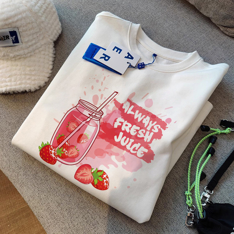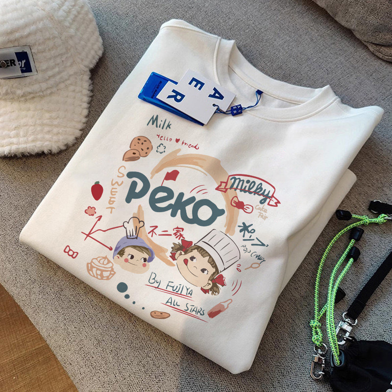 【超值69.9任选2件】2024夏季潮流 圆领宽松 纯棉短袖t恤女 ins女装休闲 宽松百搭上衣-QQ