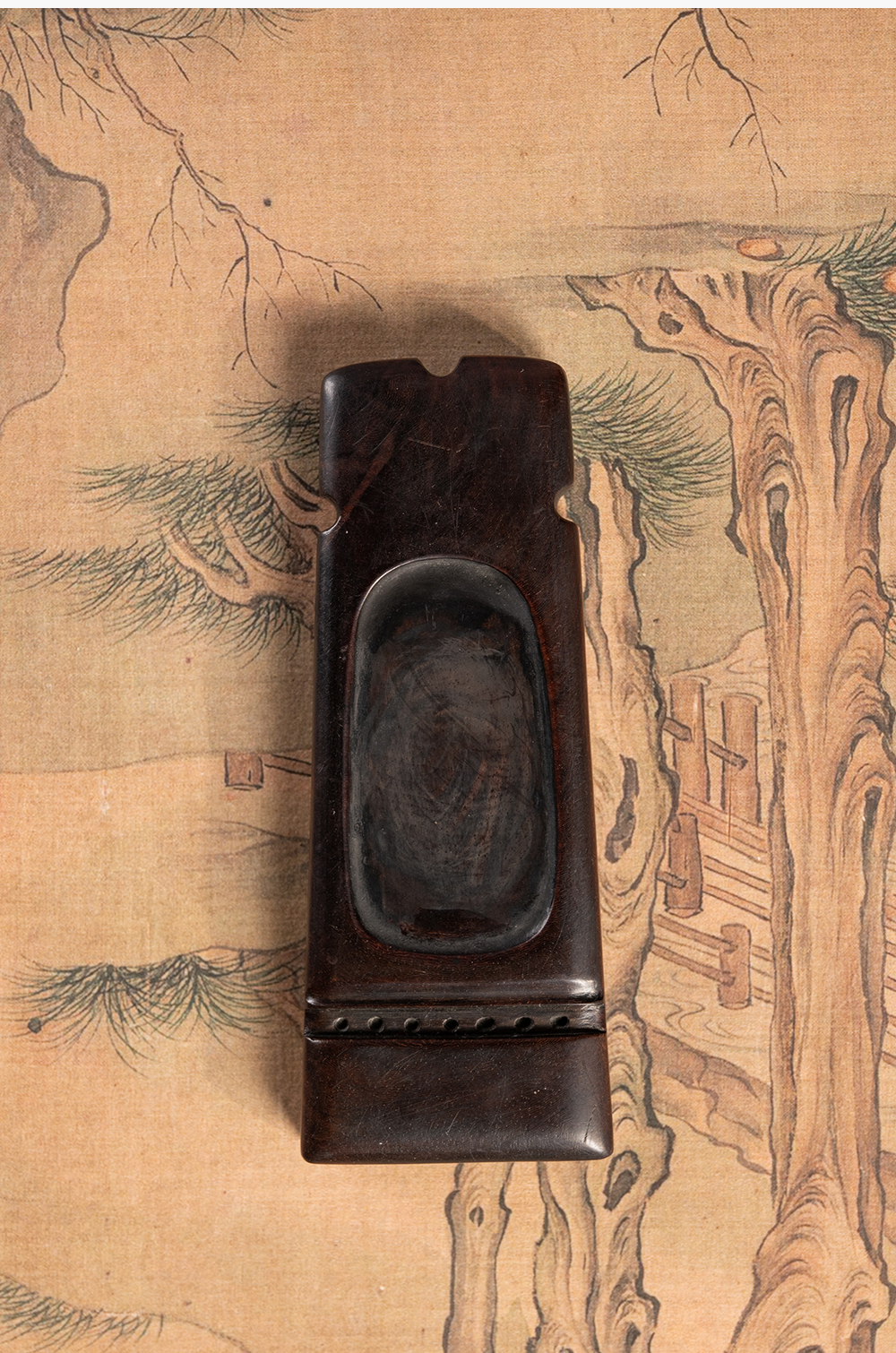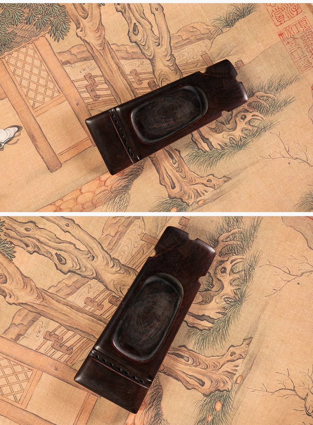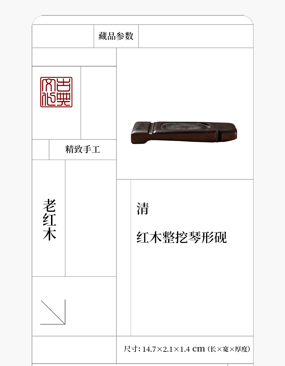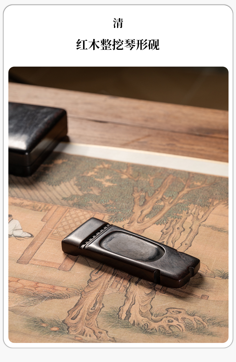 清 红木整挖琴形砚