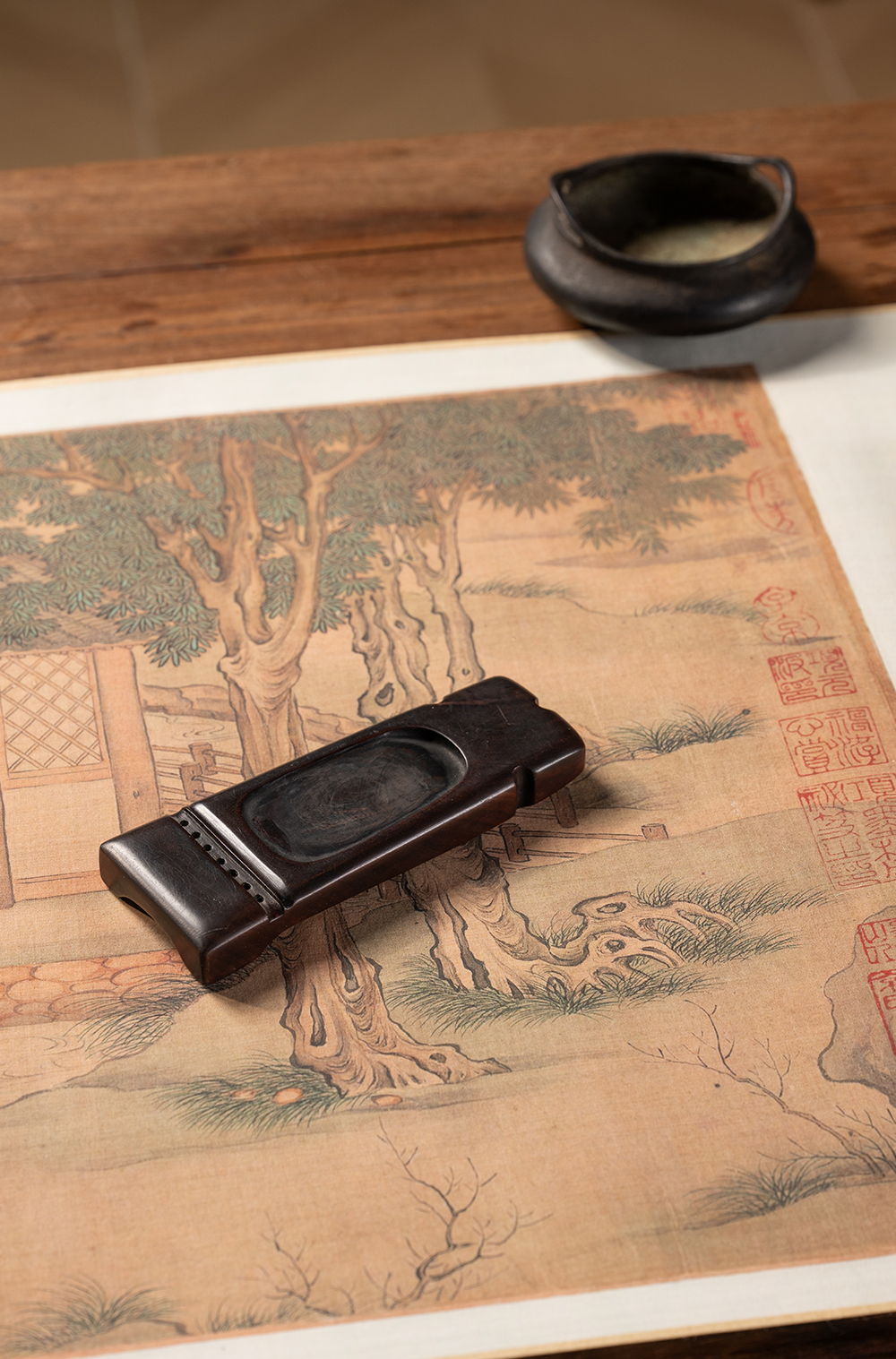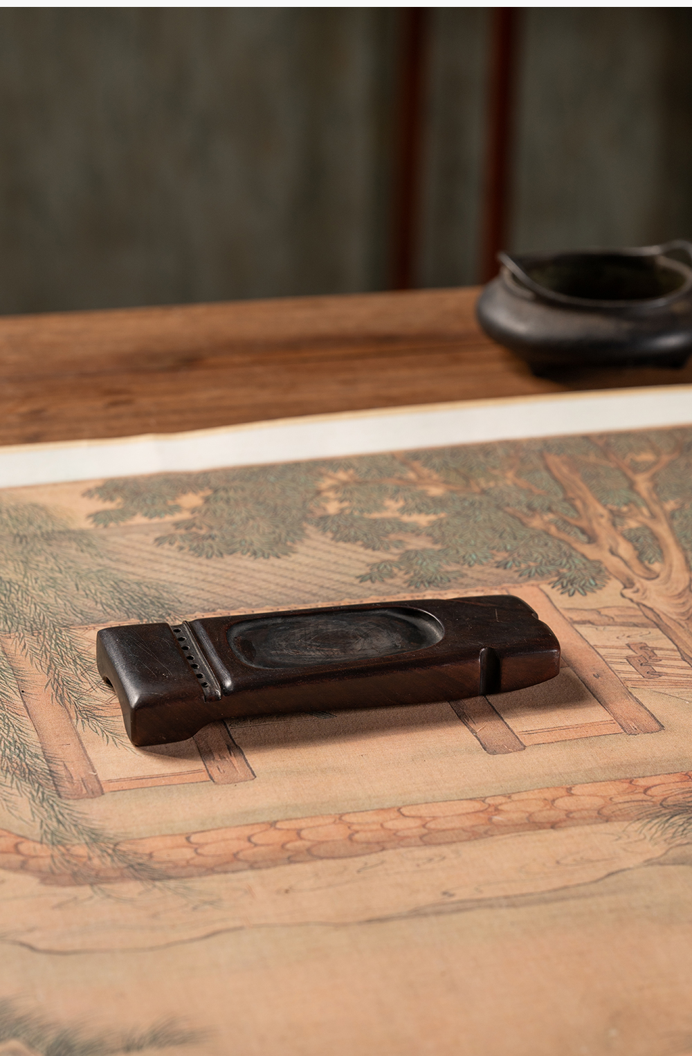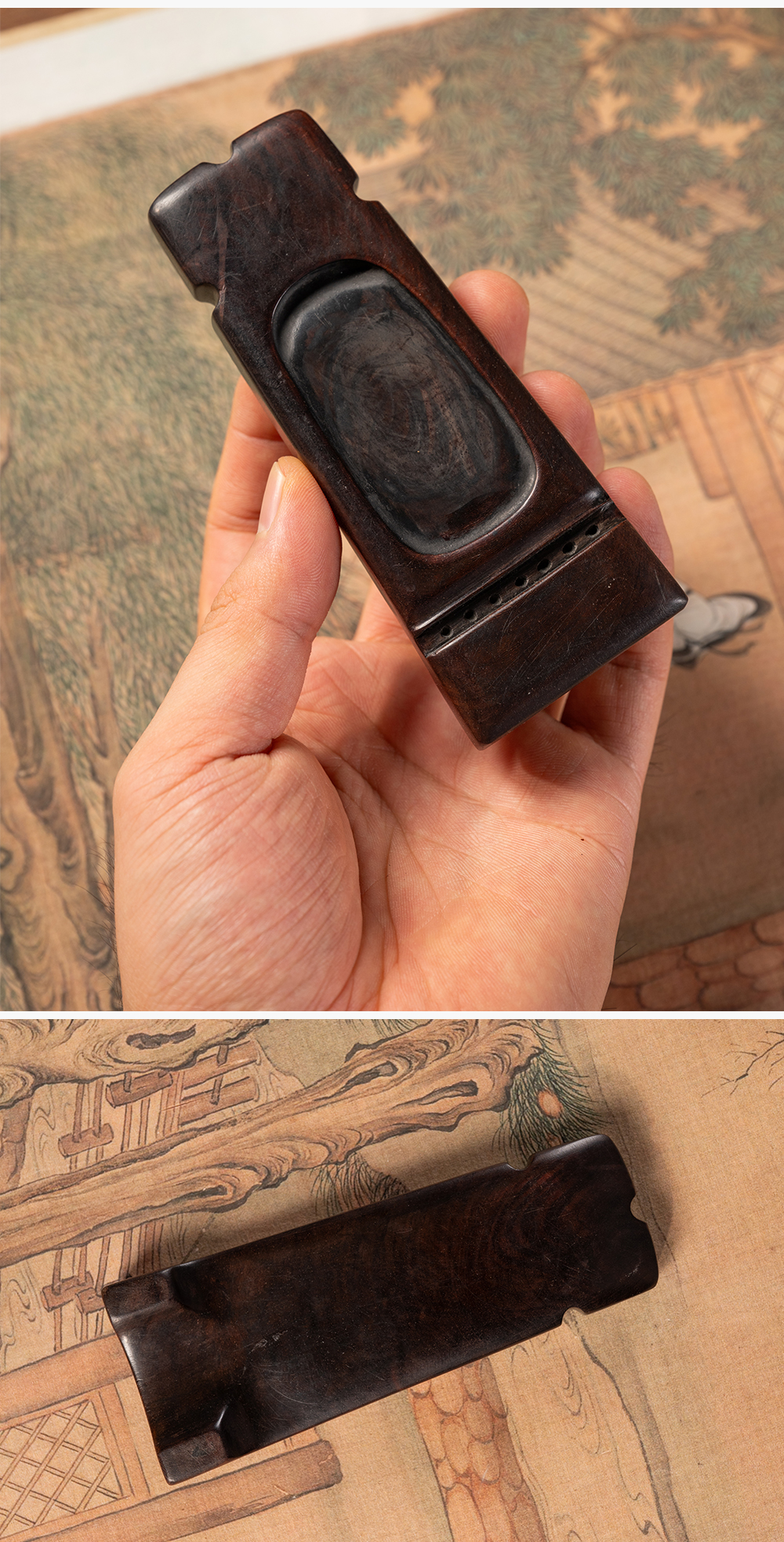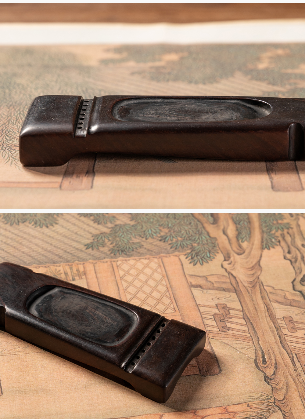 清 红木整挖琴形砚