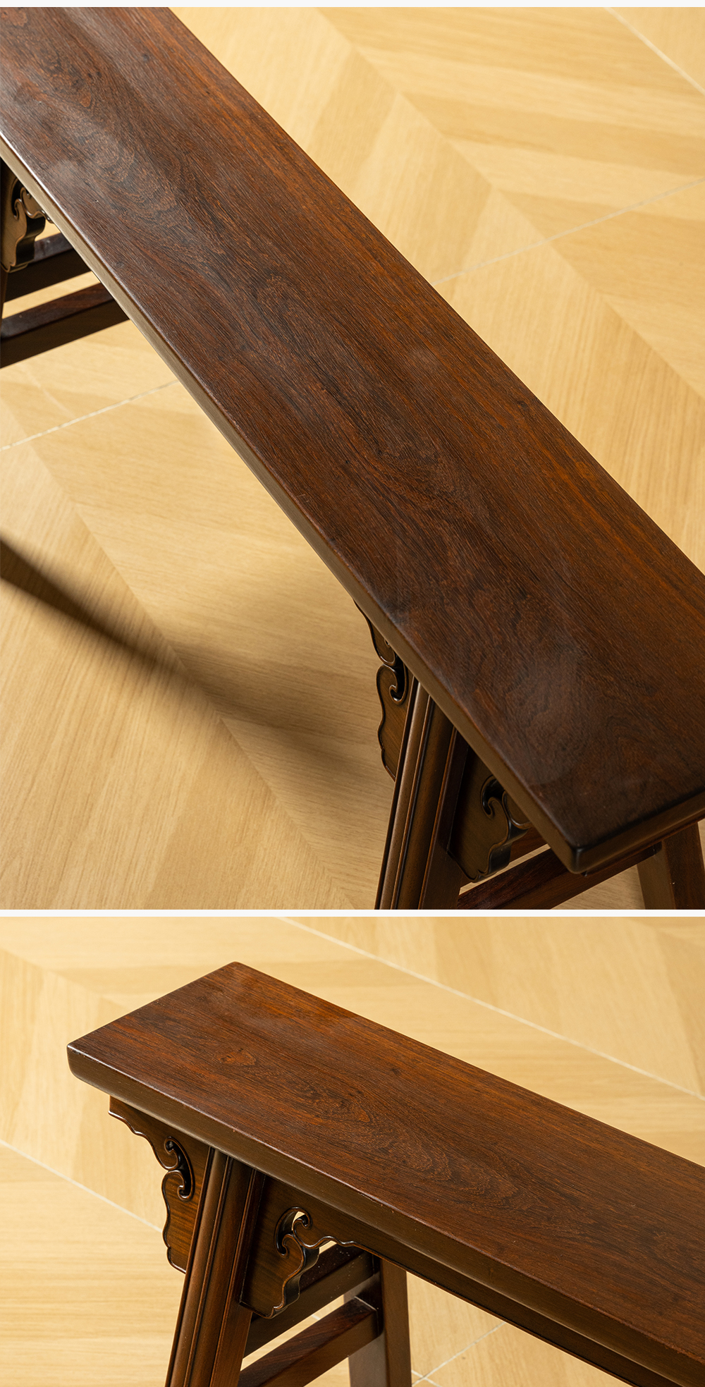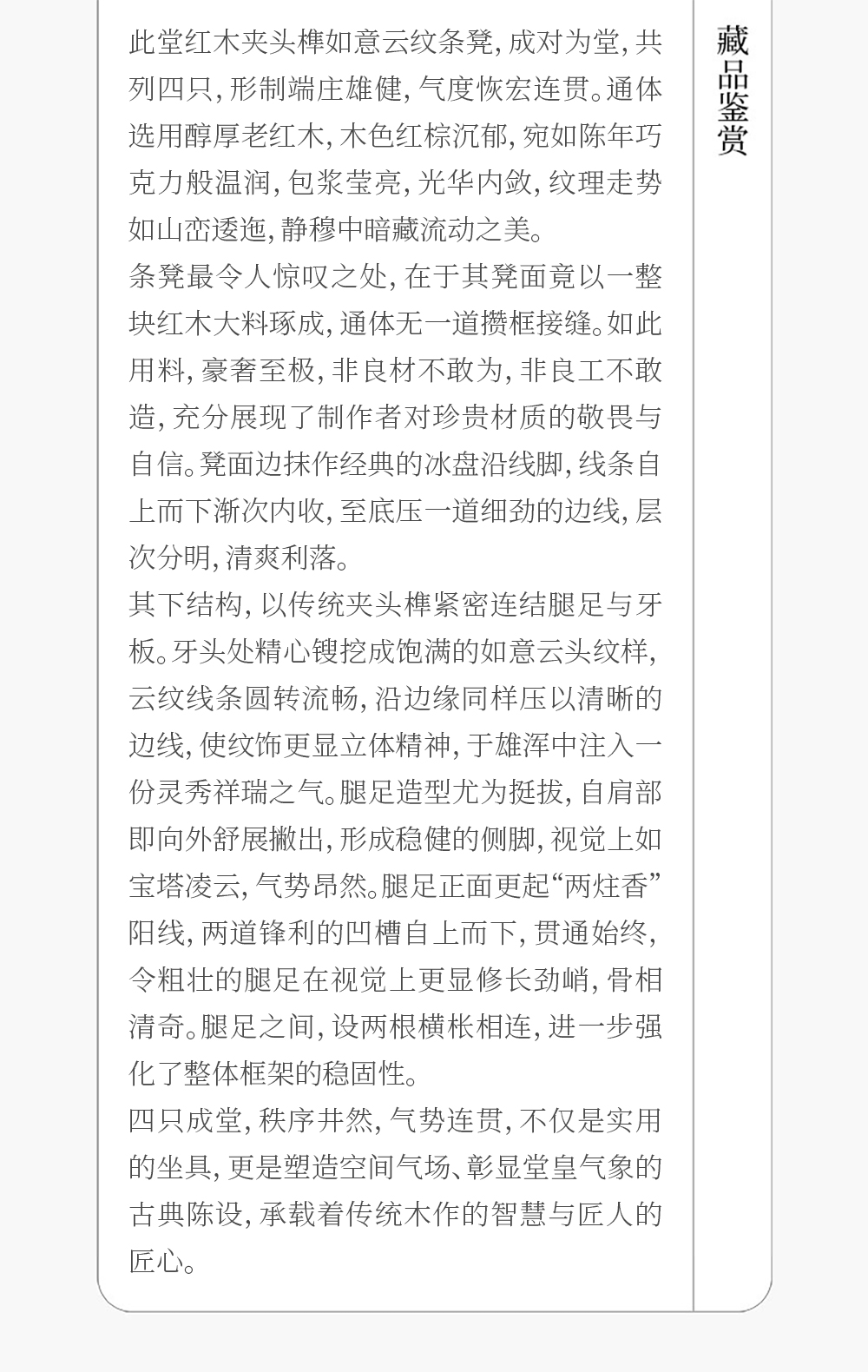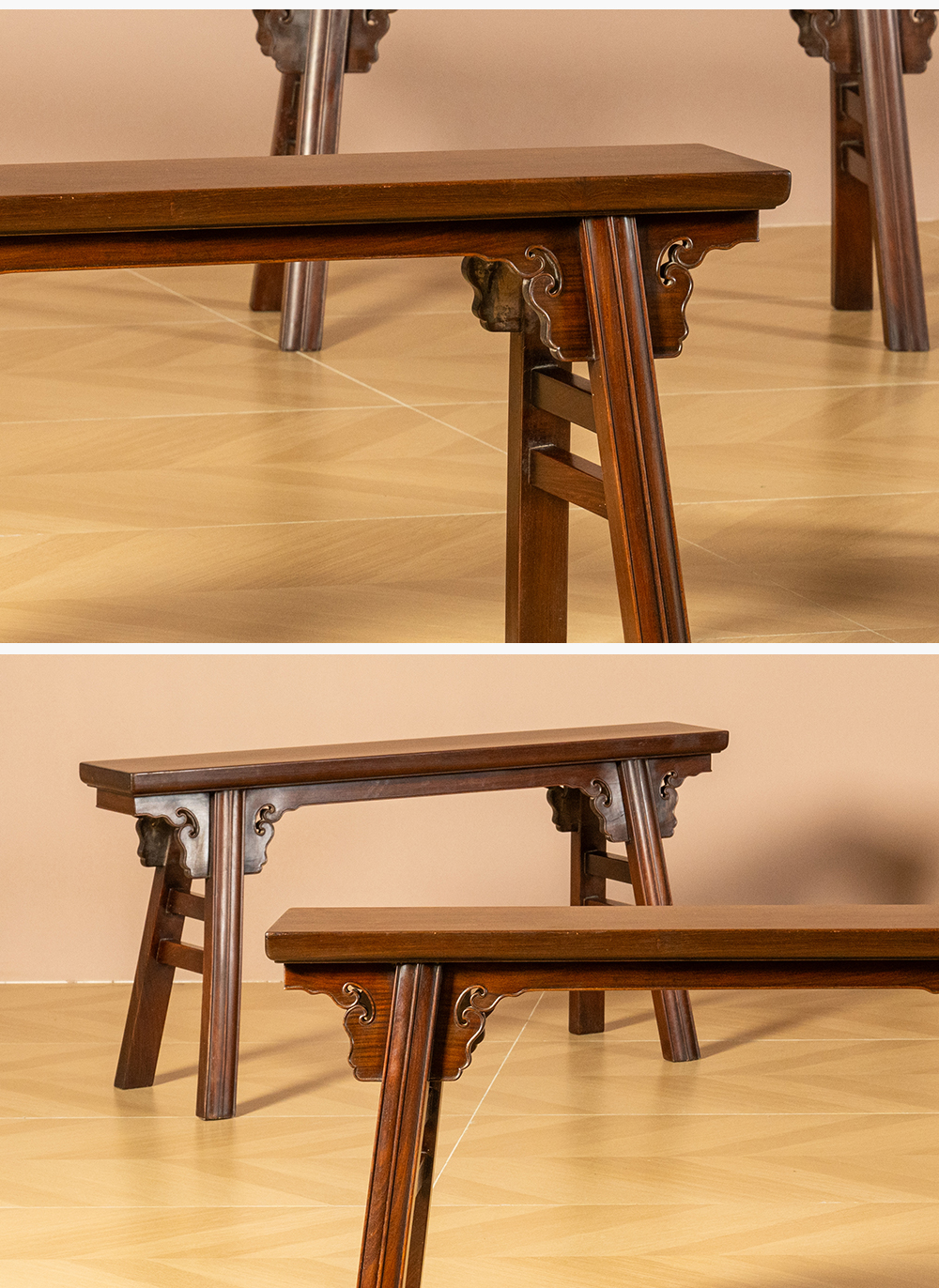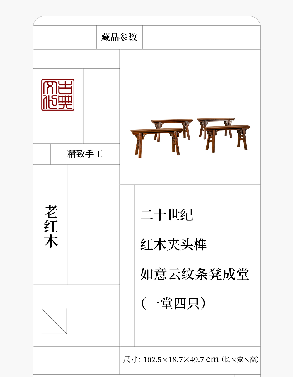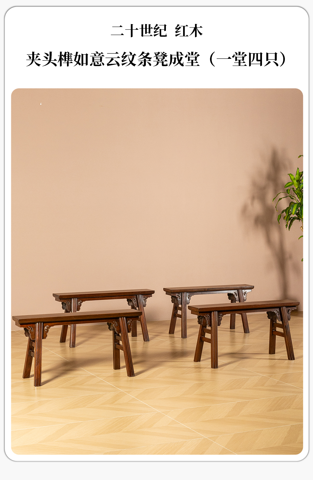 二十世纪 红木夹头榫如意云纹条凳成堂(一堂四只)