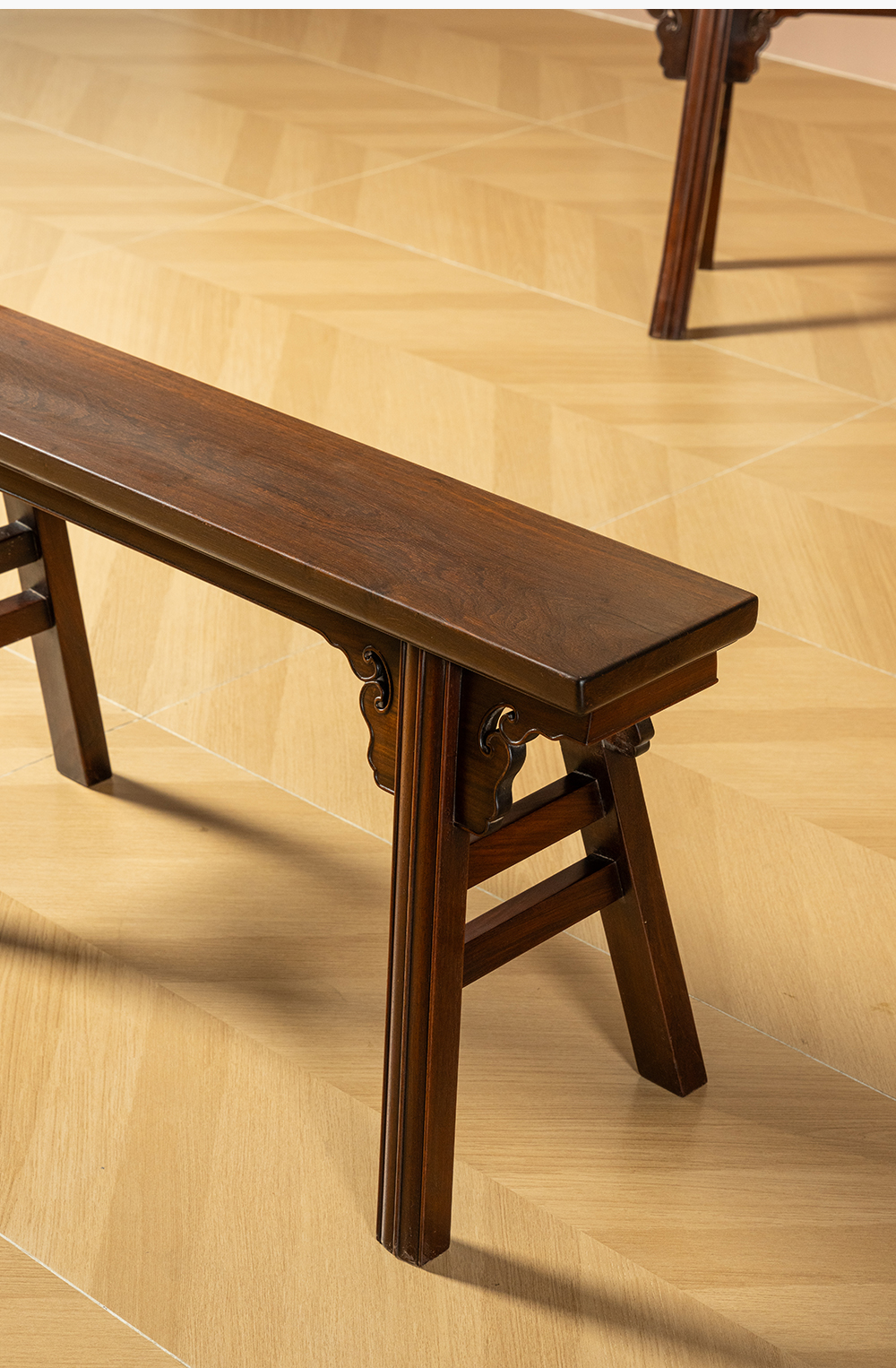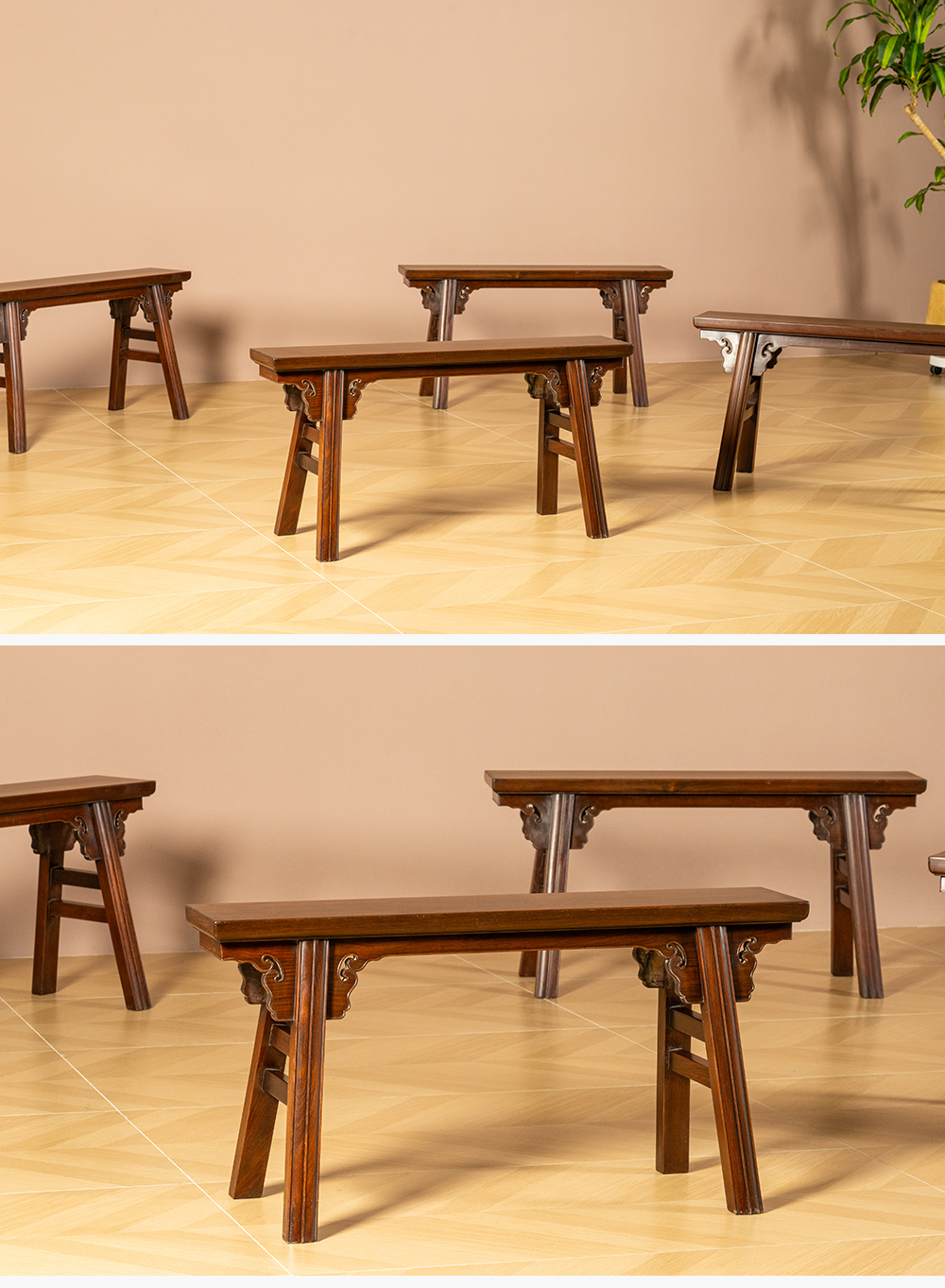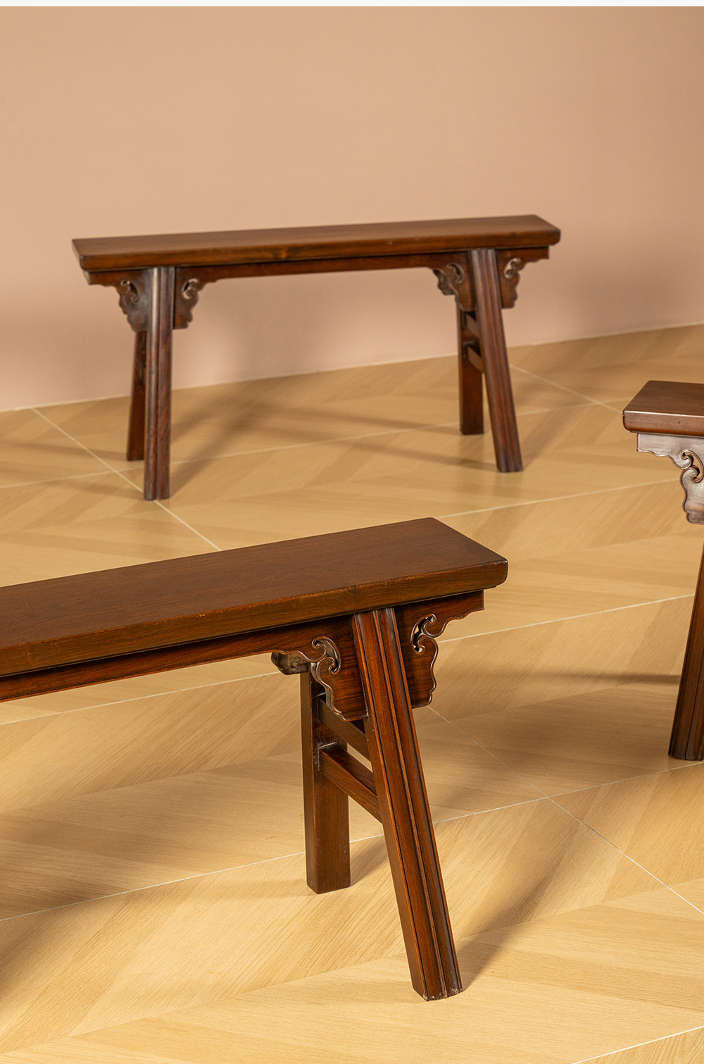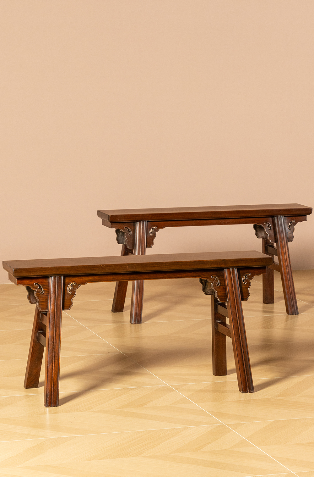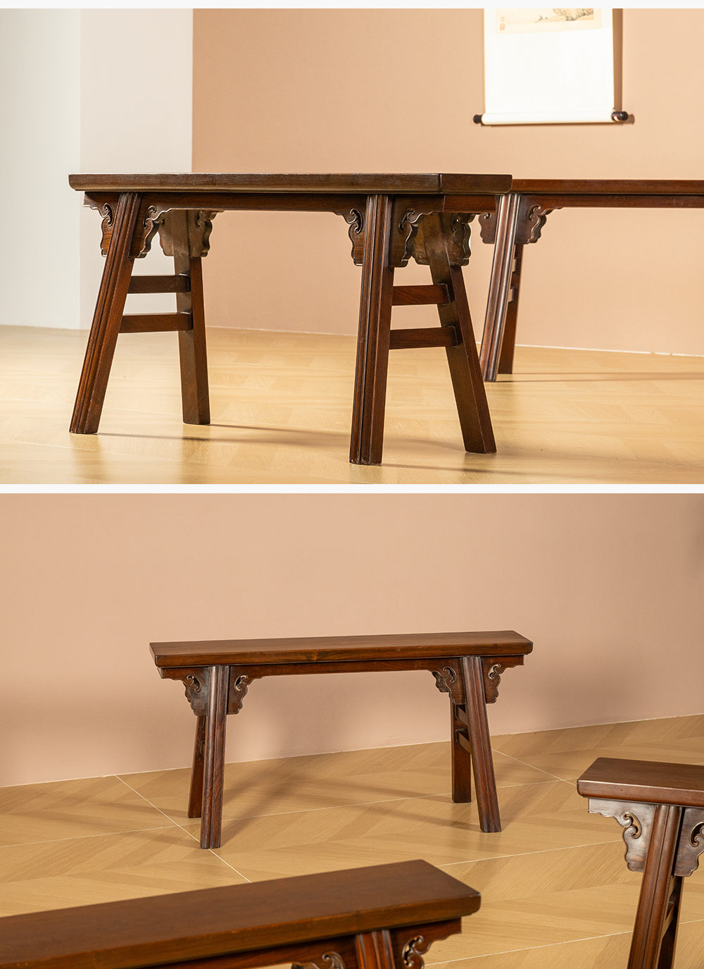 二十世纪 红木夹头榫如意云纹条凳成堂(一堂四只)