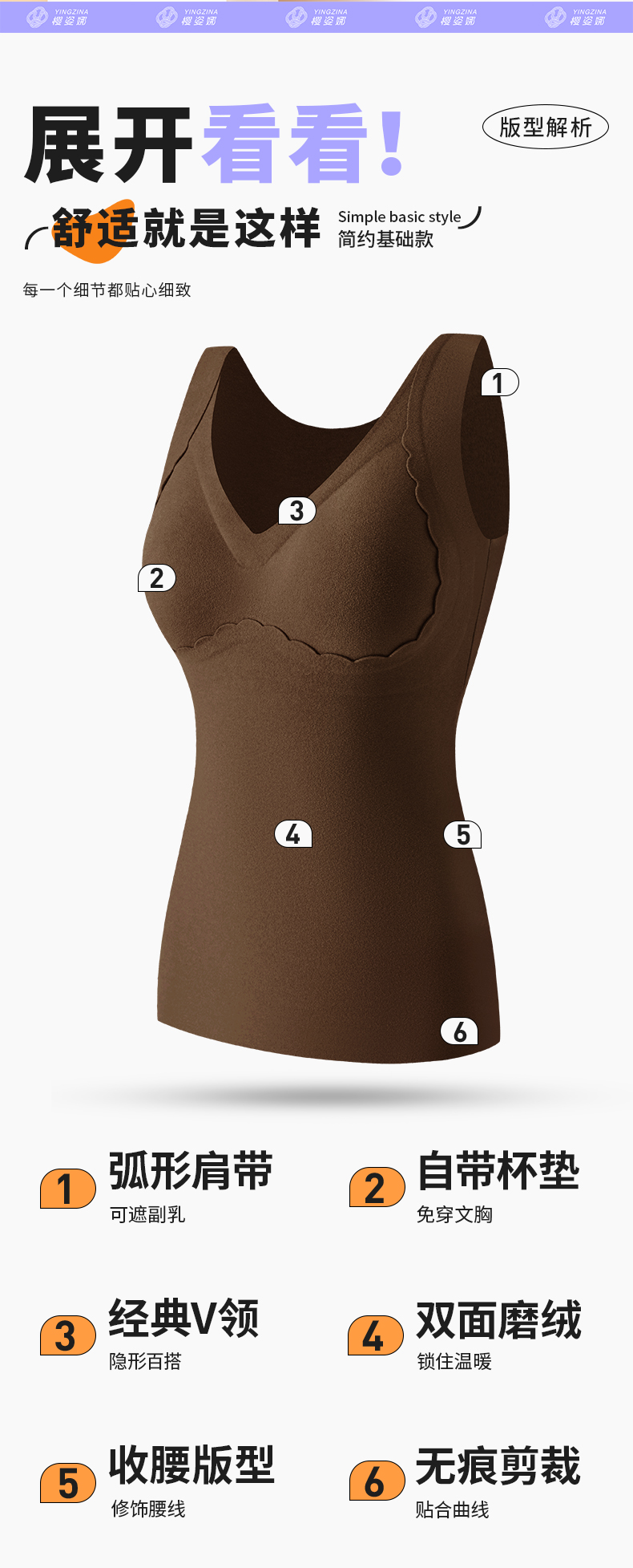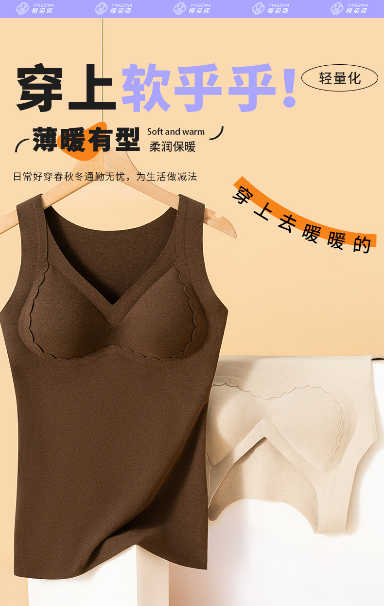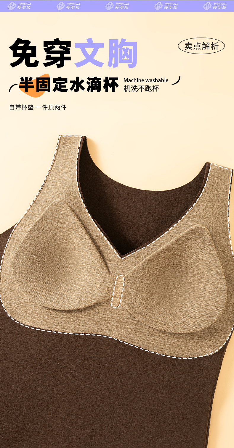 【买一送一】A类标准 轻塑隐形 | 樱姿娜仿狐狸绒含人参皂苷精华背心 带胸垫免穿文胸 2件装