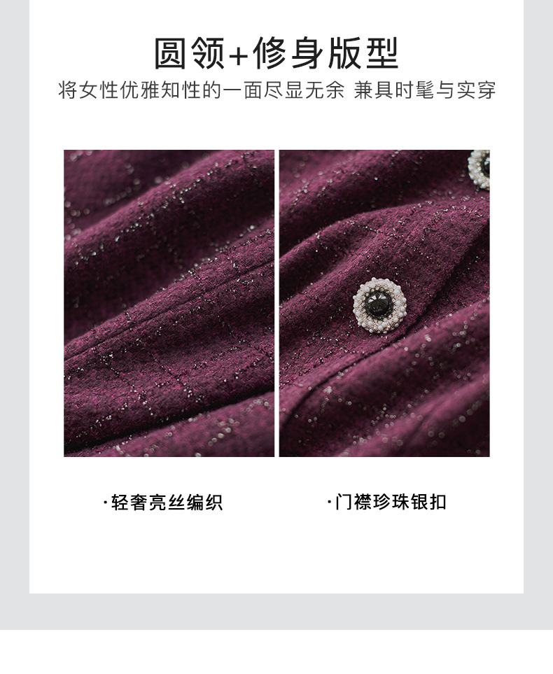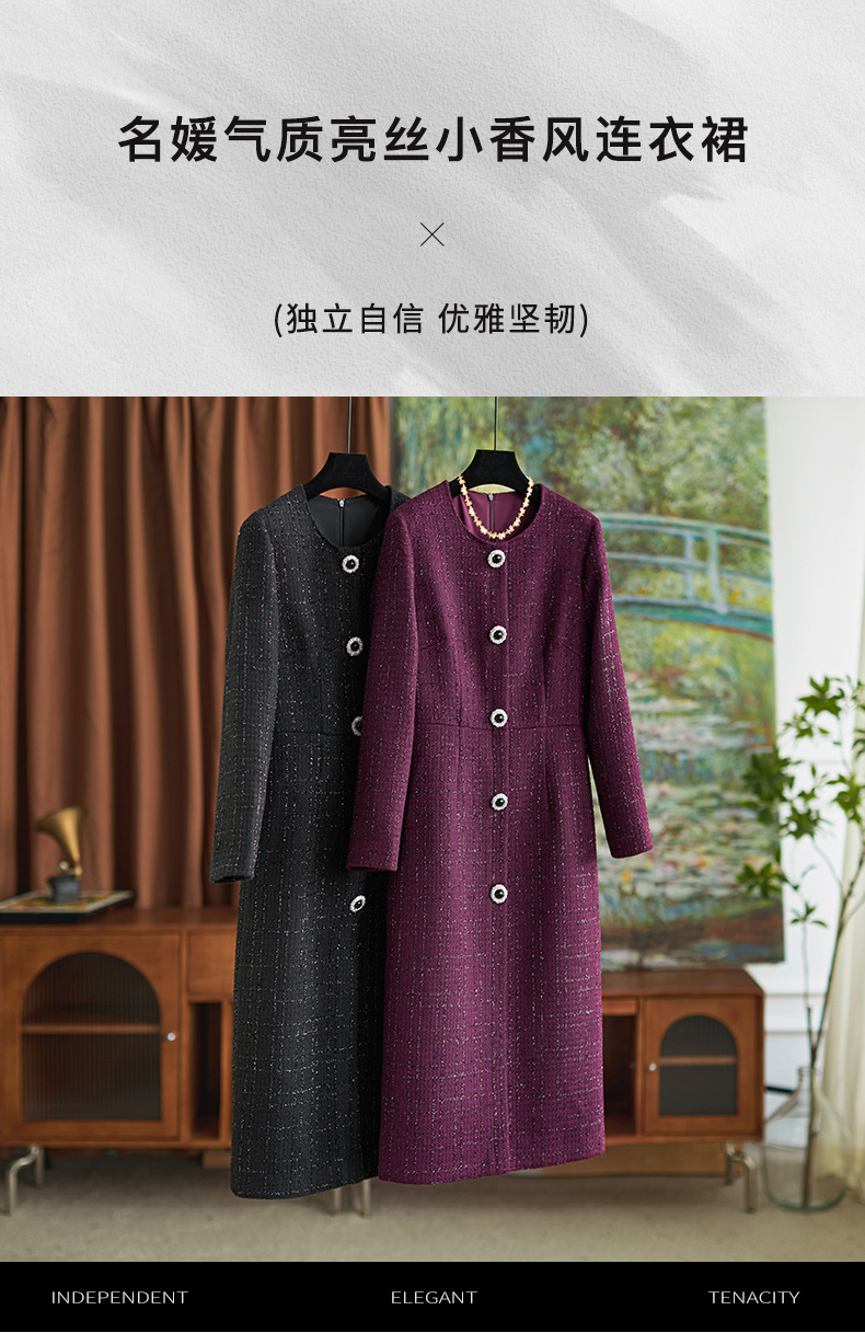 【高货wl】全新升级【铂金会员367/天猫489/差价122】(71528) 洛诗琳秋冬新款轻奢重工亮丝编织气质小香风连衣裙女