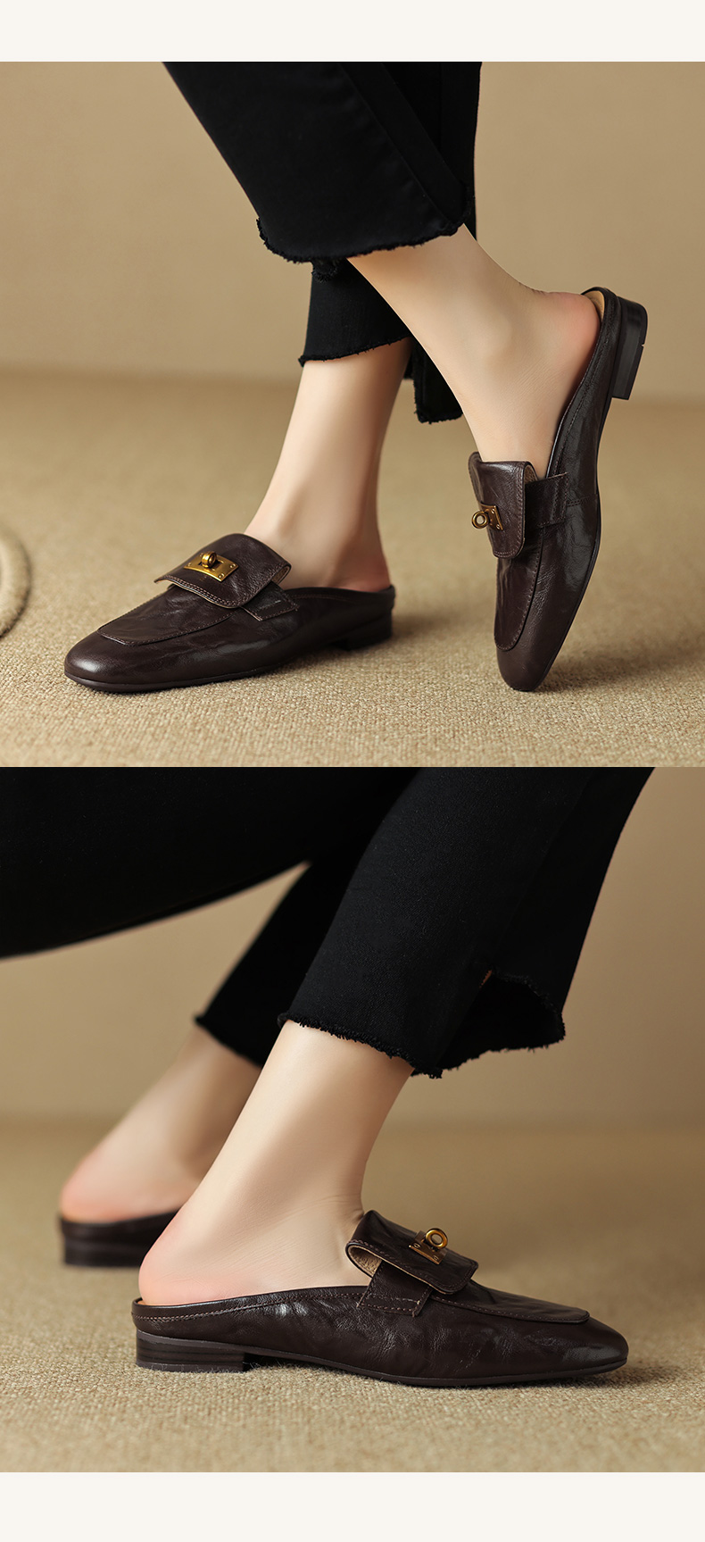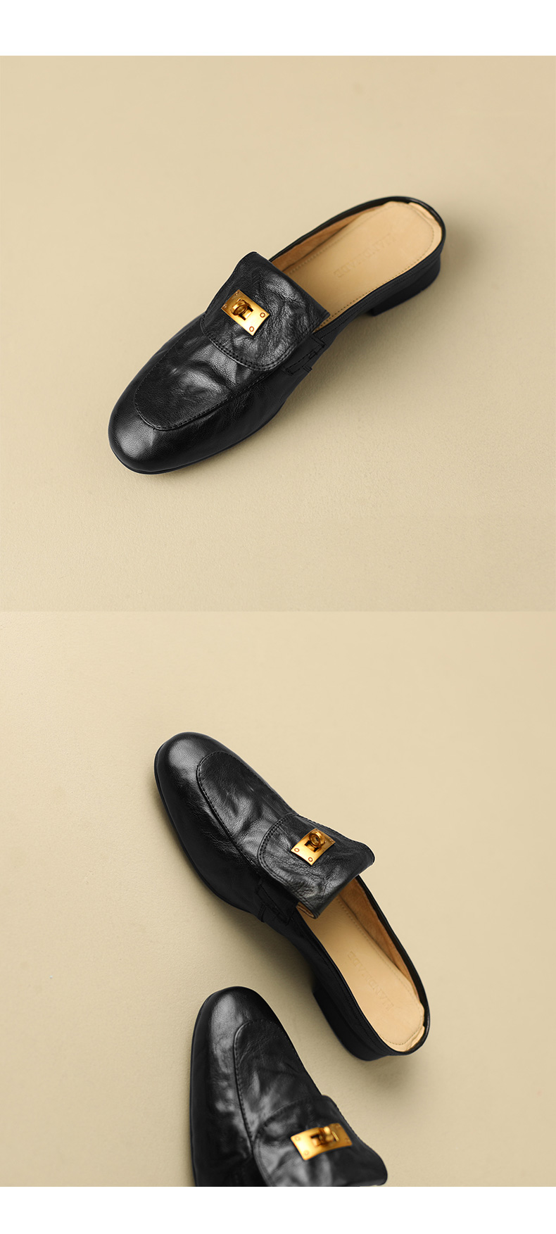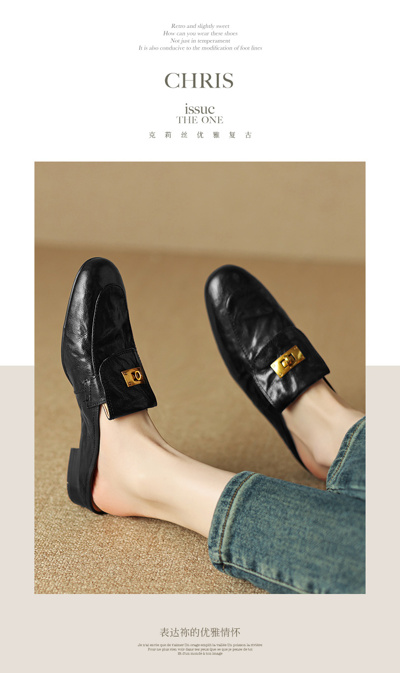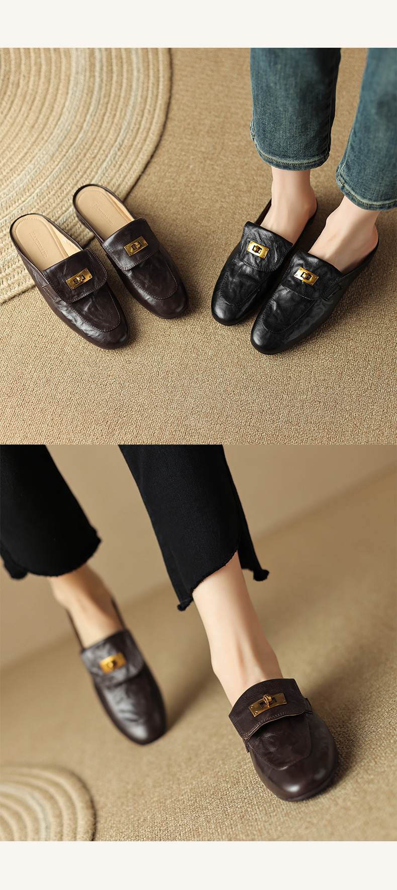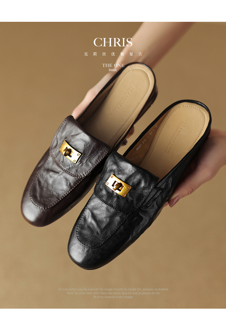 舒适百搭,圆头低跟真皮半拖SSS-S5203