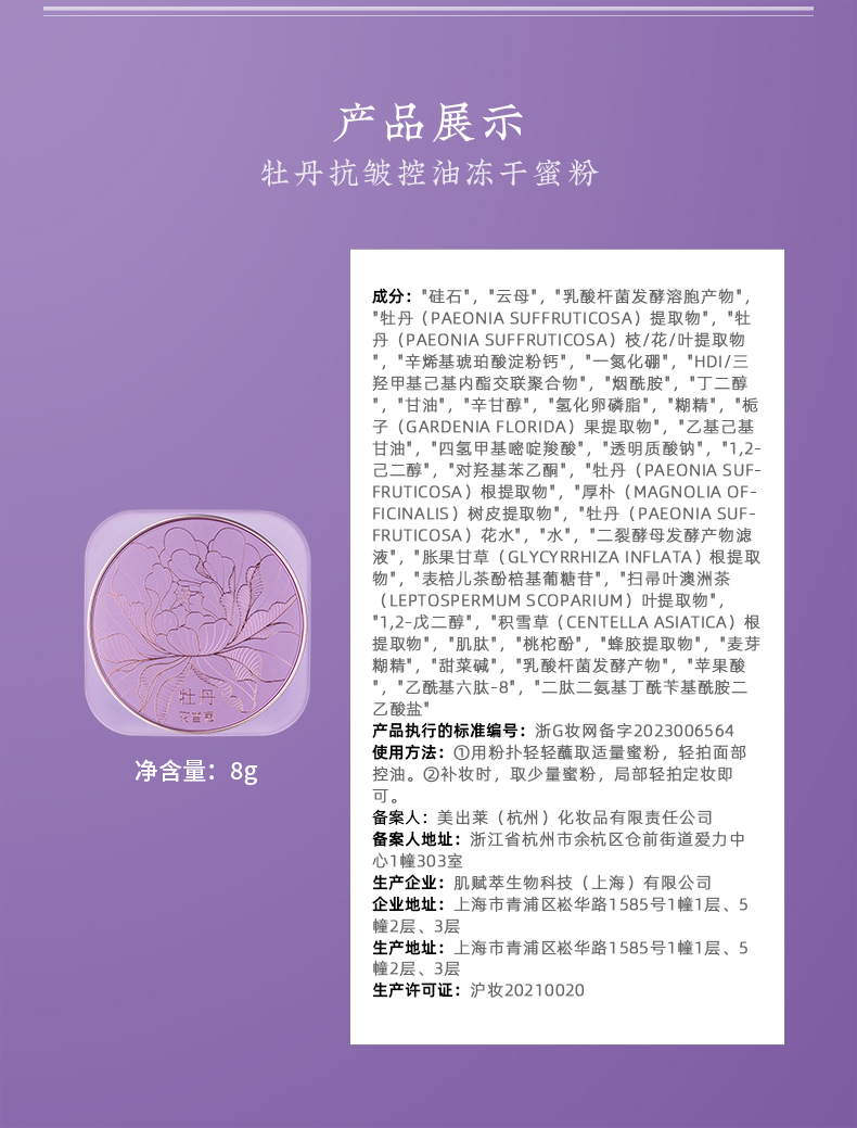 【会员购买送10倍积分】花皙蔻牡丹抗皱控油冻干蜜粉8g