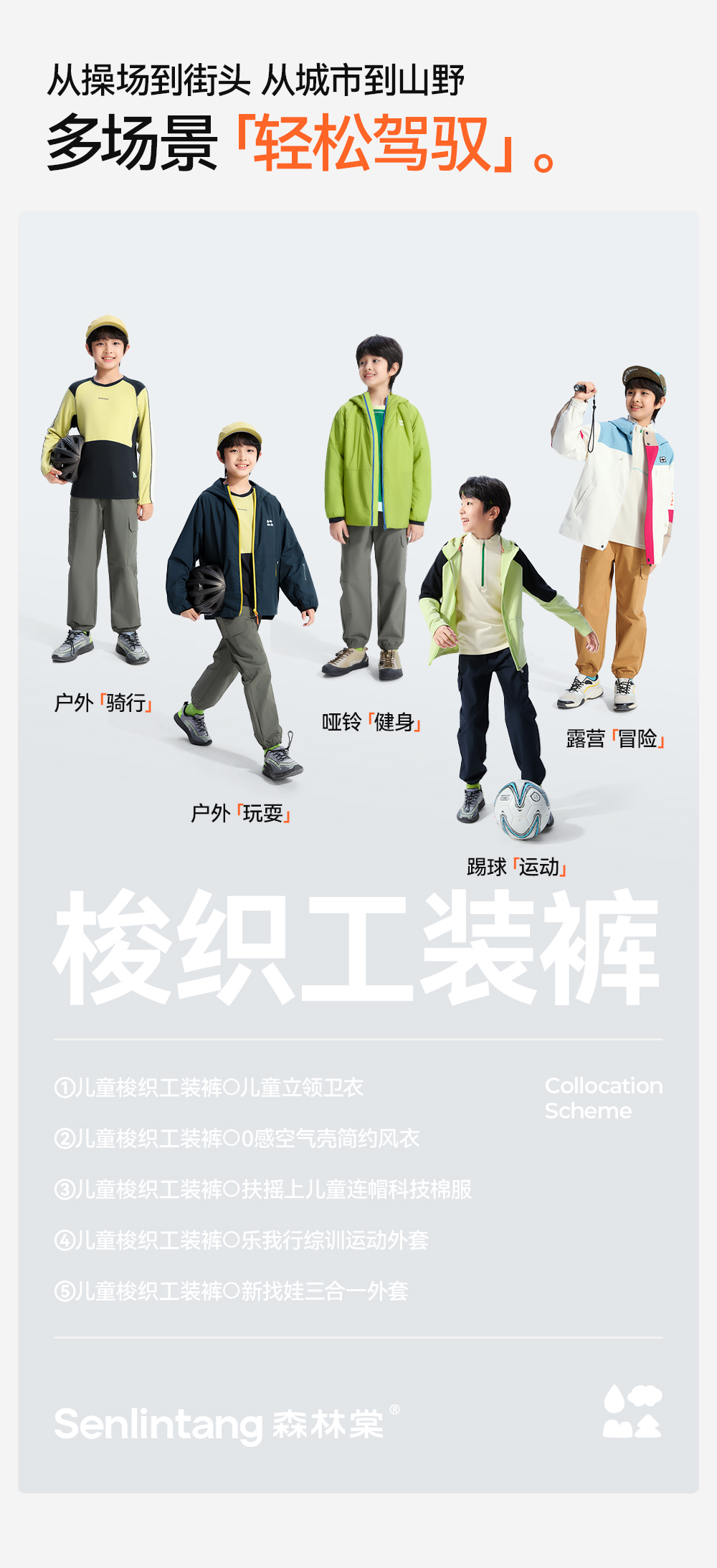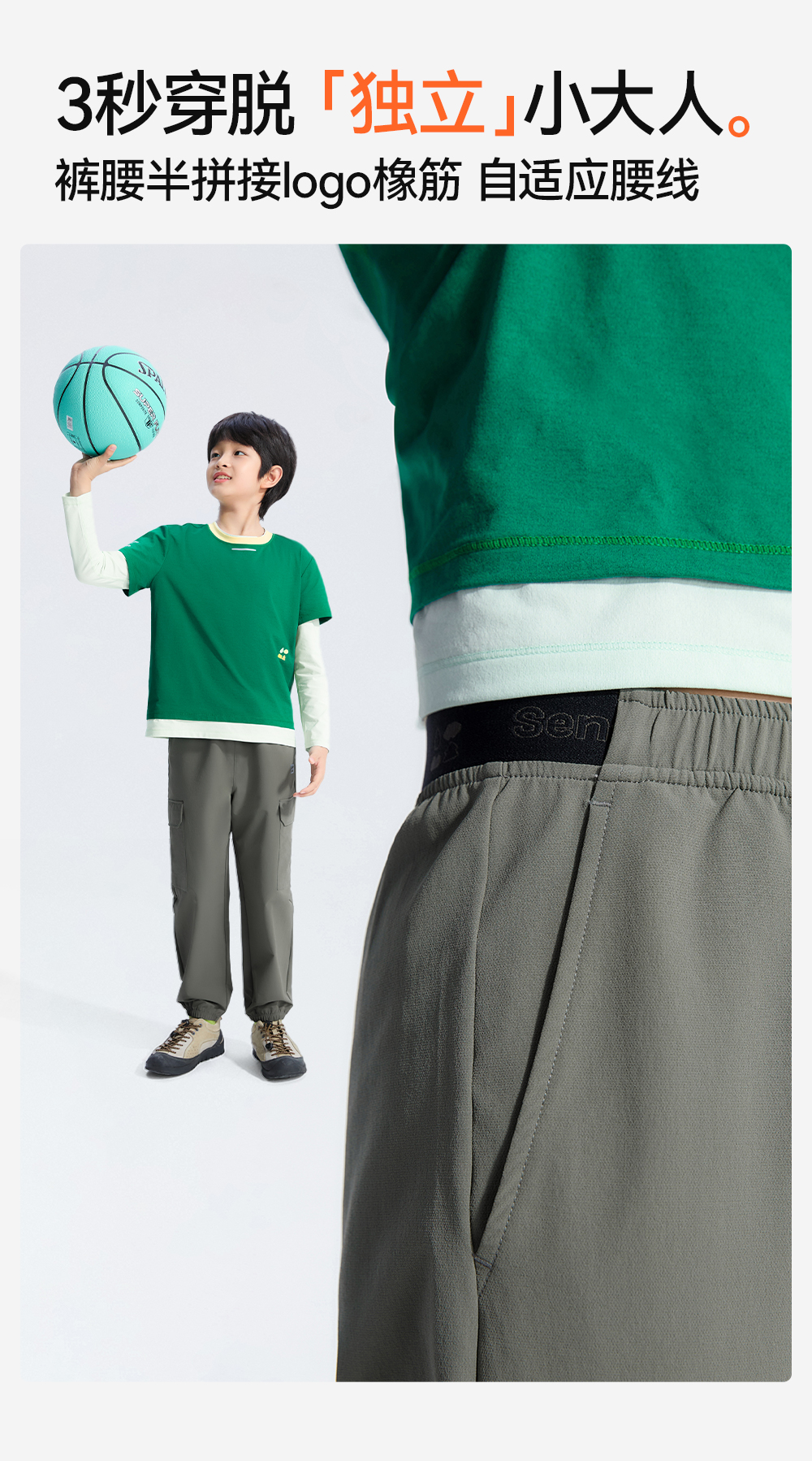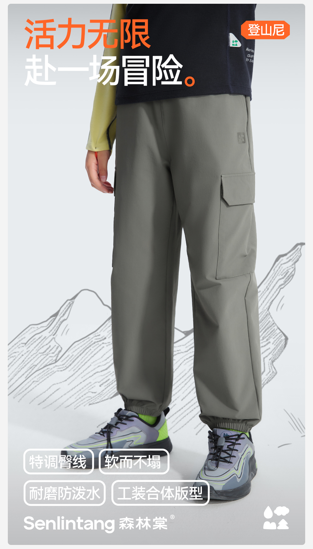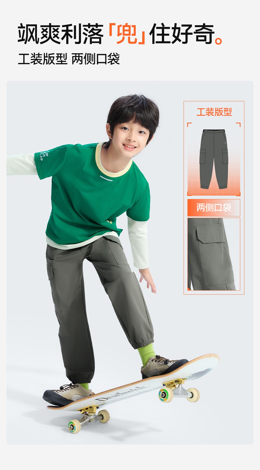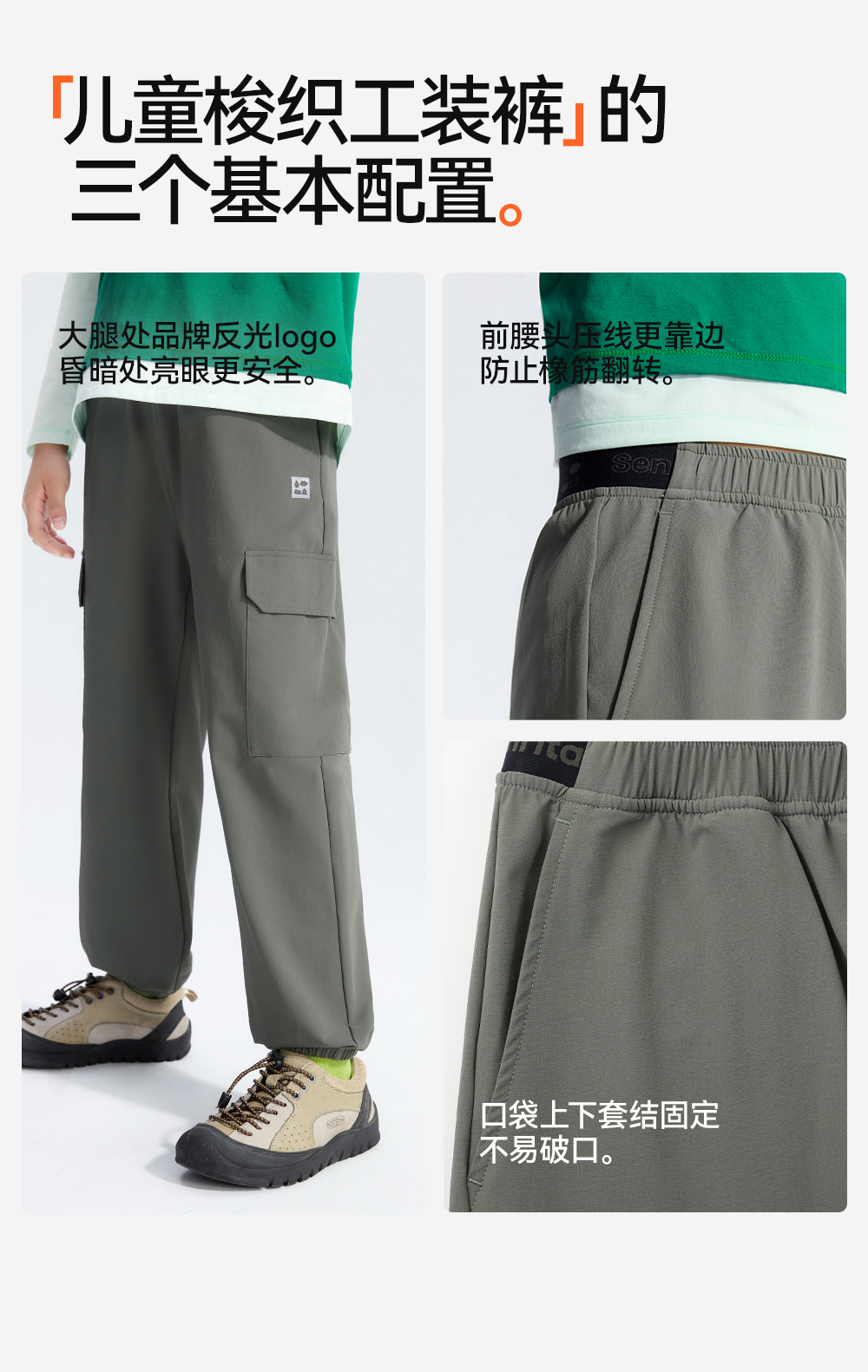 【儿童梭织工装裤游侠裤】森林棠25秋季耐磨防泼水梭织合体版大口袋工装长裤62053175