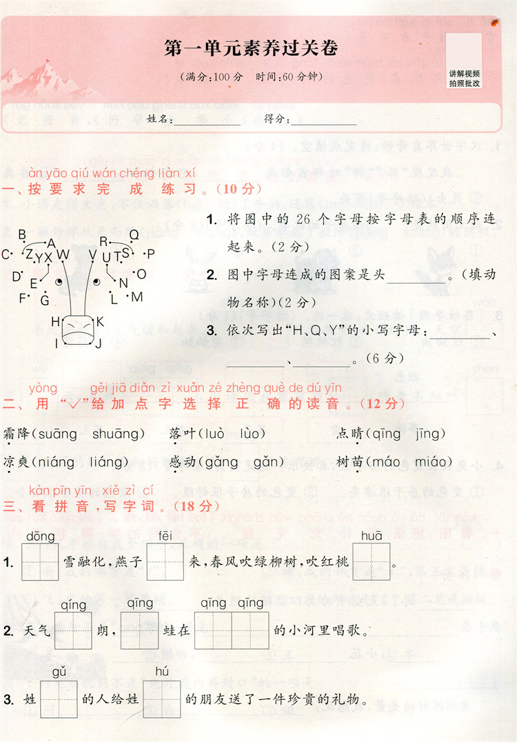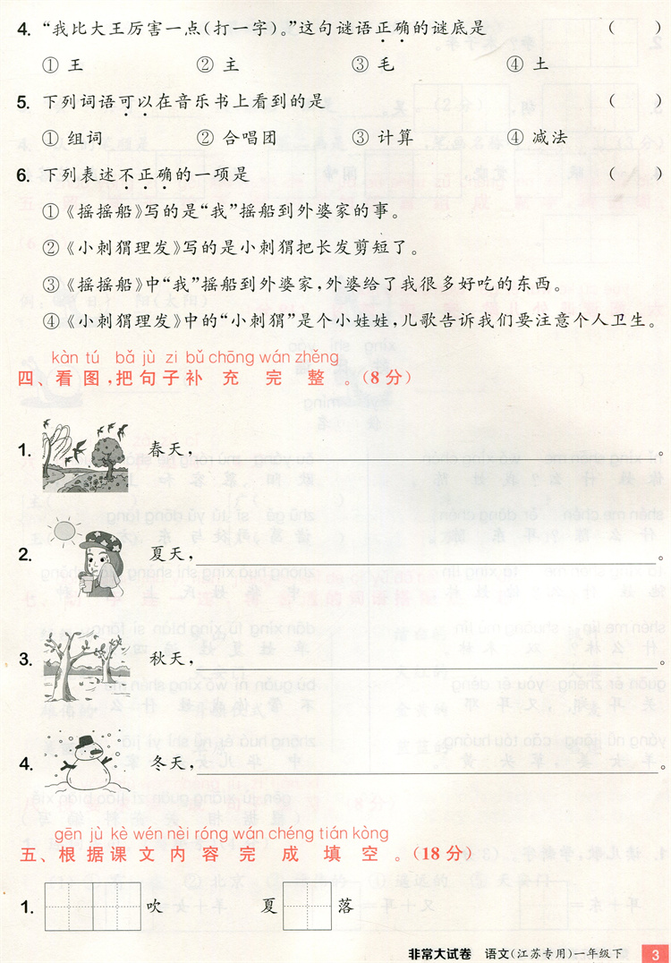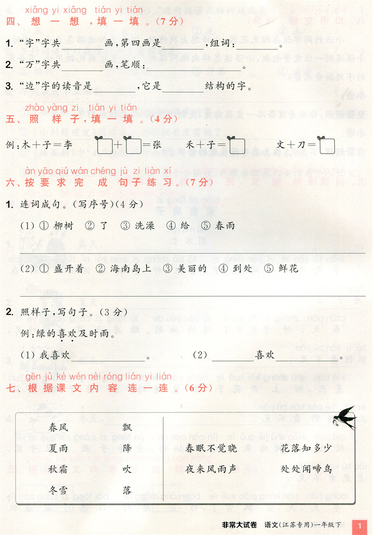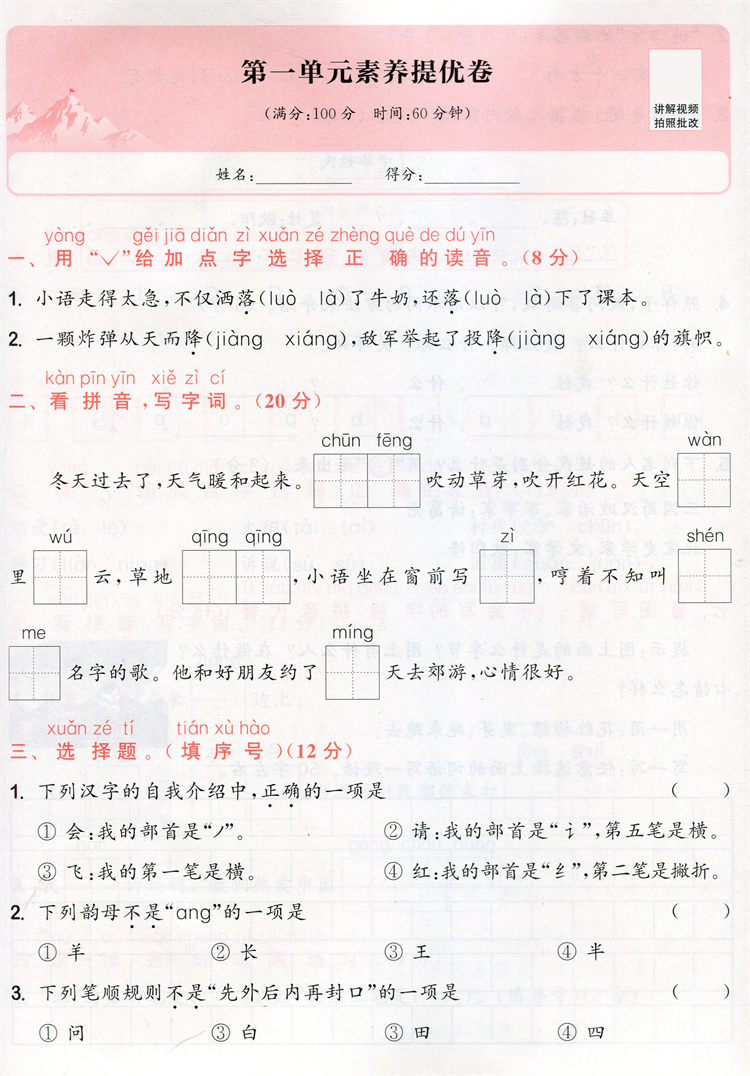 2026春 非常大试卷 语文一年级下册 配人教版 小学教辅 1下小学试卷 答案讲解视频 学生用书江苏