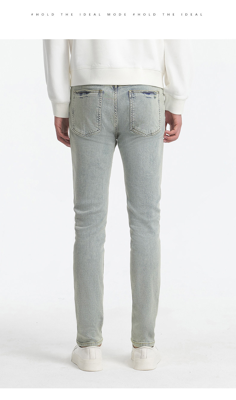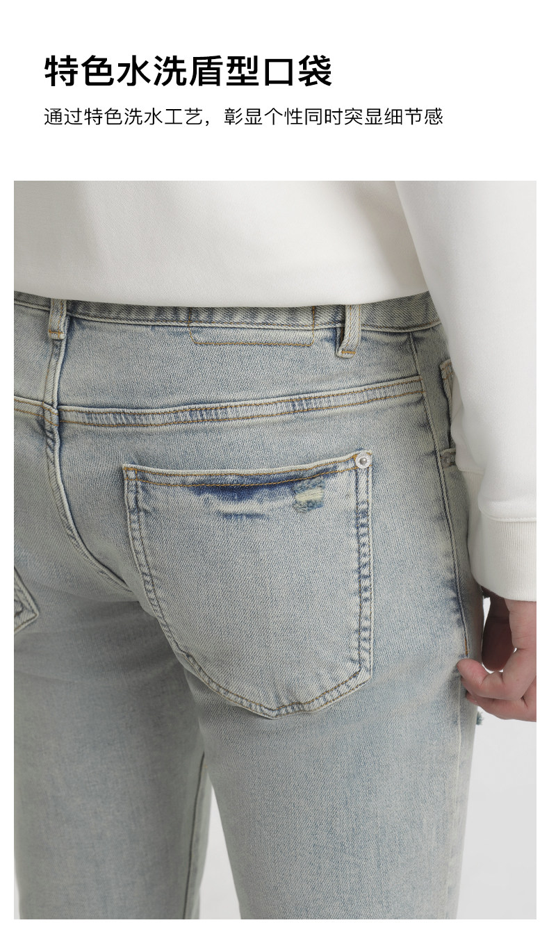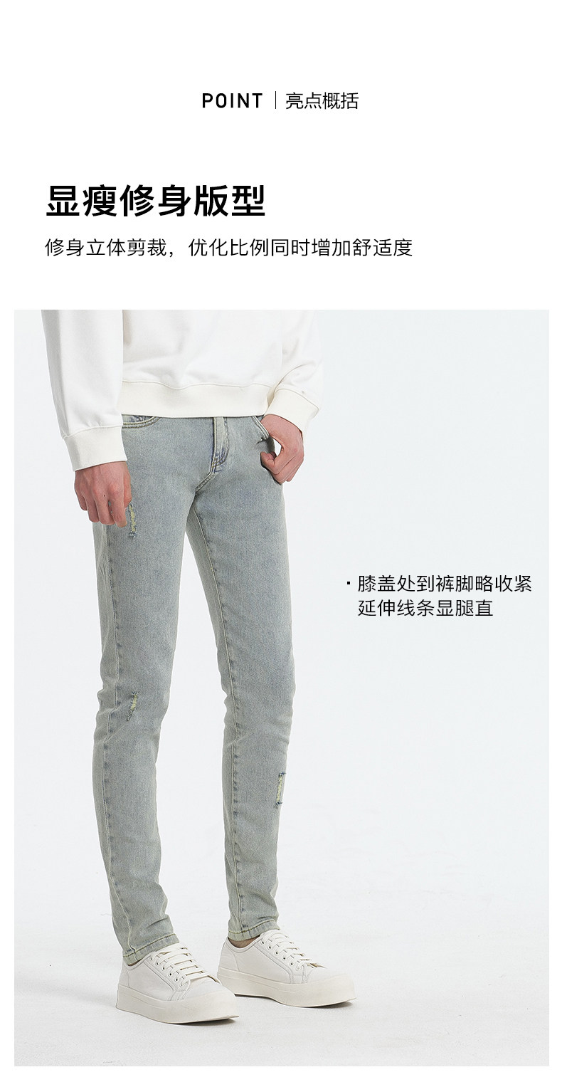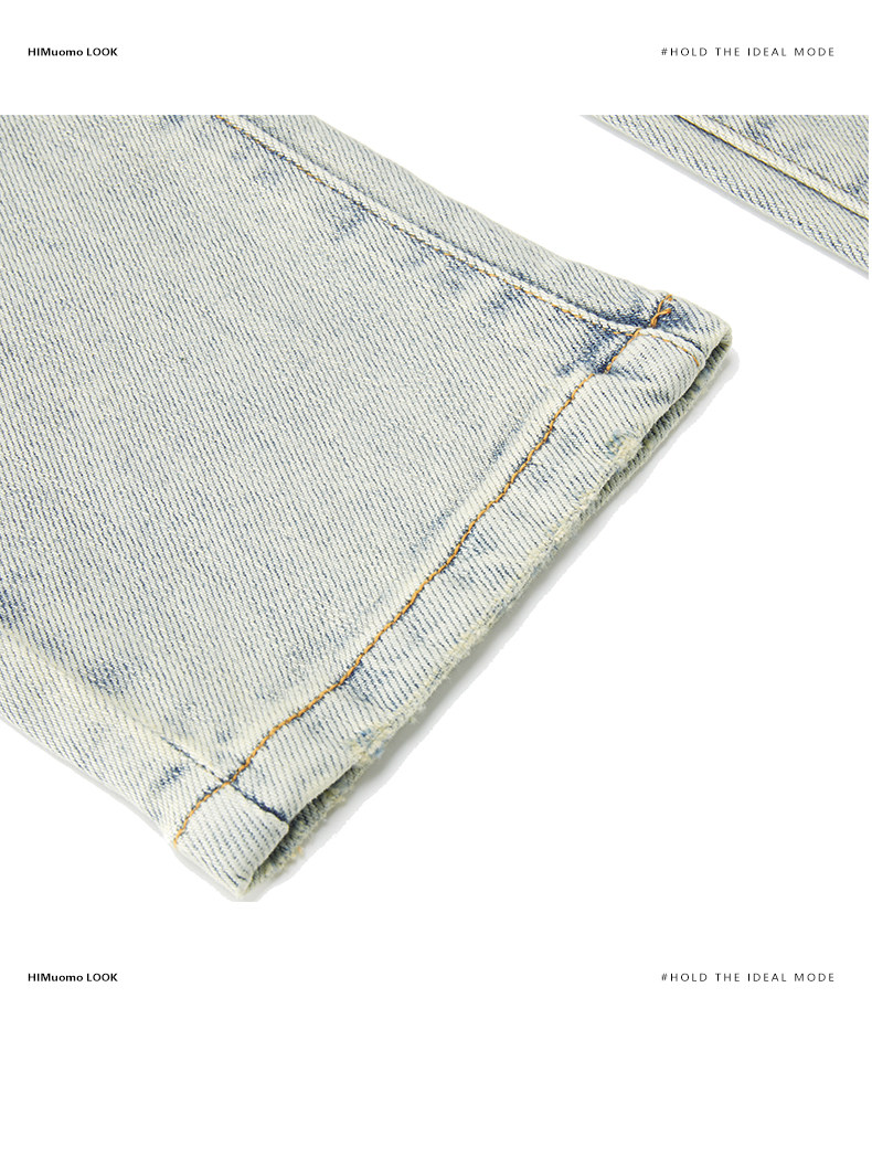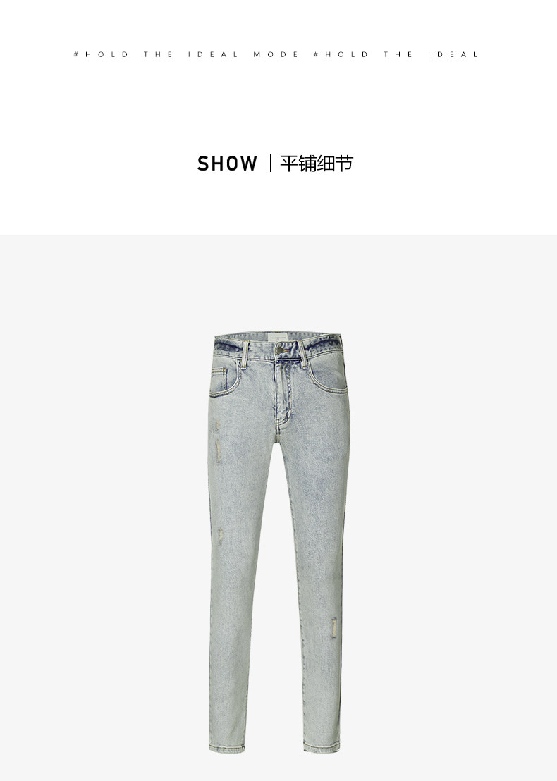 HIM漢崇 修身弹力锥形小脚牛仔裤男 复古淡蓝色破洞做旧 2025秋季