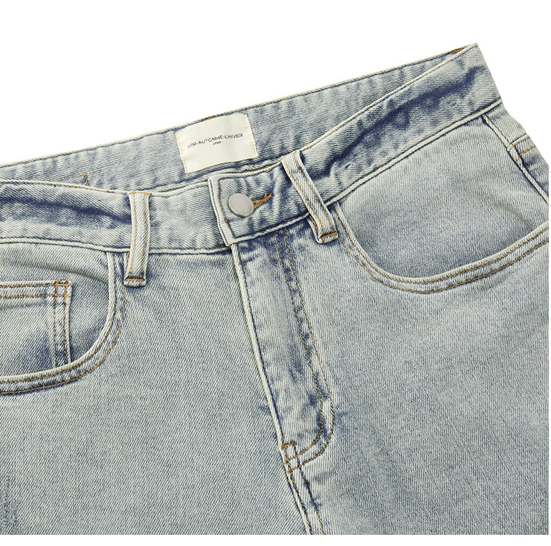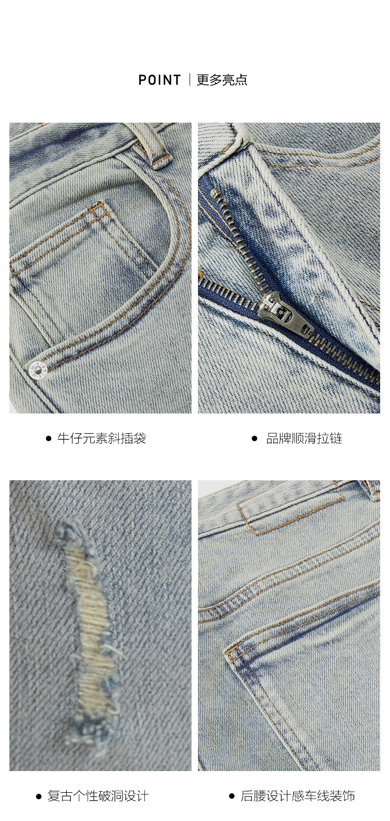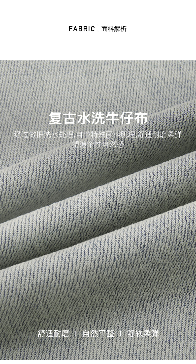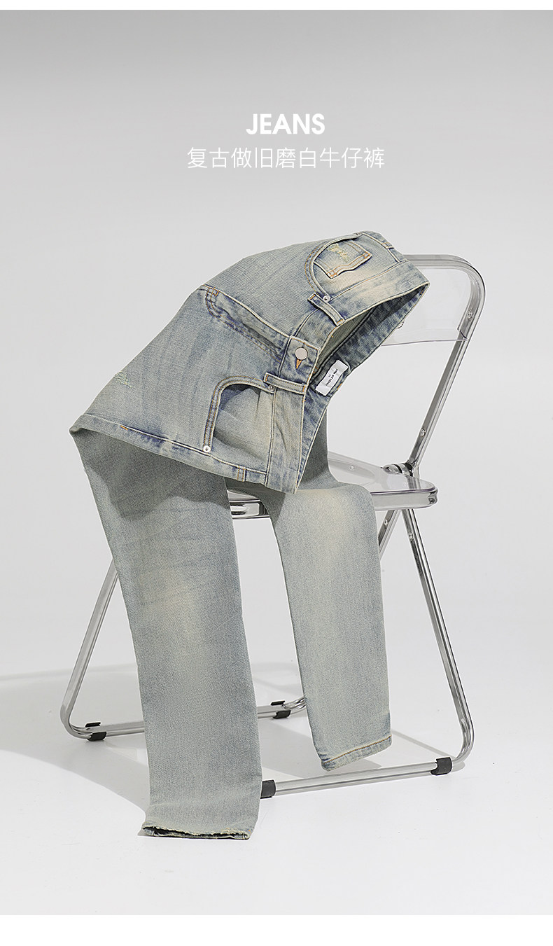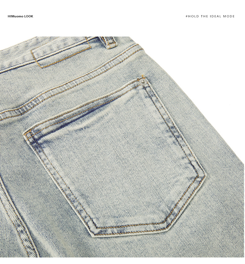 HIM漢崇 修身弹力锥形小脚牛仔裤男 复古淡蓝色破洞做旧 2025秋季