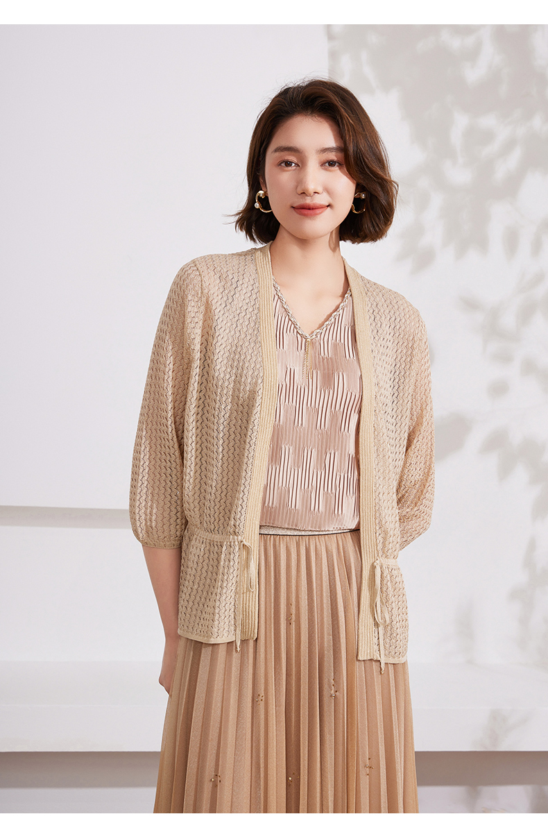 乔万尼桑蚕丝冰丝针织衫开衫夏季薄款镂空设计EM2M875