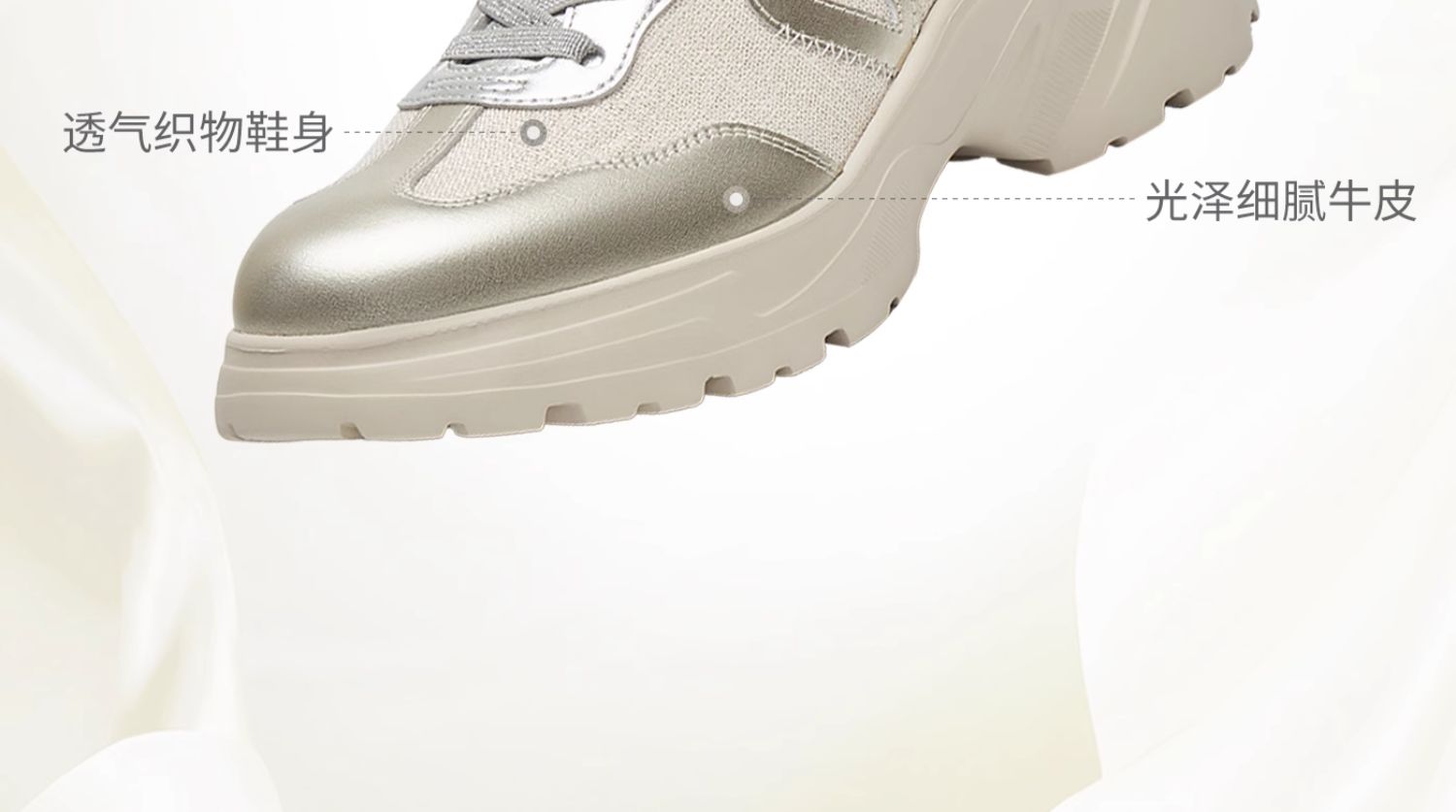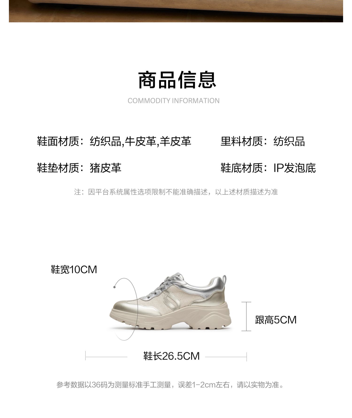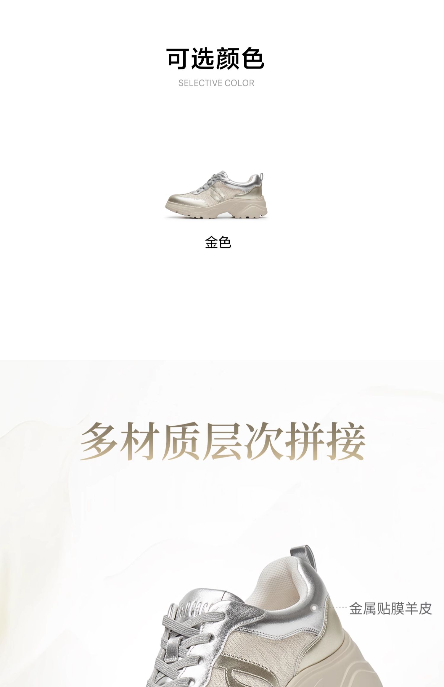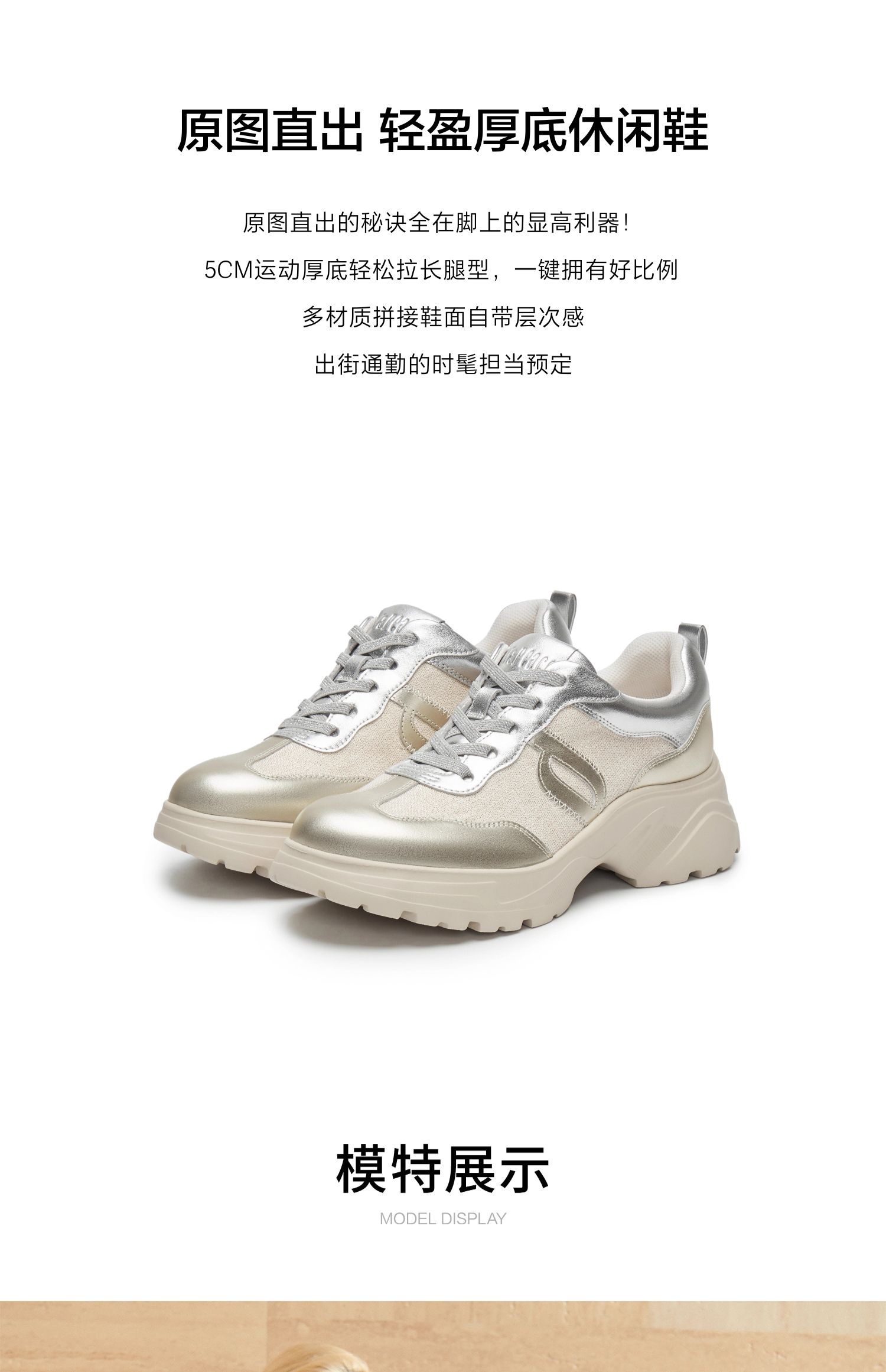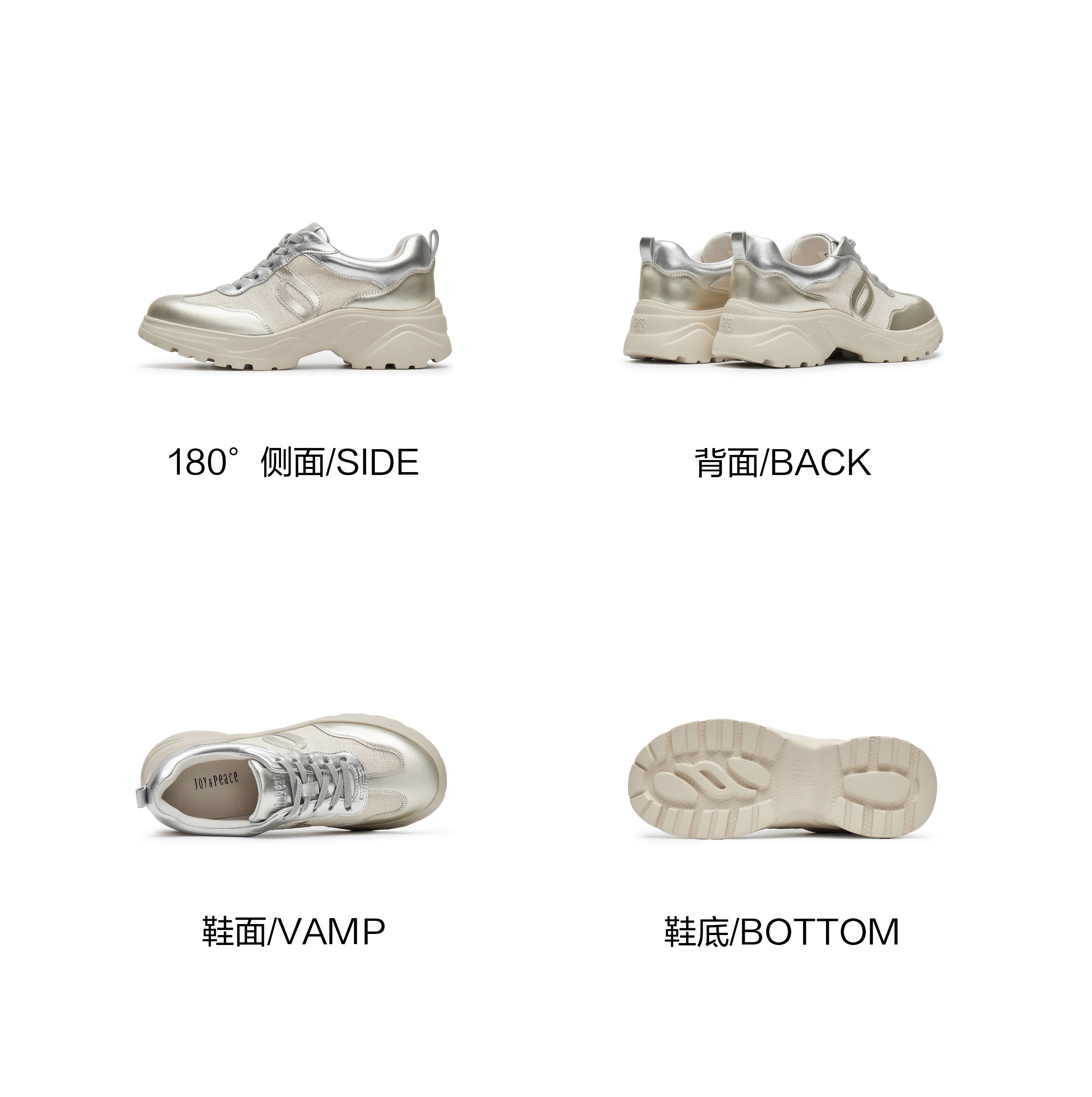 Joy&peace真美诗 盛夏光年2025春季新款金色休闲运动鞋厚底老爹鞋女YYM32AM5