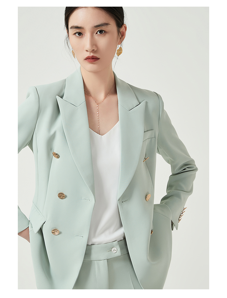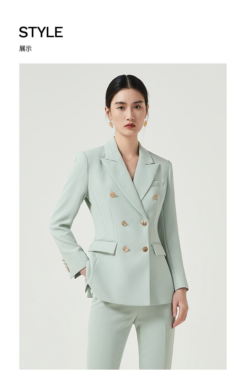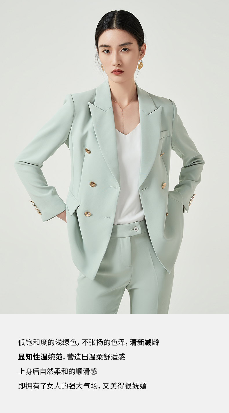 IWY/高端浅绿色西装外套女气质双排扣美容院职业装工作服通勤商务正装CP11385