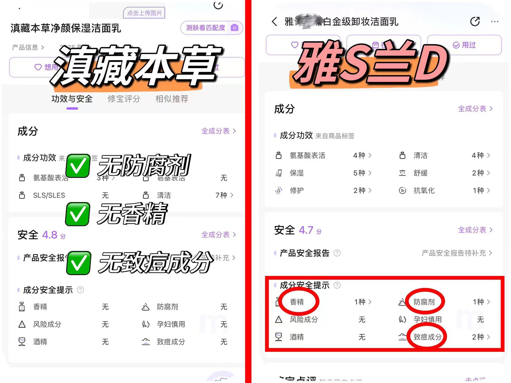 缺点:有紧绷感,皮肤干,有防腐剂和化学增泡剂