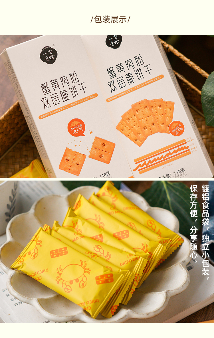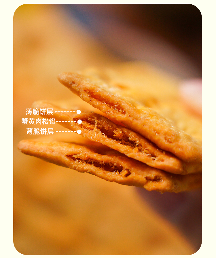 品名:蟹黄肉松双层脆饼干 规格:118g/盒发货地/产地:广州/广东汕头
