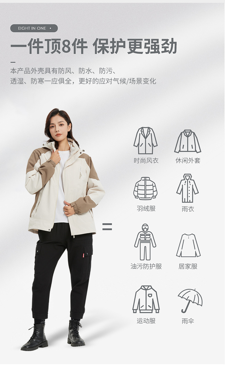 三合一冲锋外套男女款户外三防山系衣服春秋款情侣防风防污登山夹克
