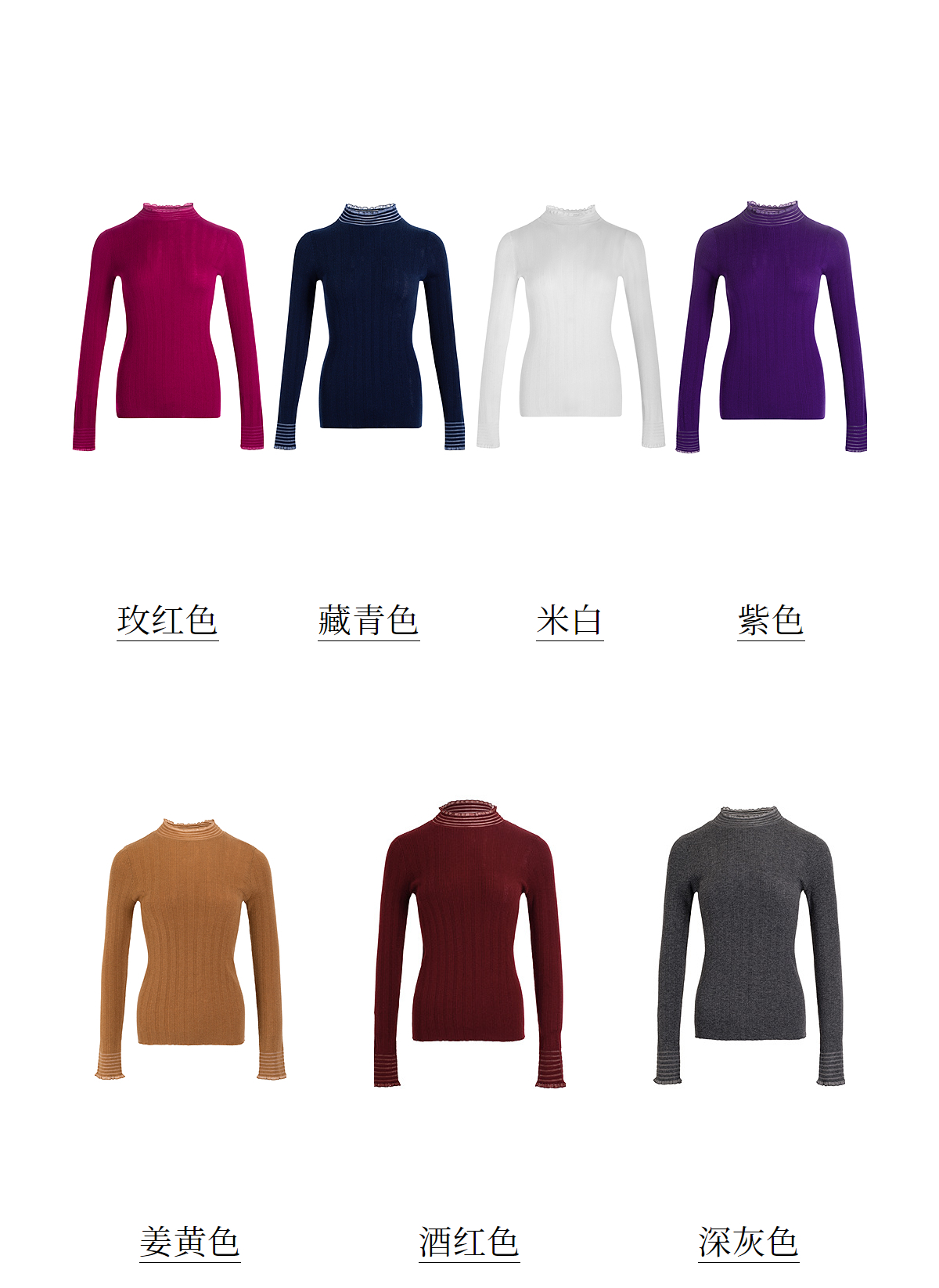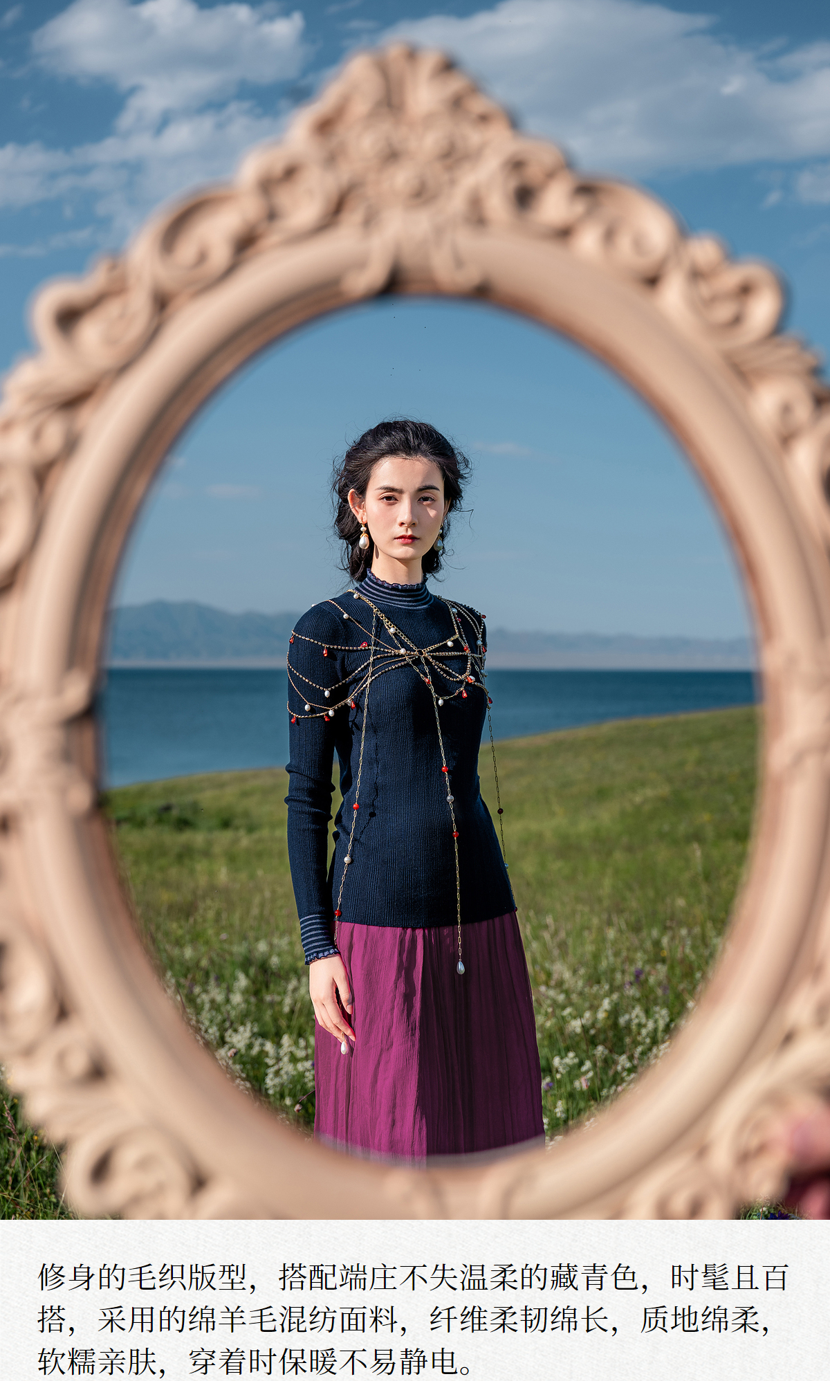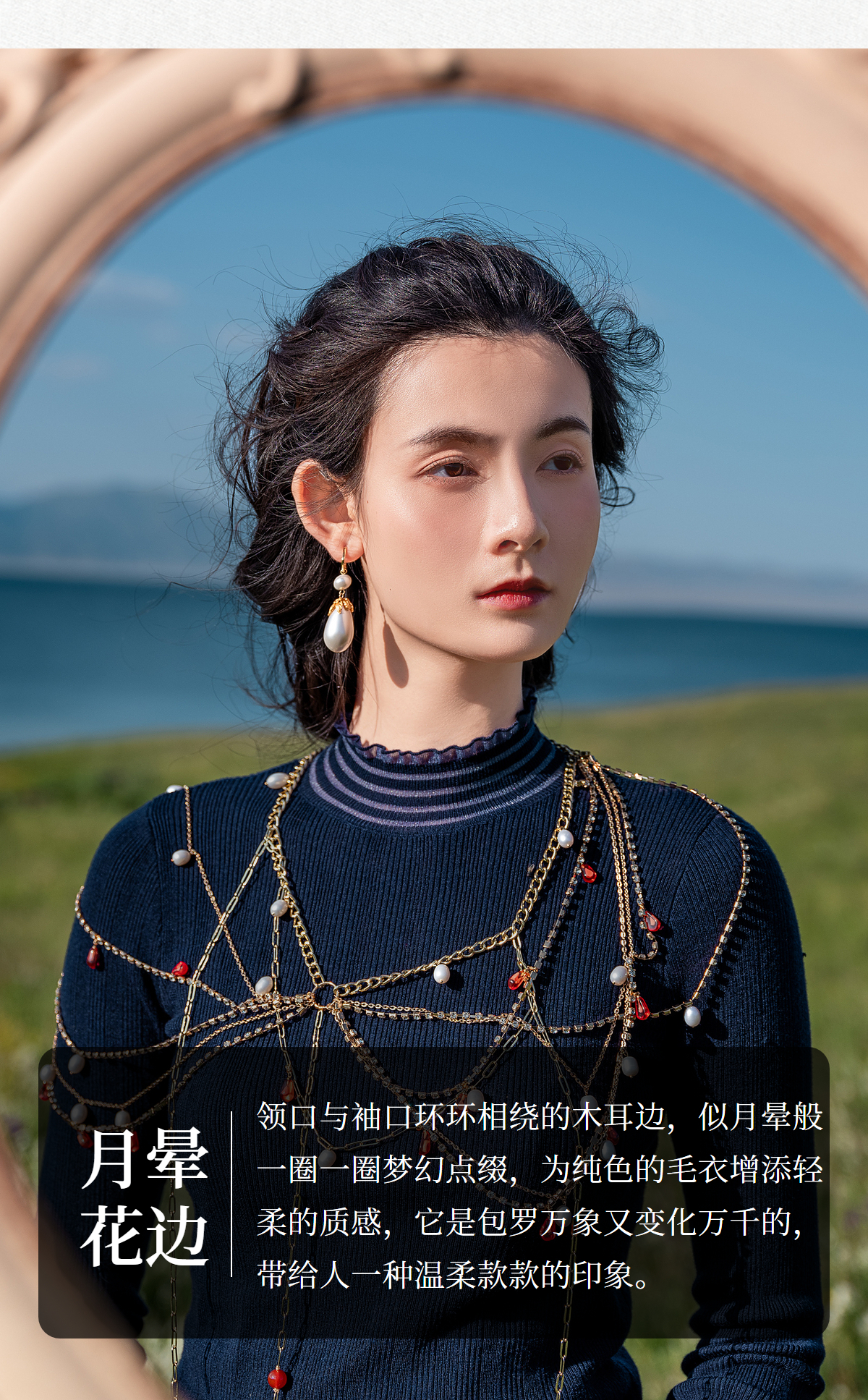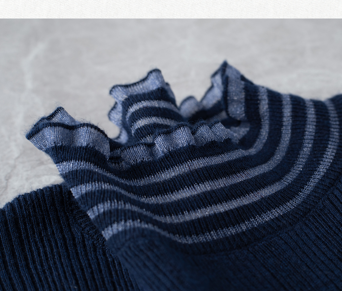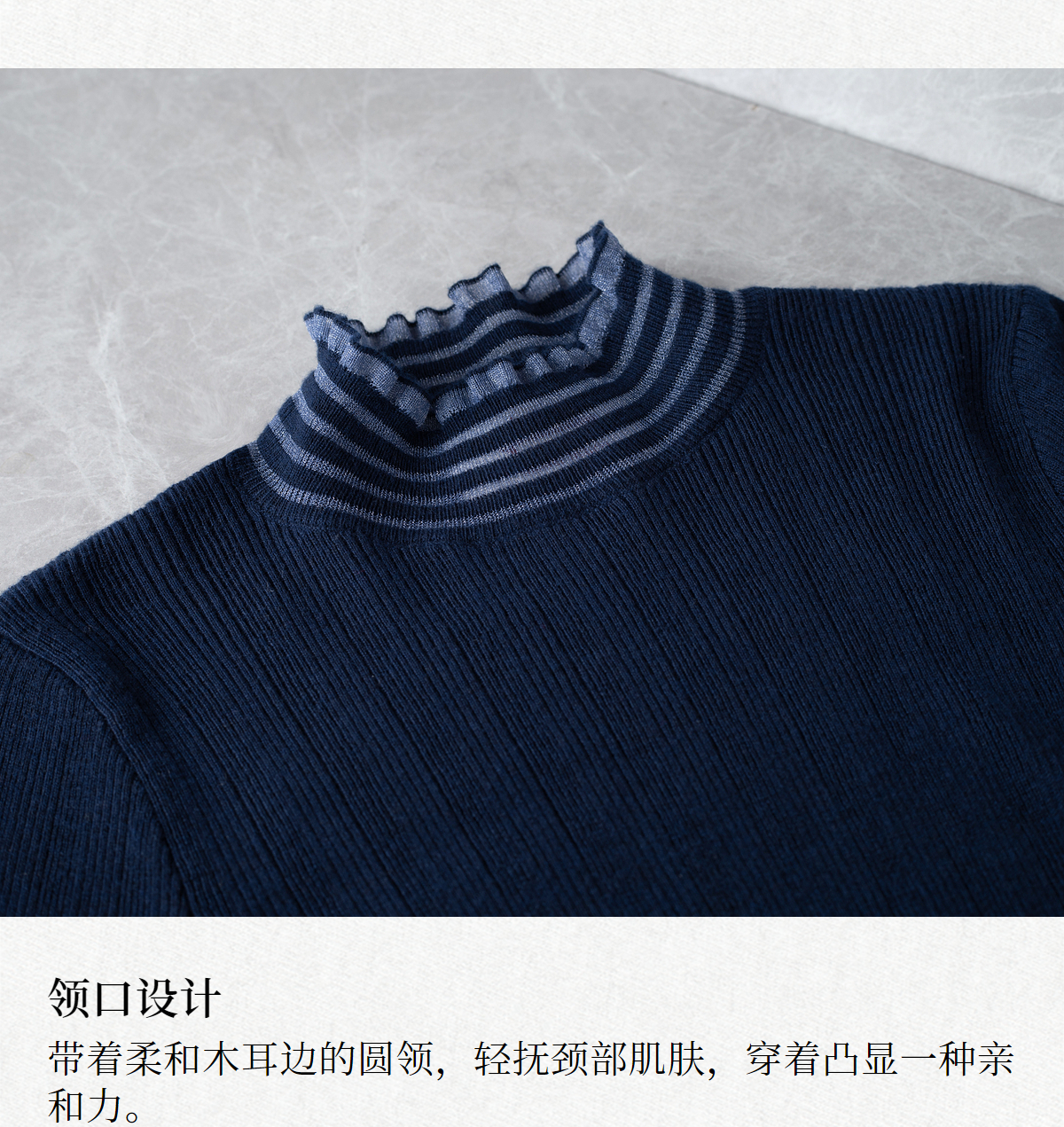 【林栖设计小店】(现货)花边领毛织上衣复古修身打底百搭保暖2025秋冬新品毛衣女1932454-藏青色米白色1961288