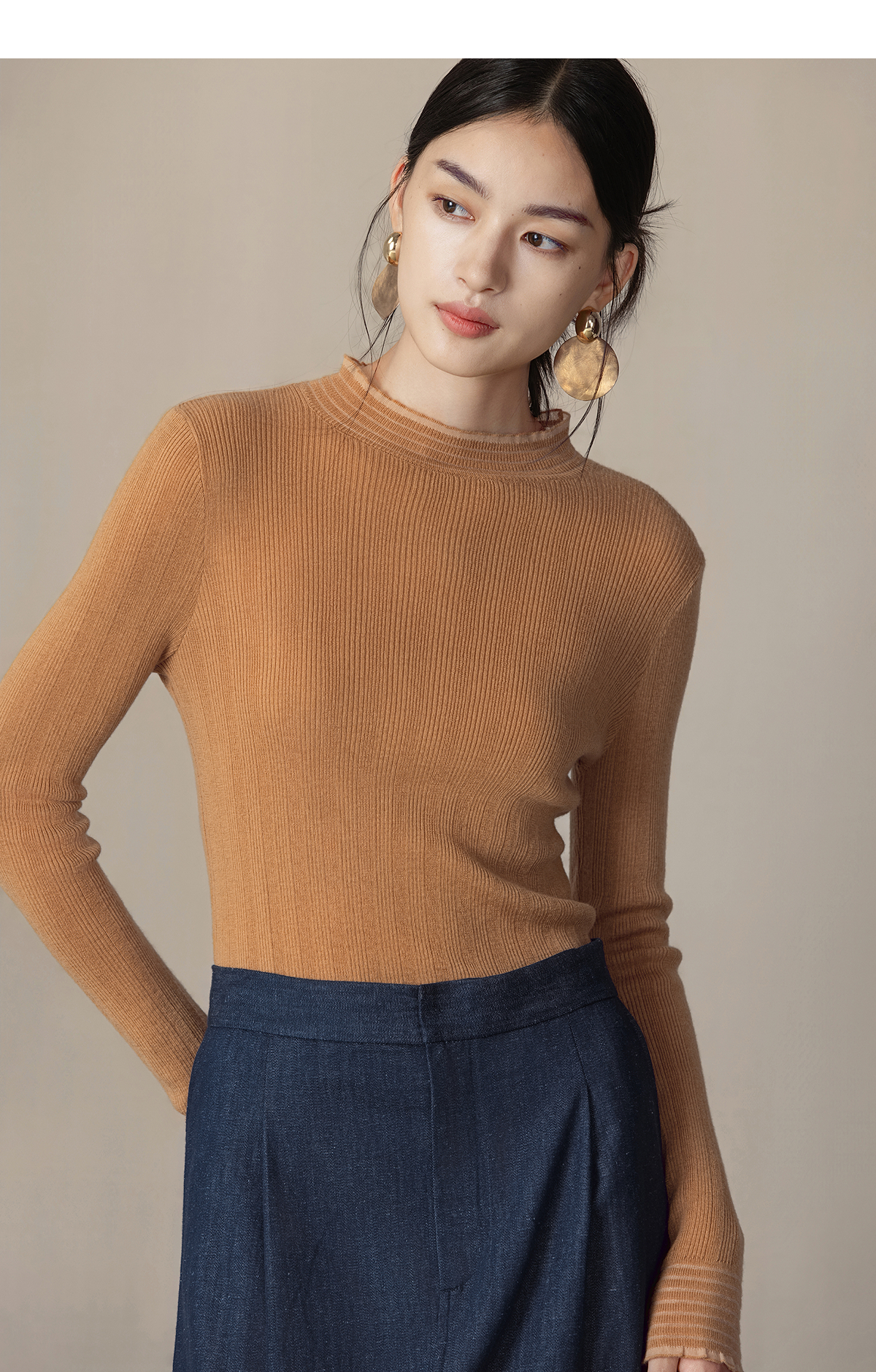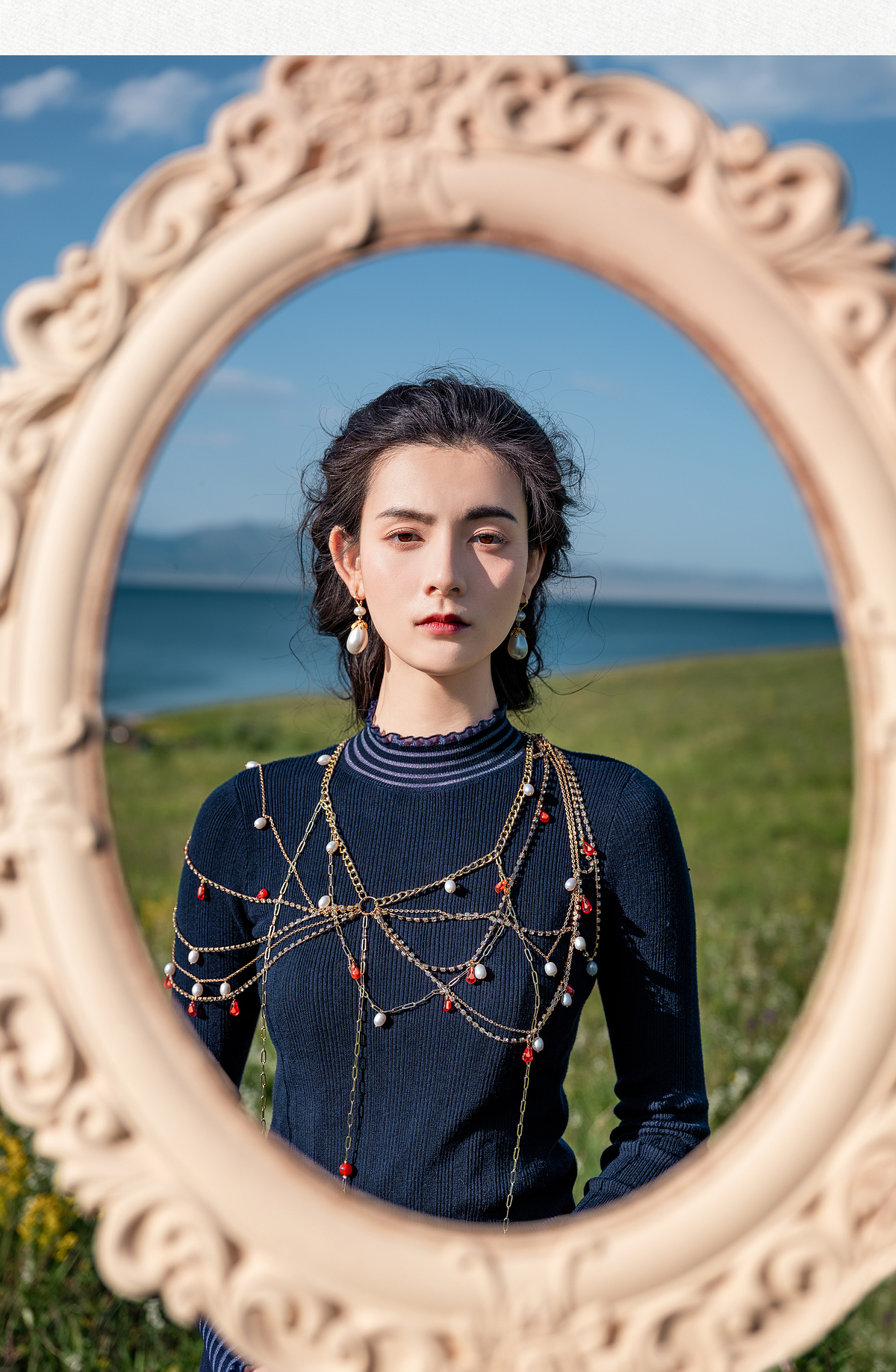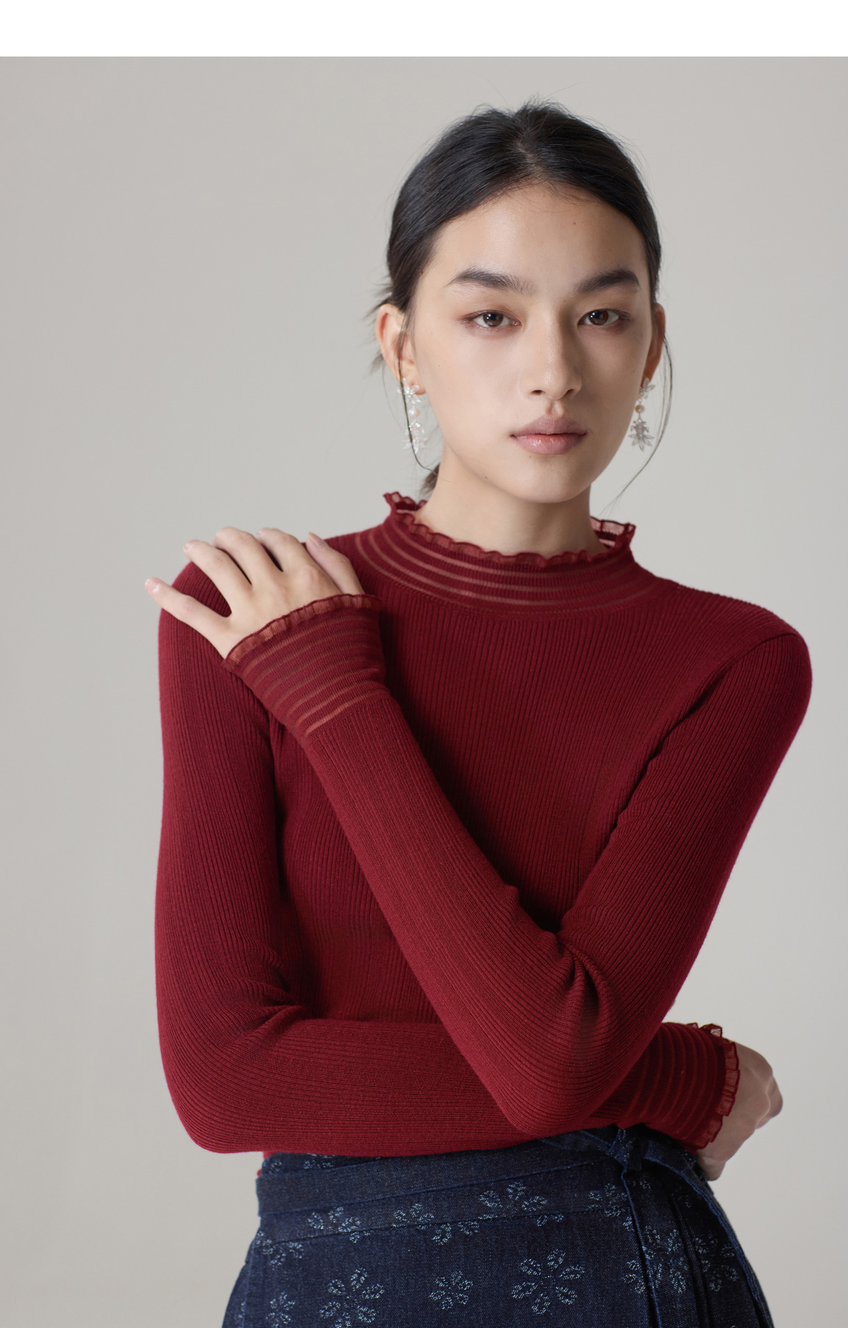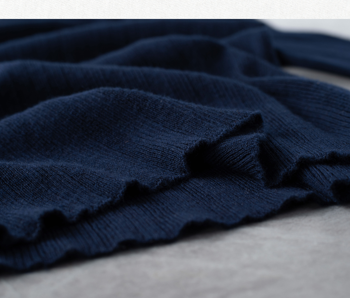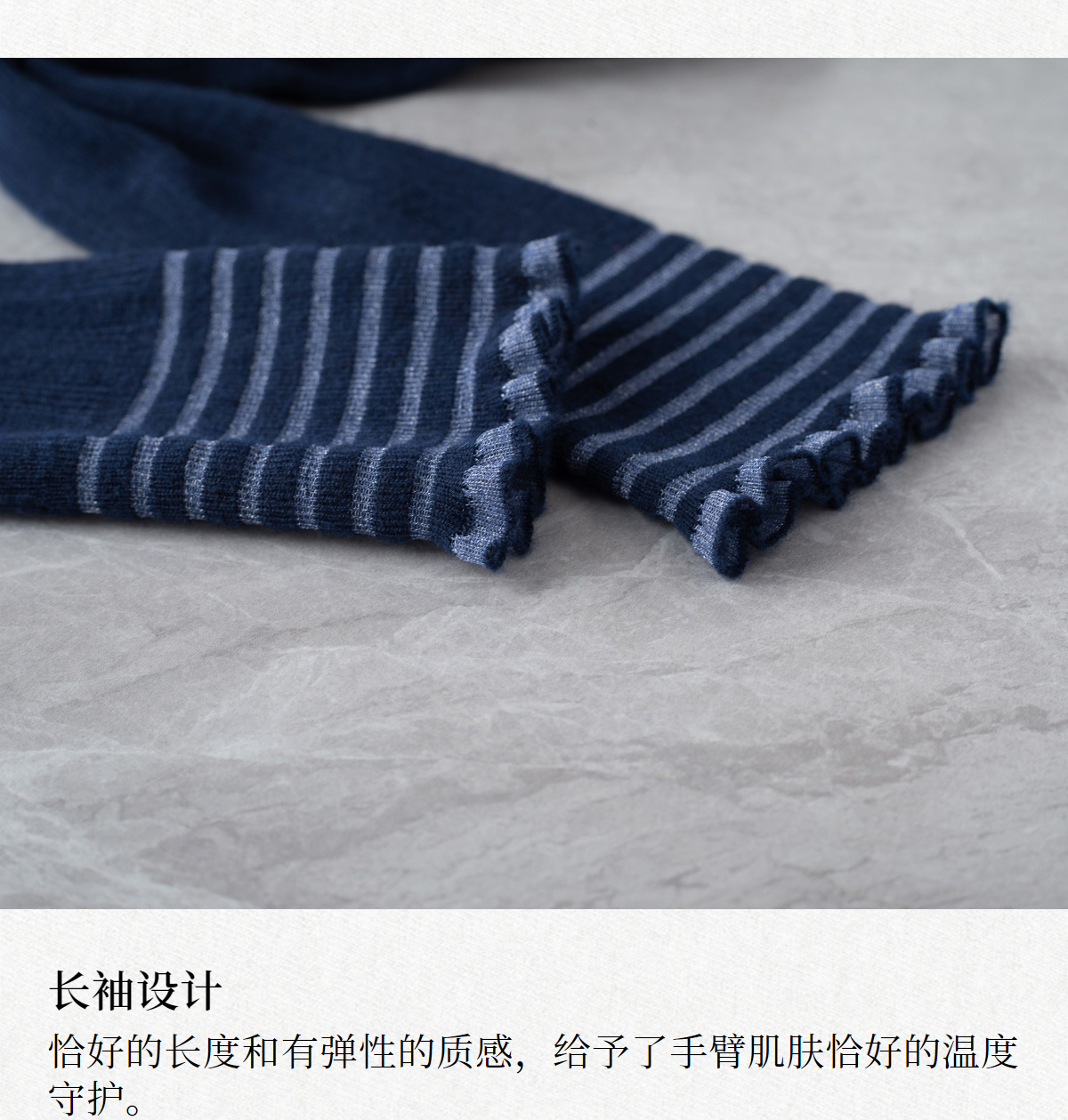 【林栖设计小店】(现货)花边领毛织上衣复古修身打底百搭保暖2025秋冬新品毛衣女1932454-藏青色米白色1961288