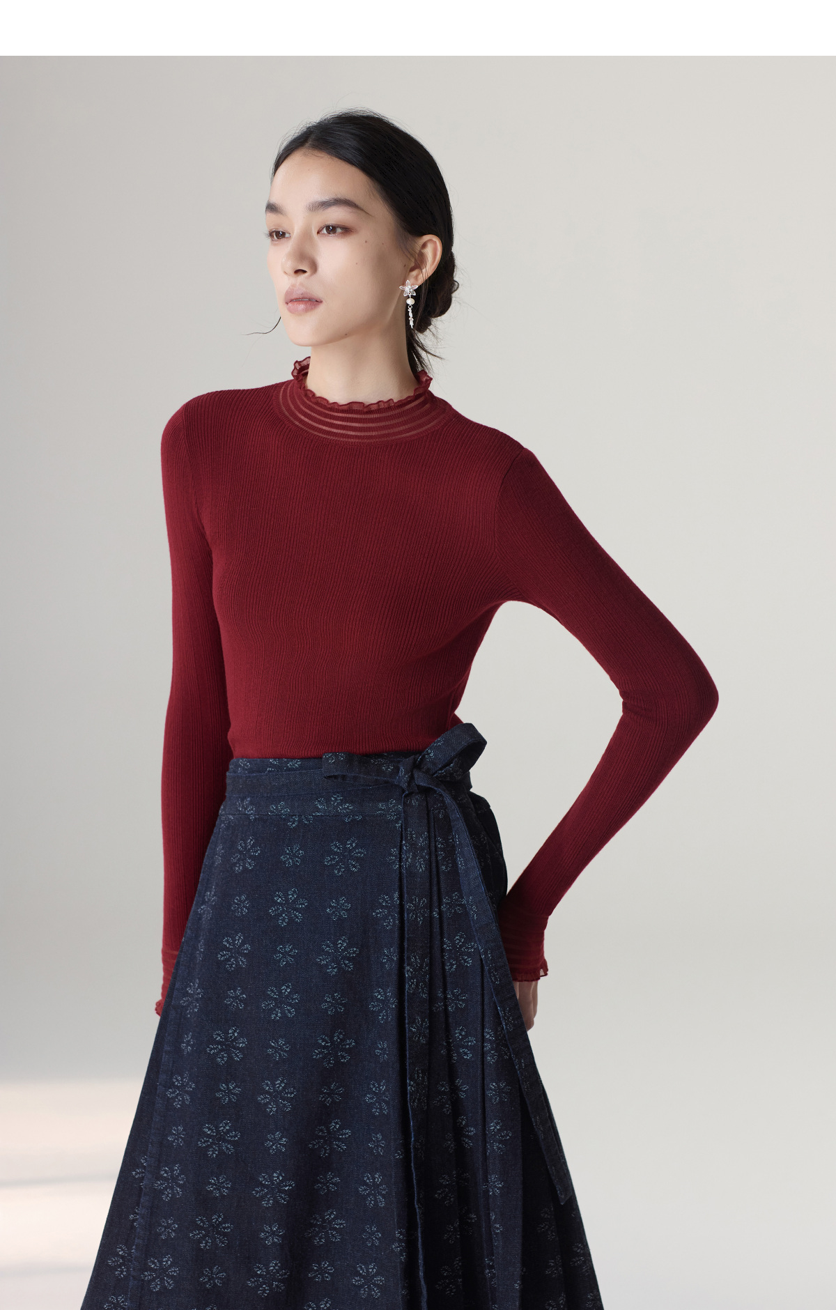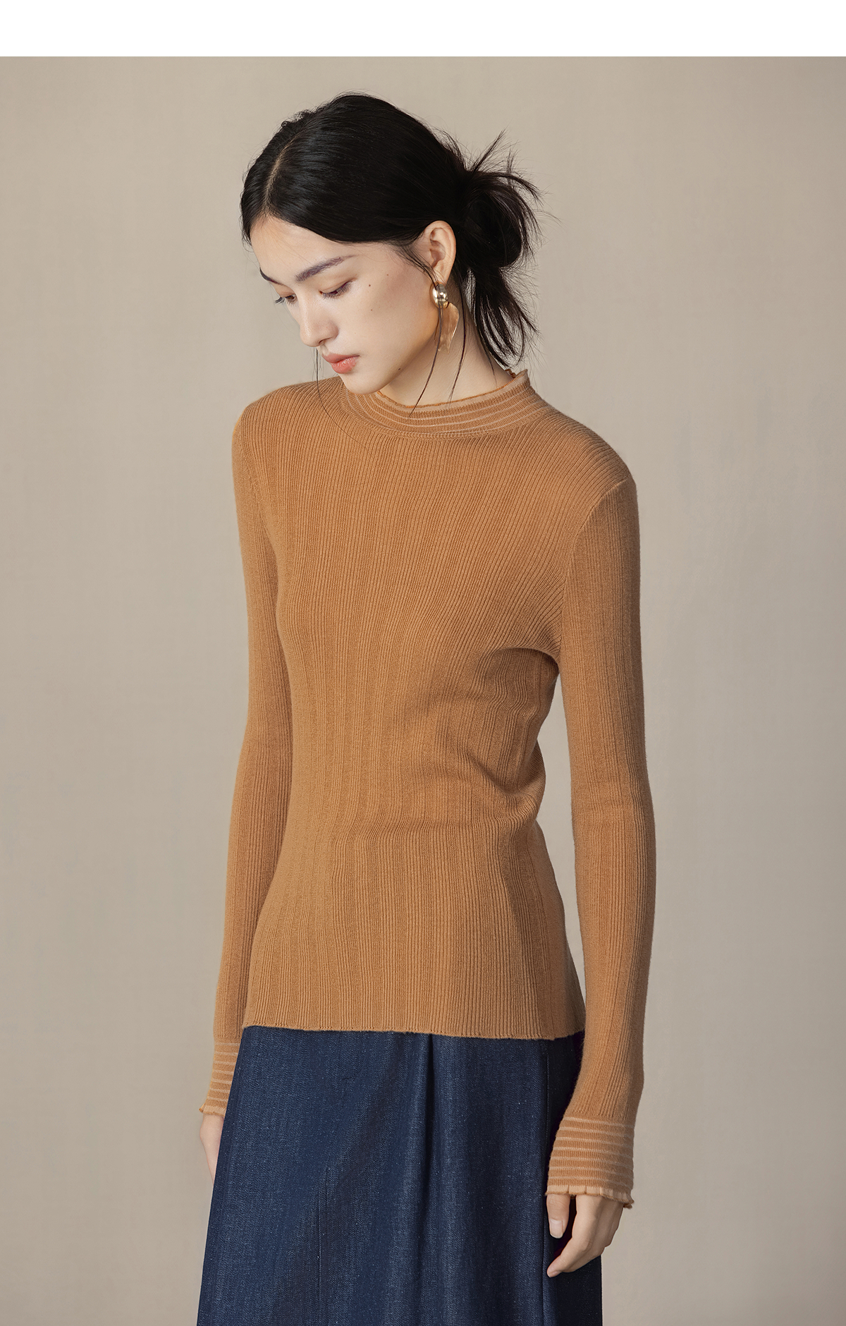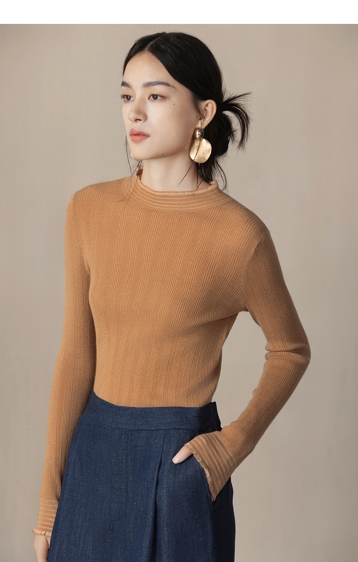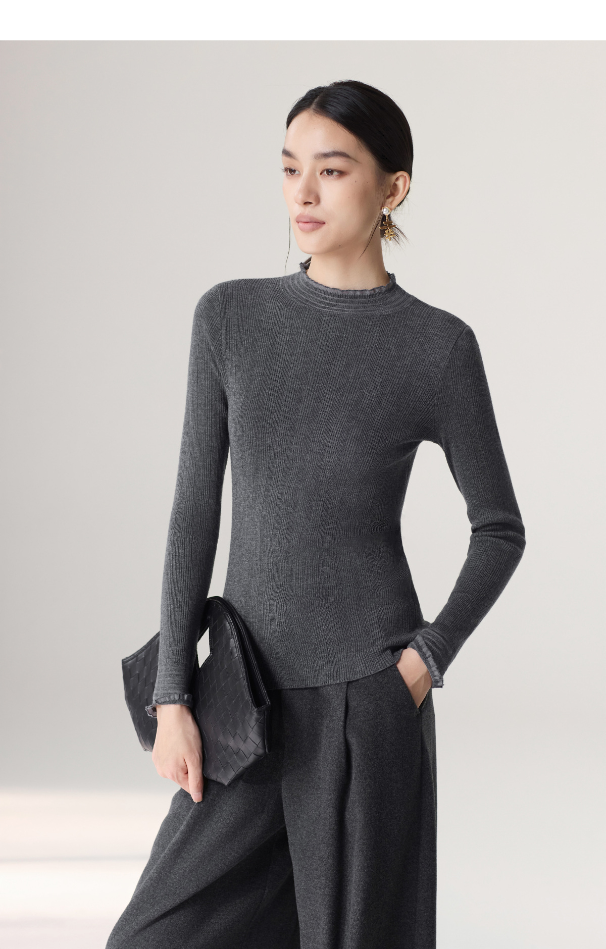 【林栖设计小店】(现货)花边领毛织上衣复古修身打底百搭保暖2025秋冬新品毛衣女1932454-藏青色米白色1961288