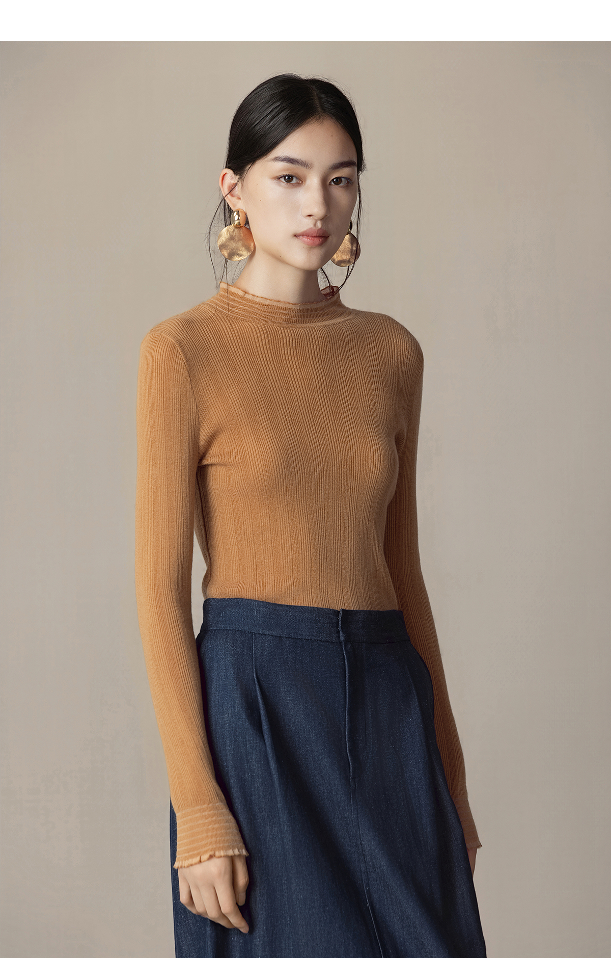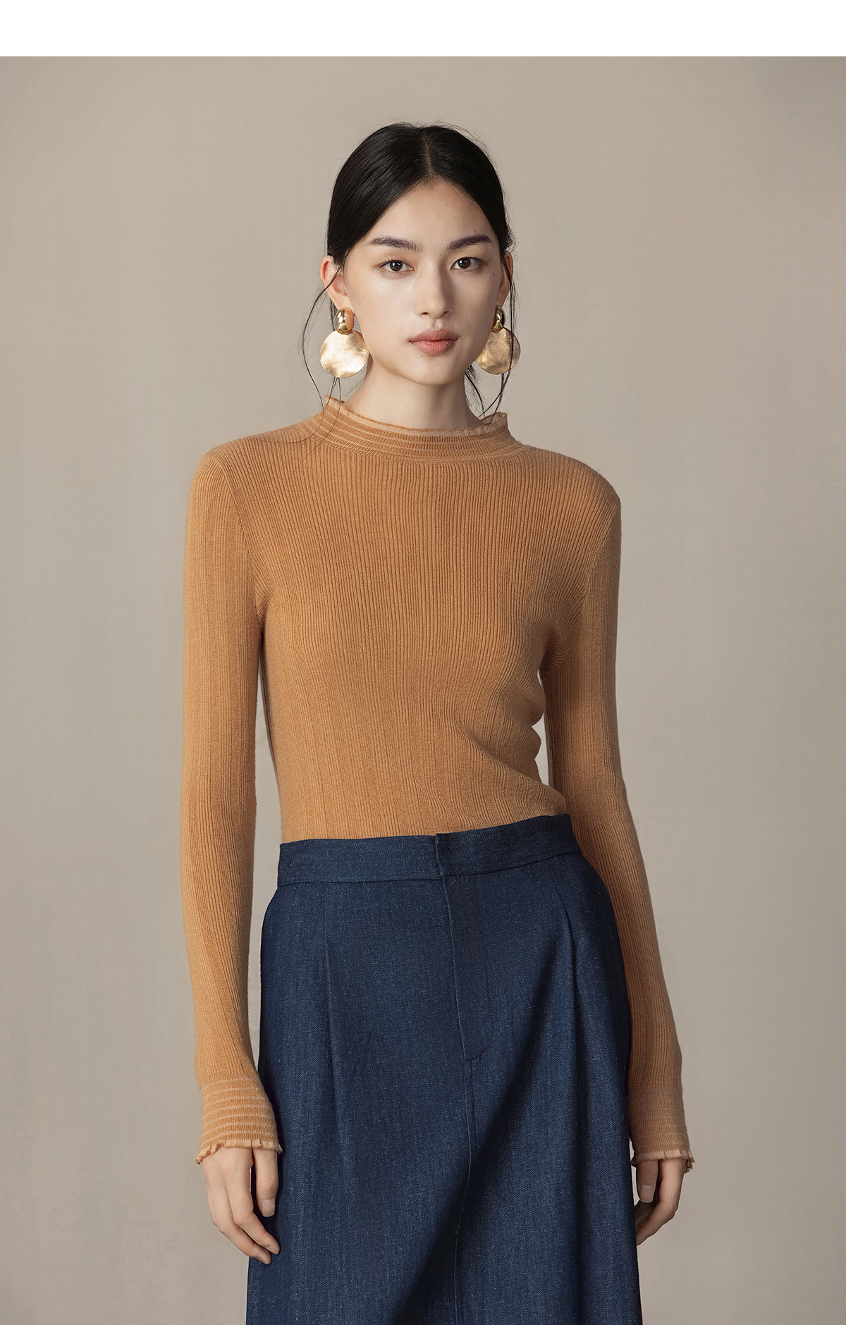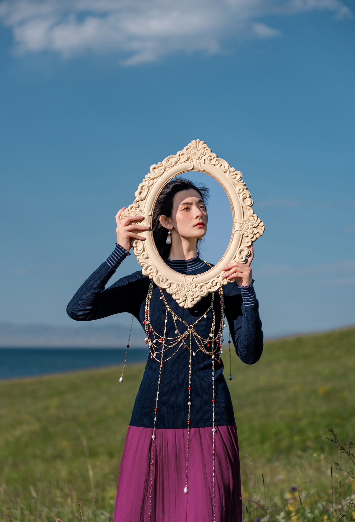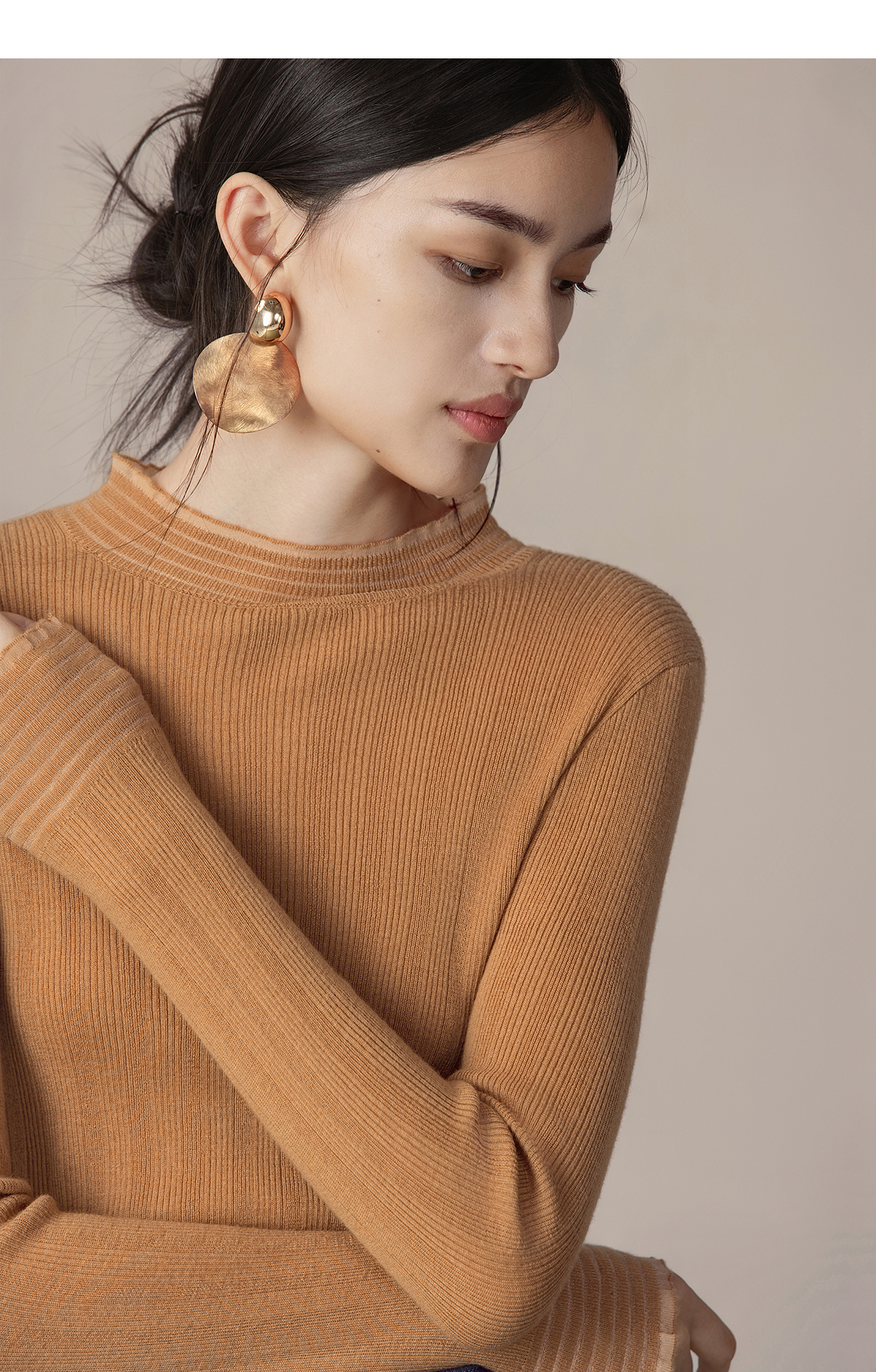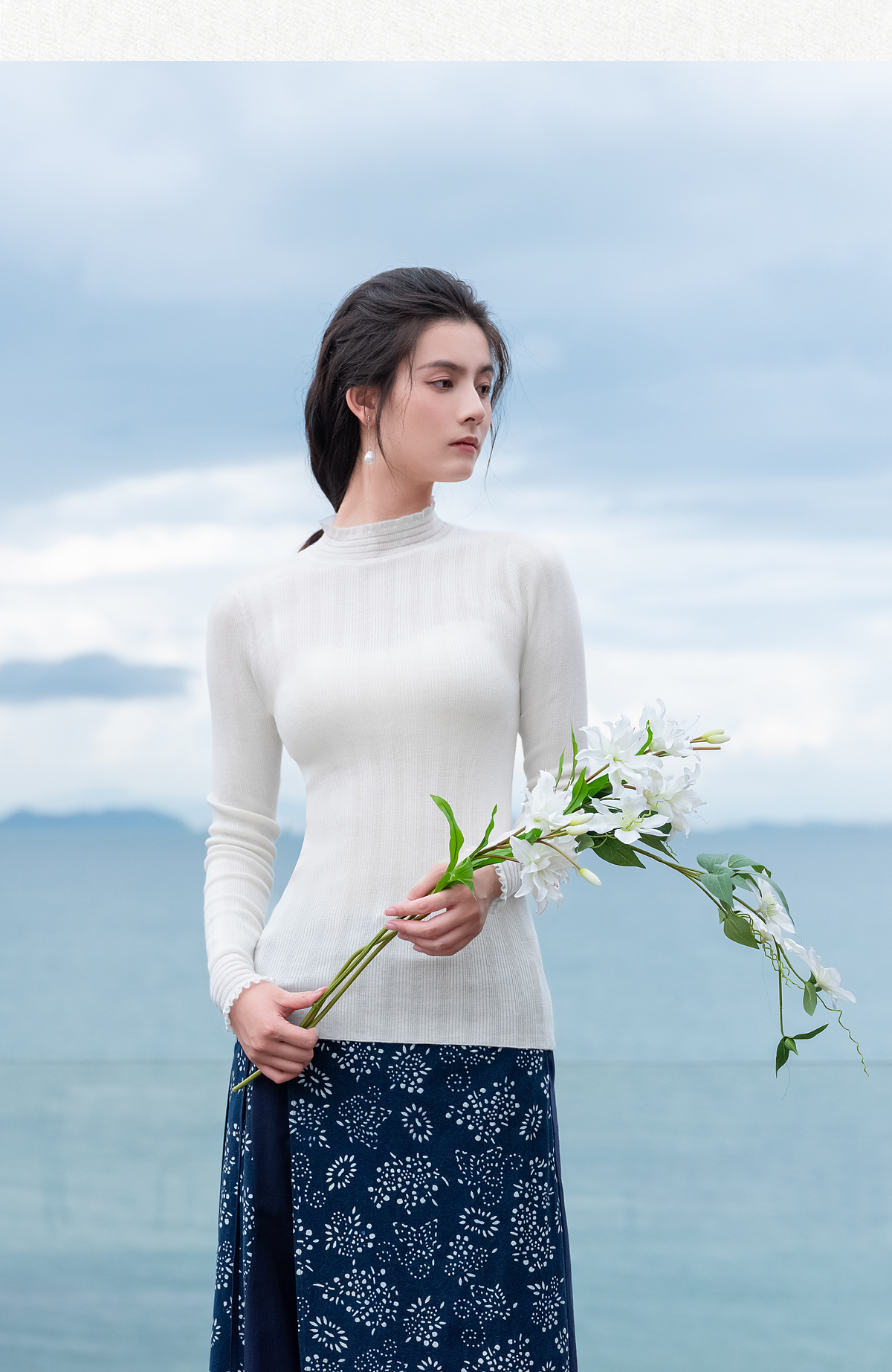 【林栖设计小店】(现货)花边领毛织上衣复古修身打底百搭保暖2025秋冬新品毛衣女1932454-藏青色米白色1961288