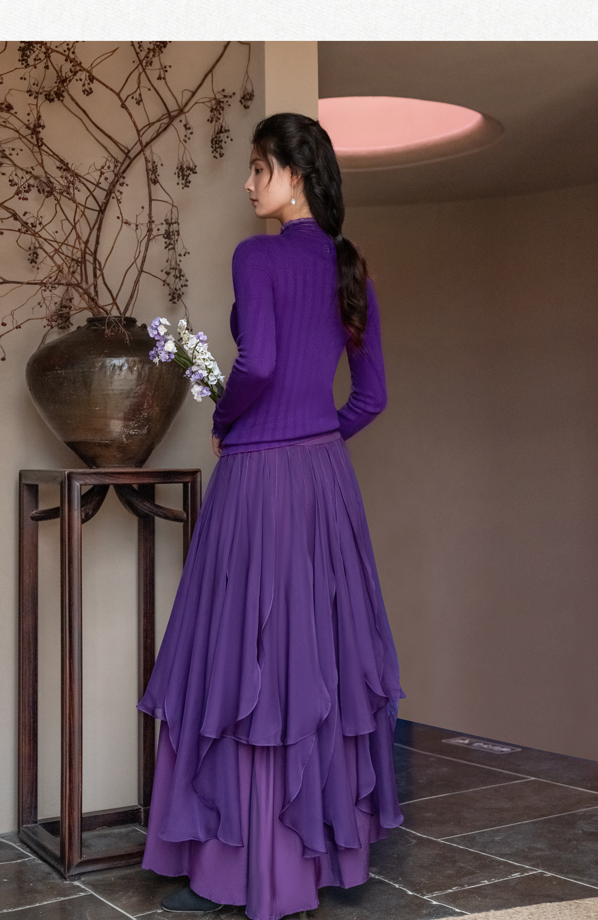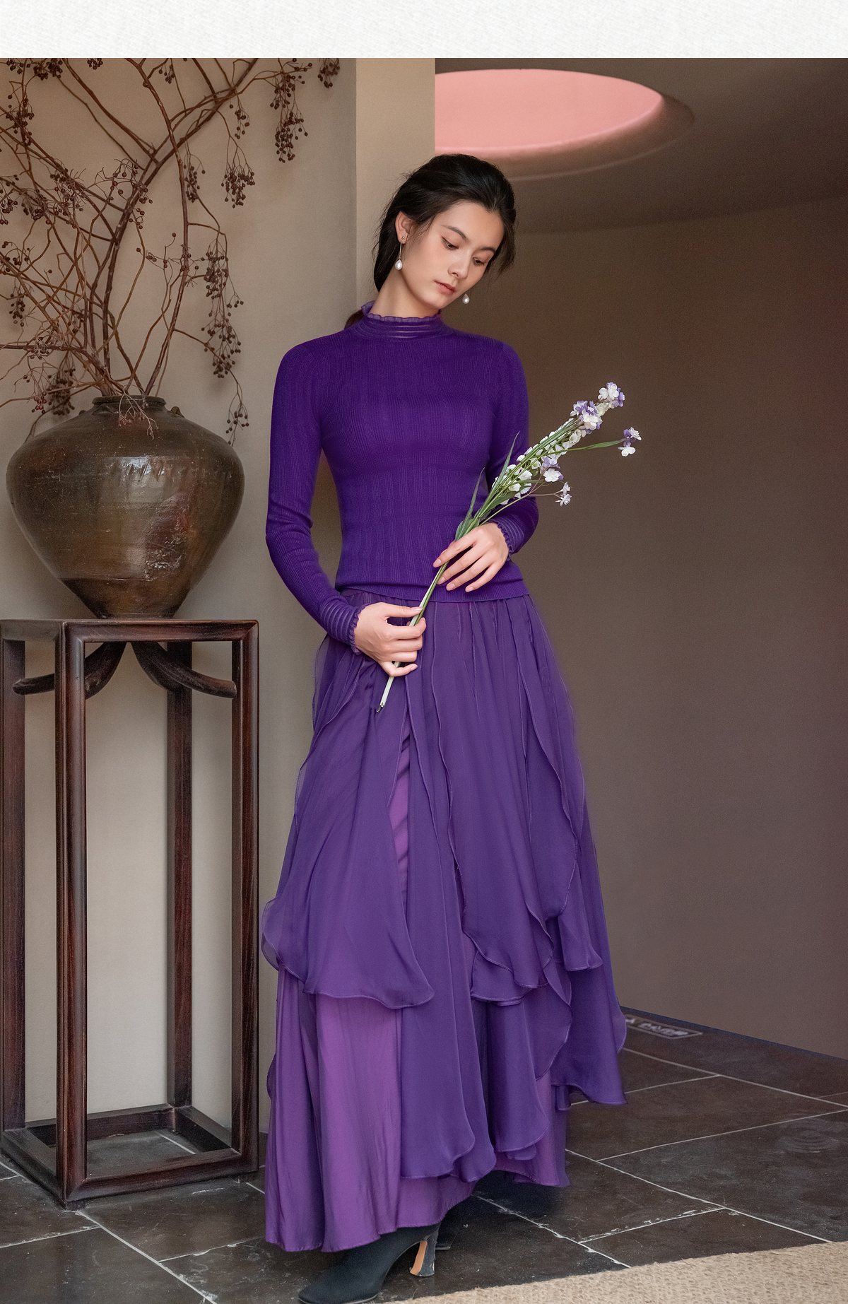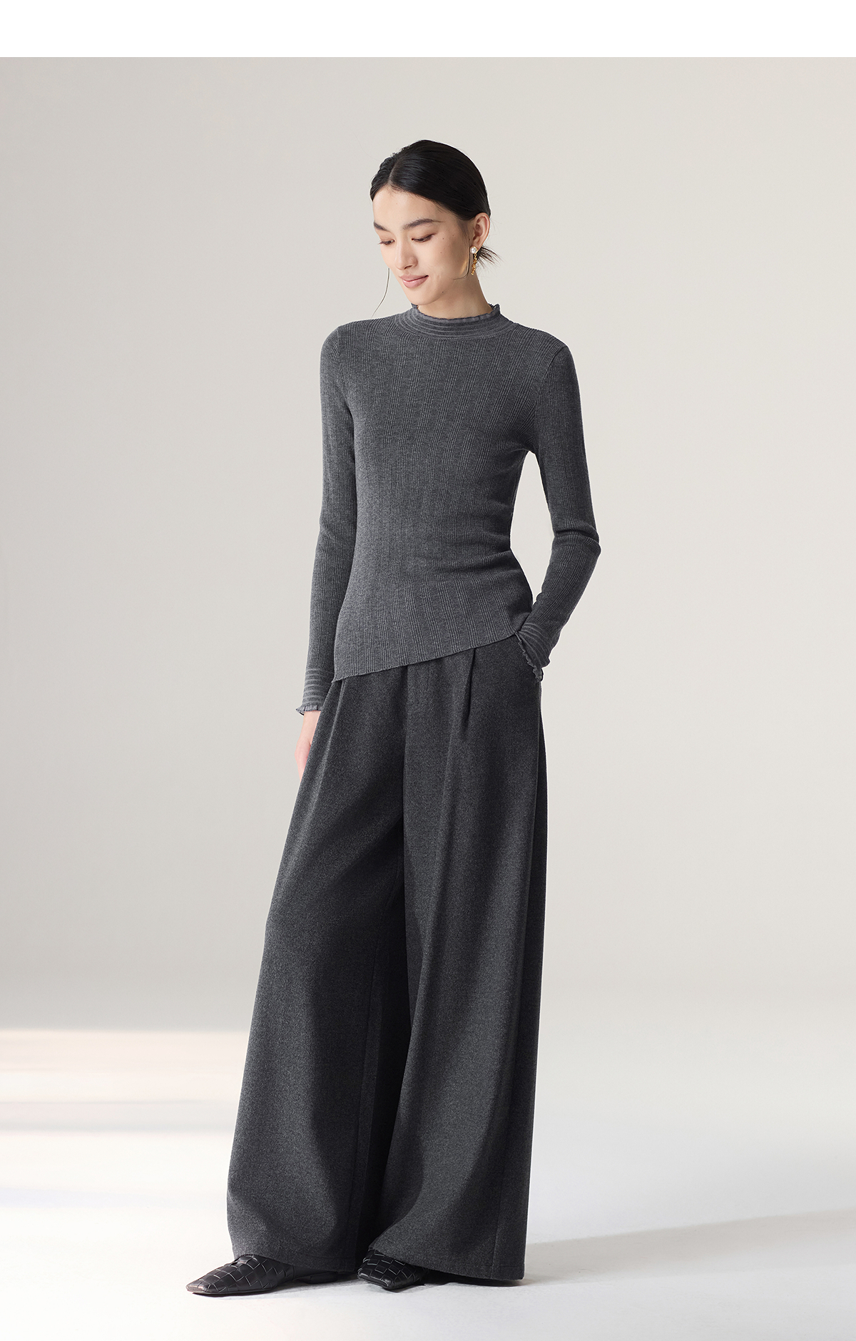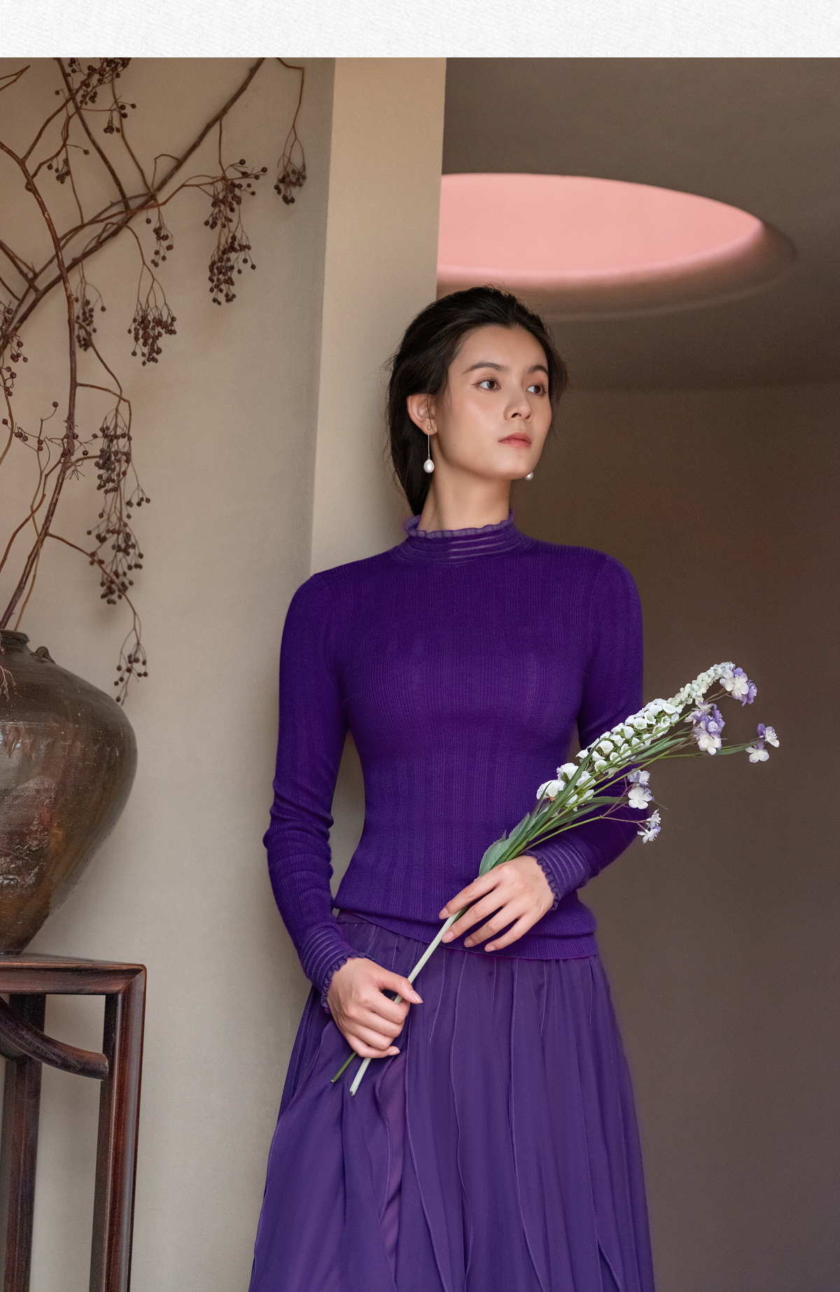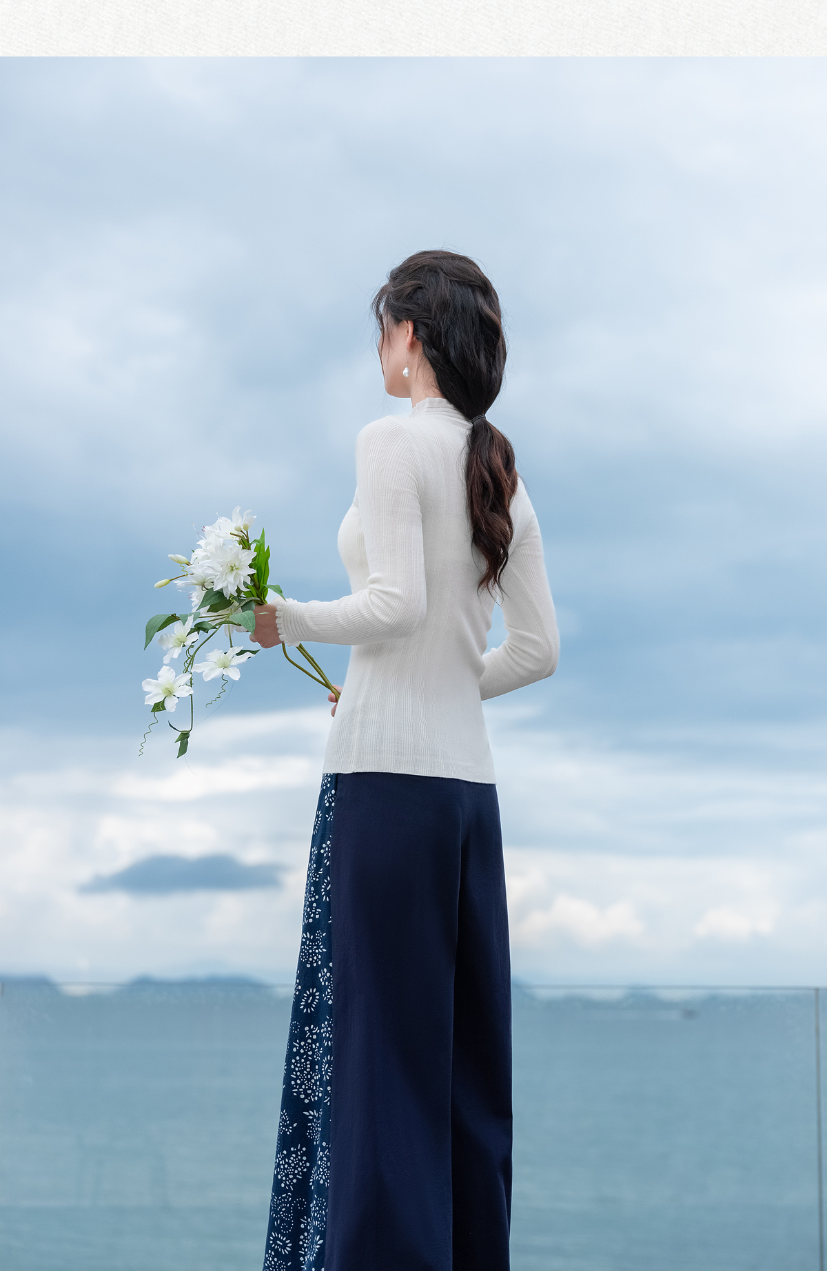 【林栖设计小店】(现货)花边领毛织上衣复古修身打底百搭保暖2025秋冬新品毛衣女1932454-藏青色米白色1961288