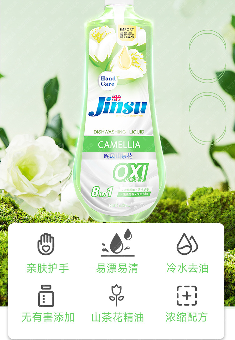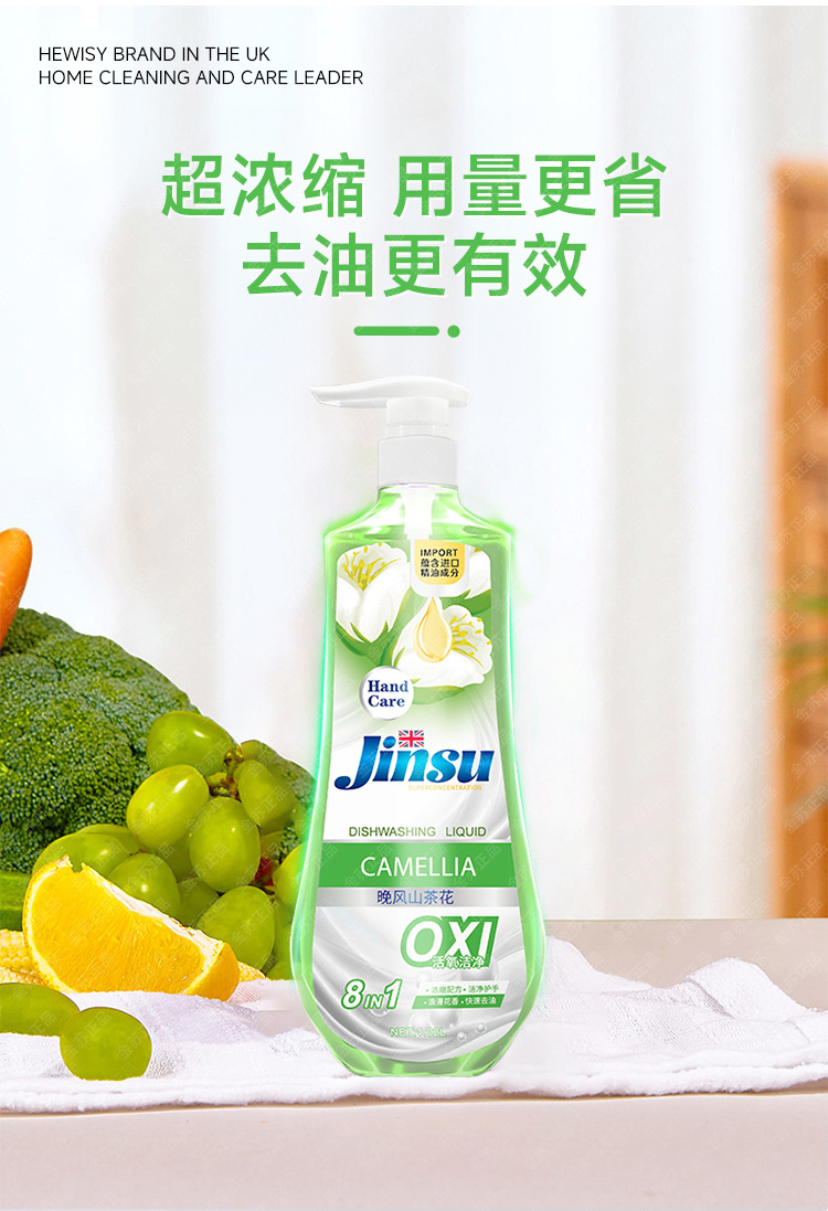【山茶花精油护手浓缩洗洁精】金苏浓缩型果蔬餐具洗洁精家用食品级山茶花餐具洗涤剂。ry