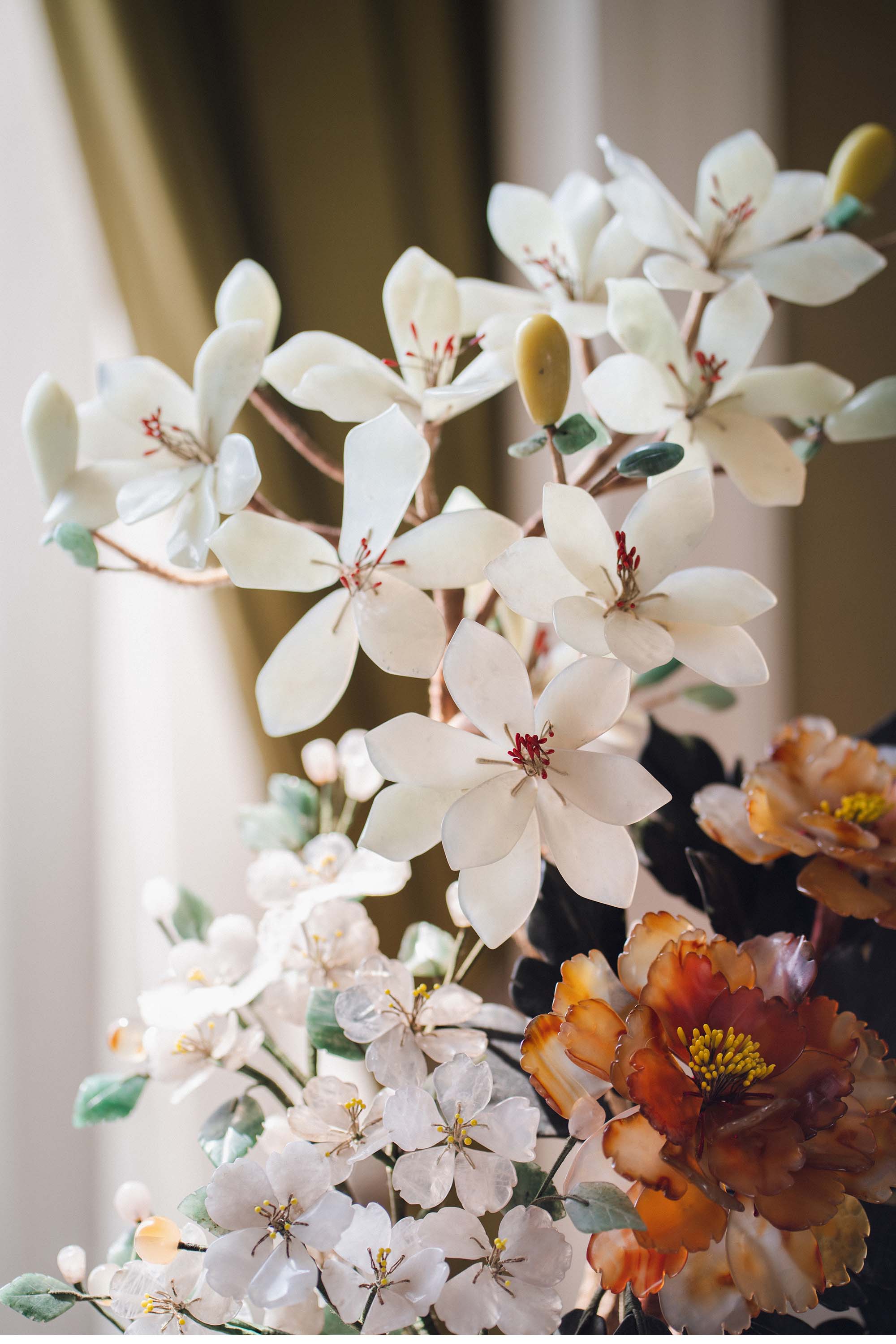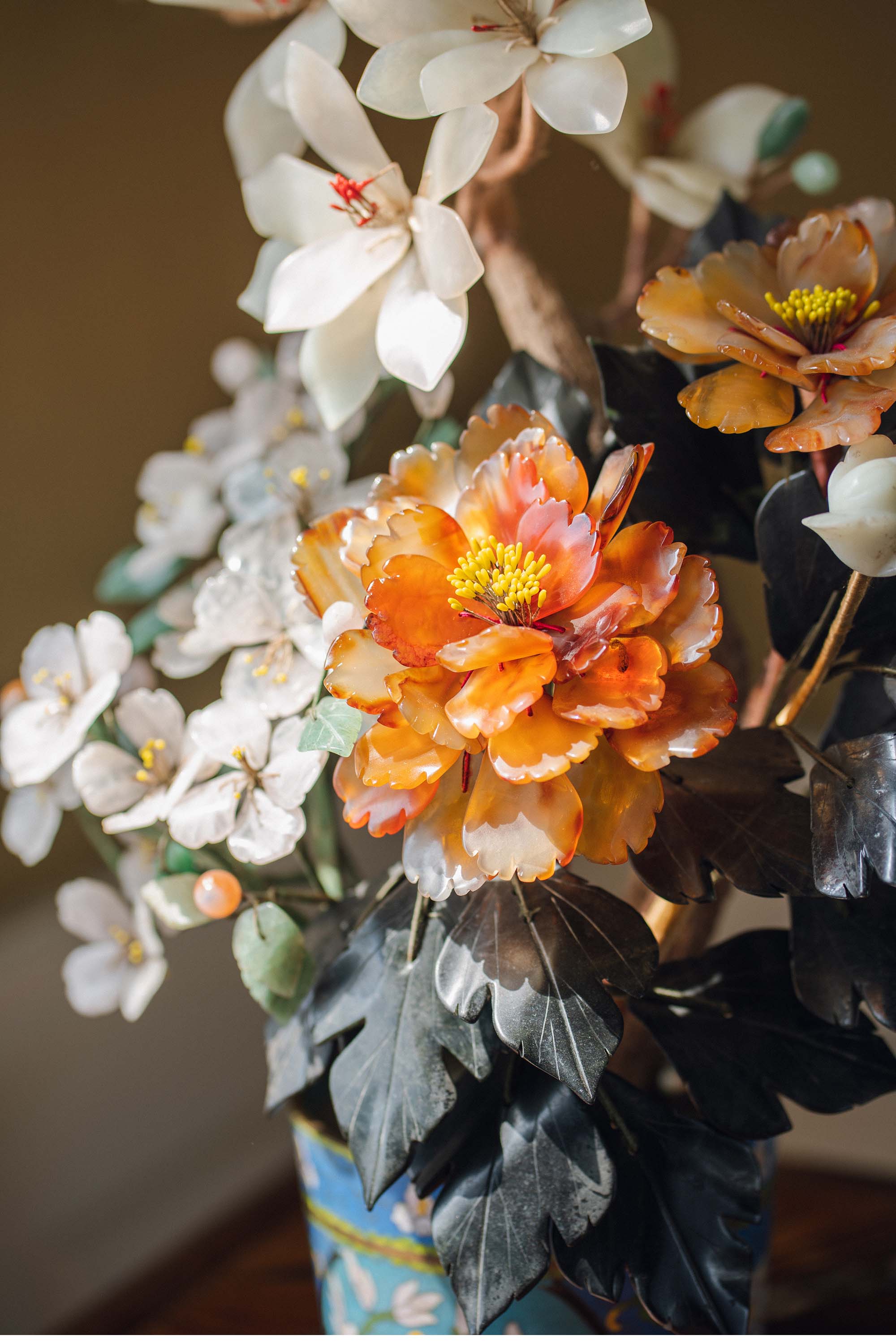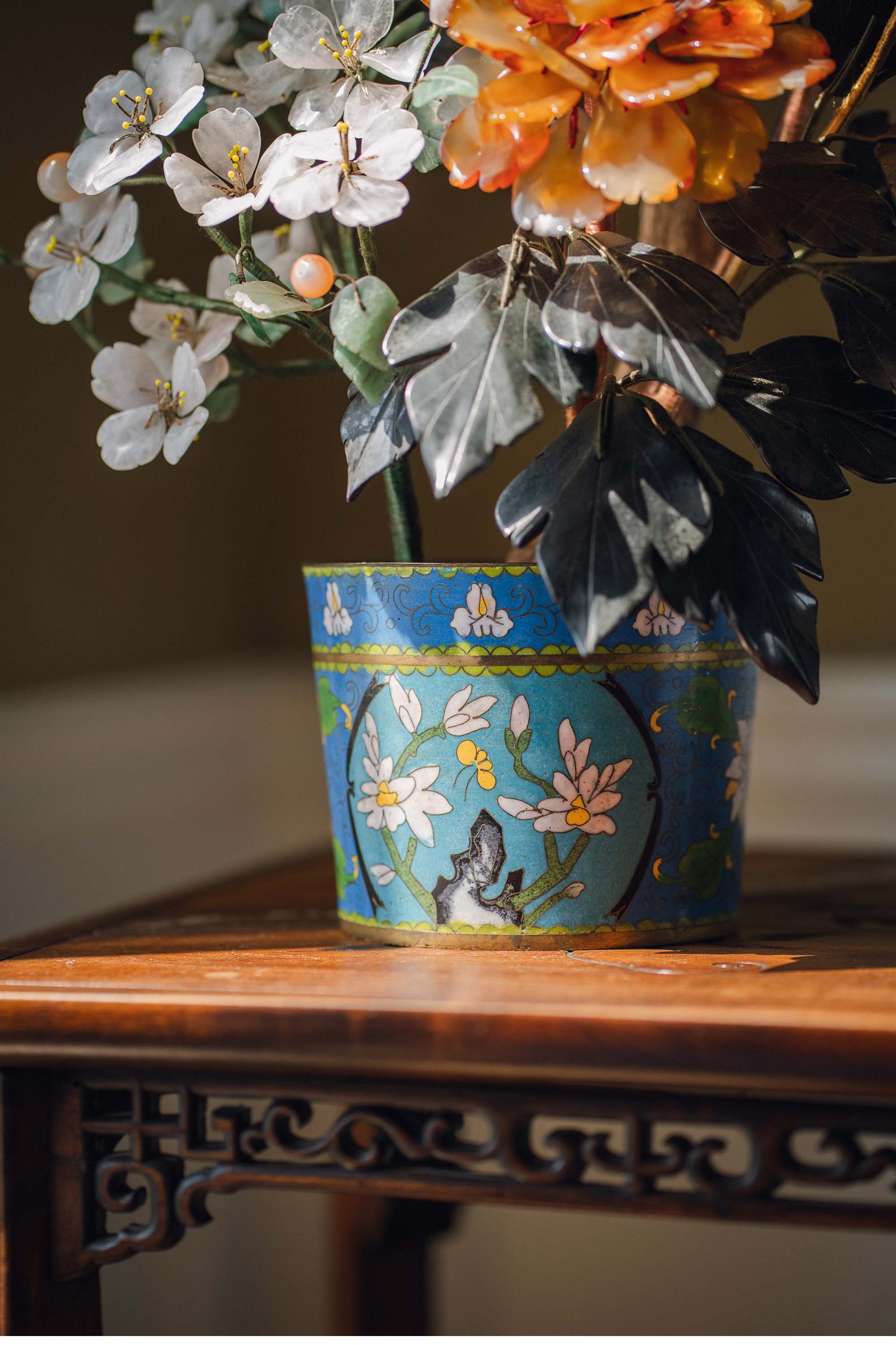 20世纪中国创汇时期出品传统花卉纹景泰蓝盆装饰「玉堂富贵」珍宝像生盆景