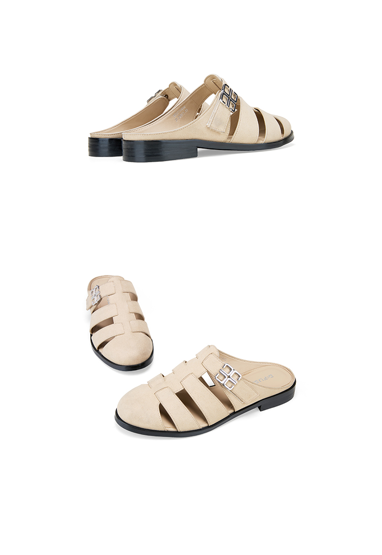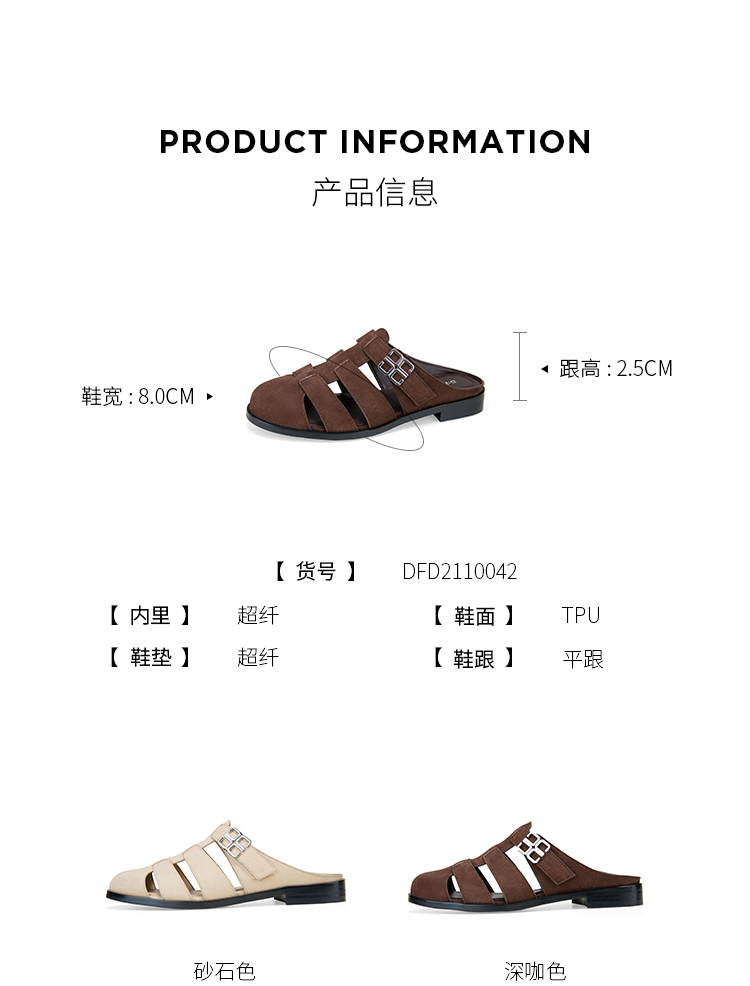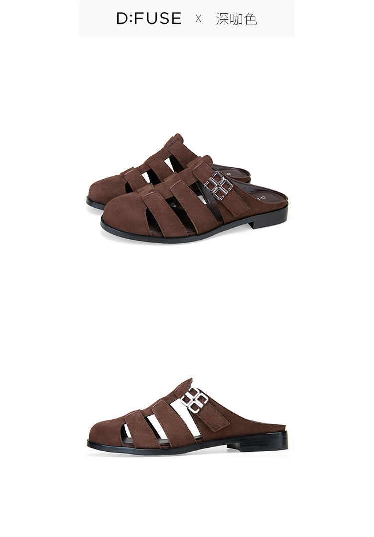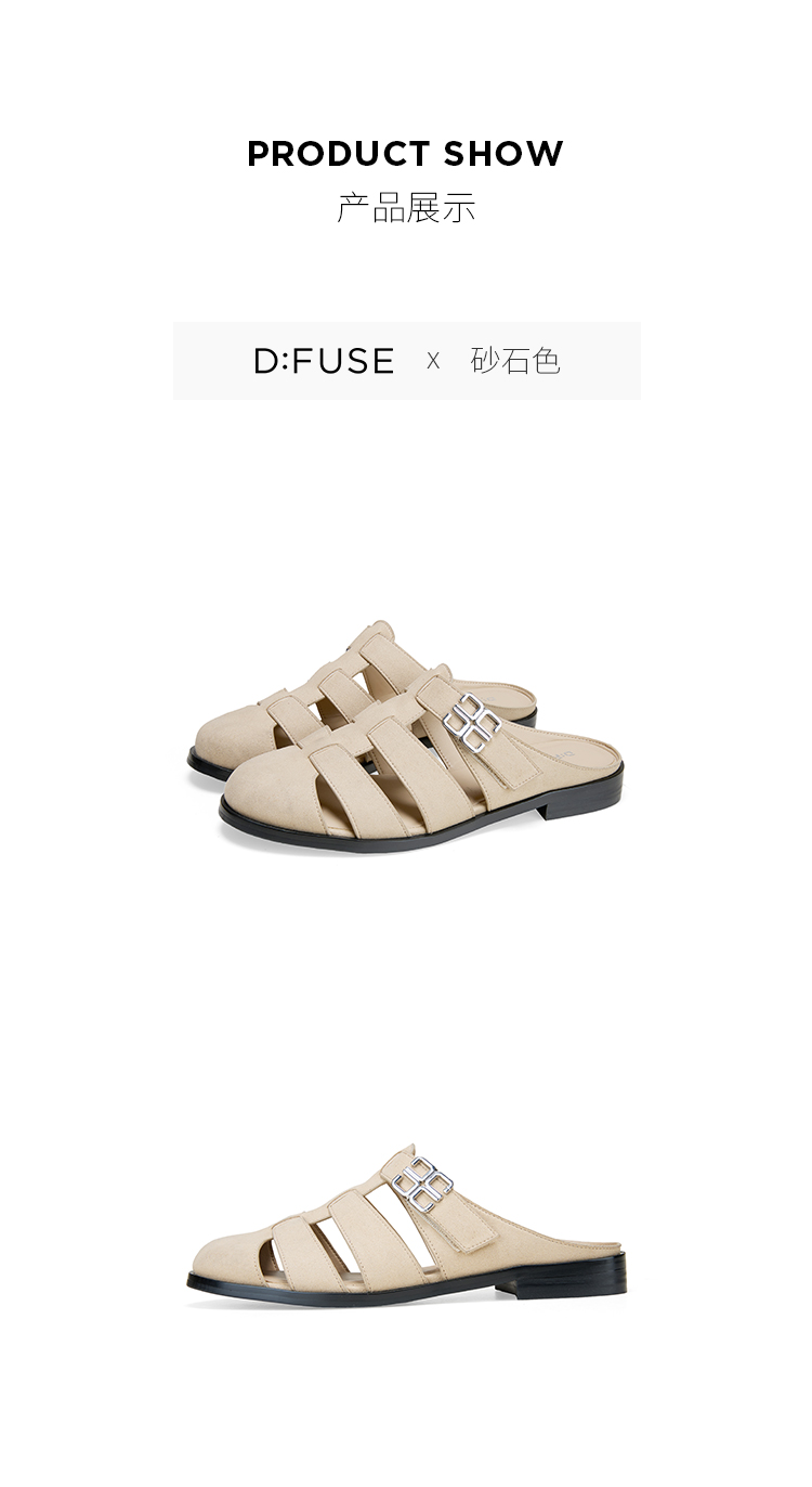 Dfuse迪芙斯2025夏季新款包头拖鞋条带镂空穆勒拖平底博肯凉拖DFD2110042