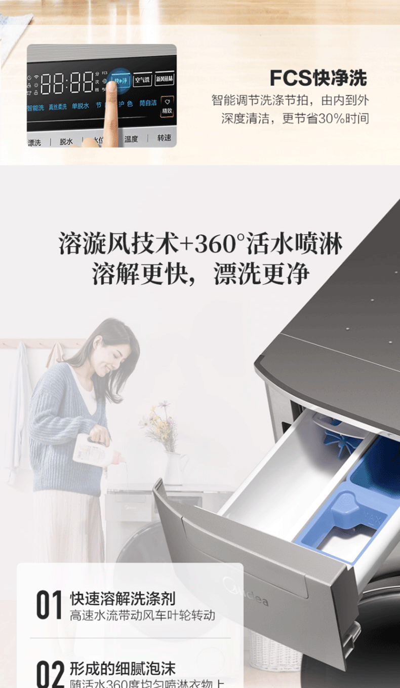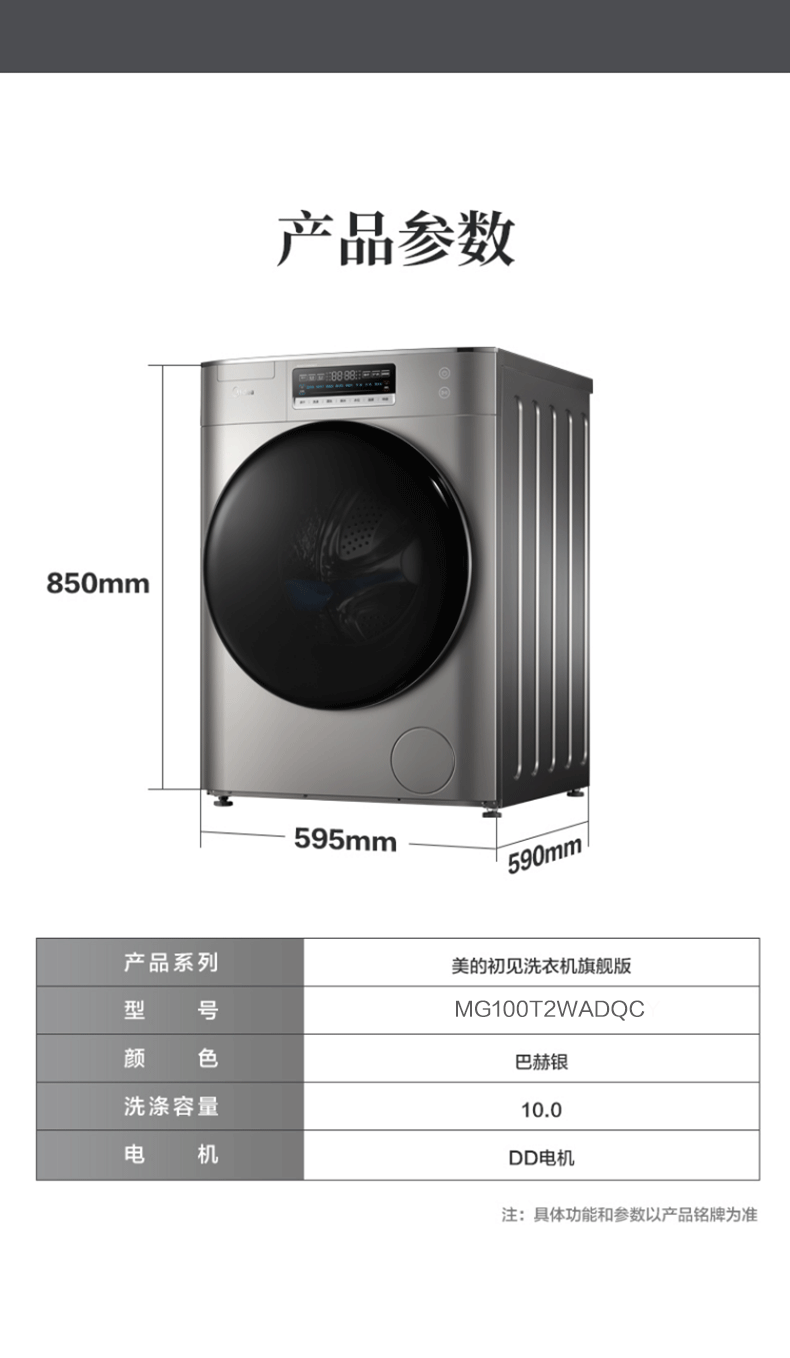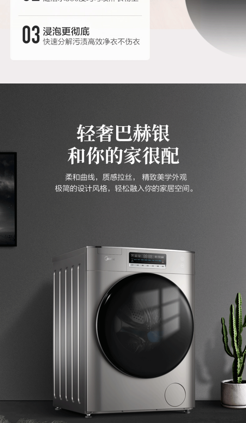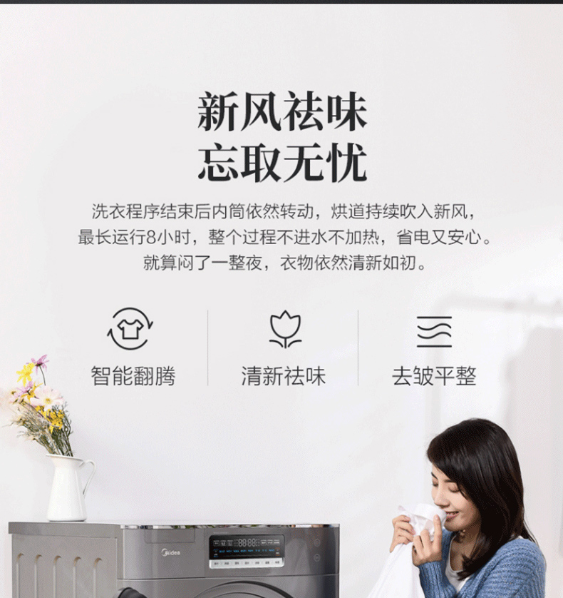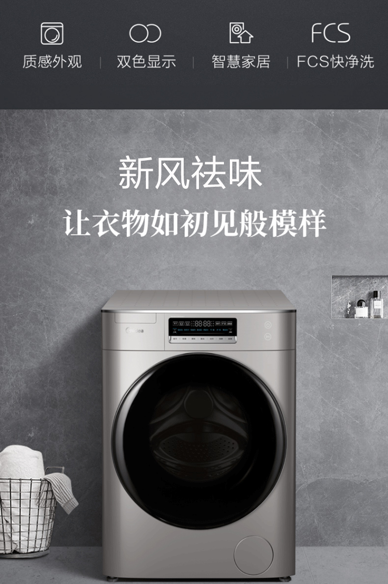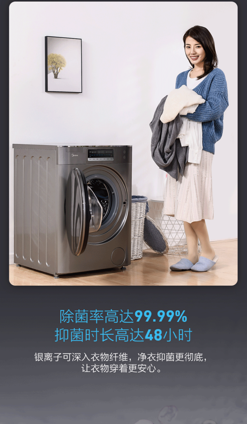 美的(Midea)(251717)滚筒洗衣机 10公斤全自动 变频 除菌 家用新风祛味智能控制 MG100T2WADQCY