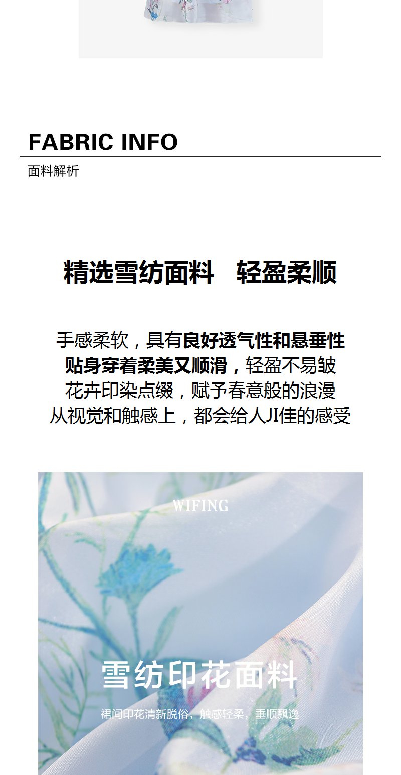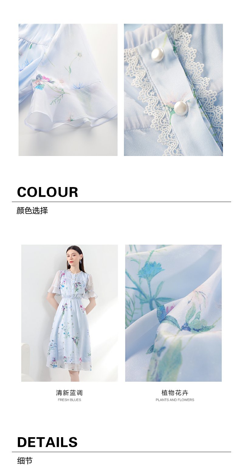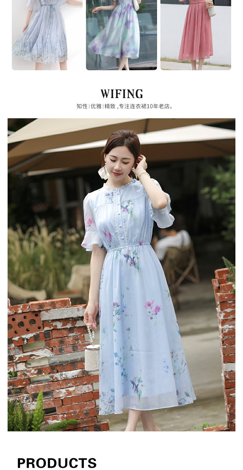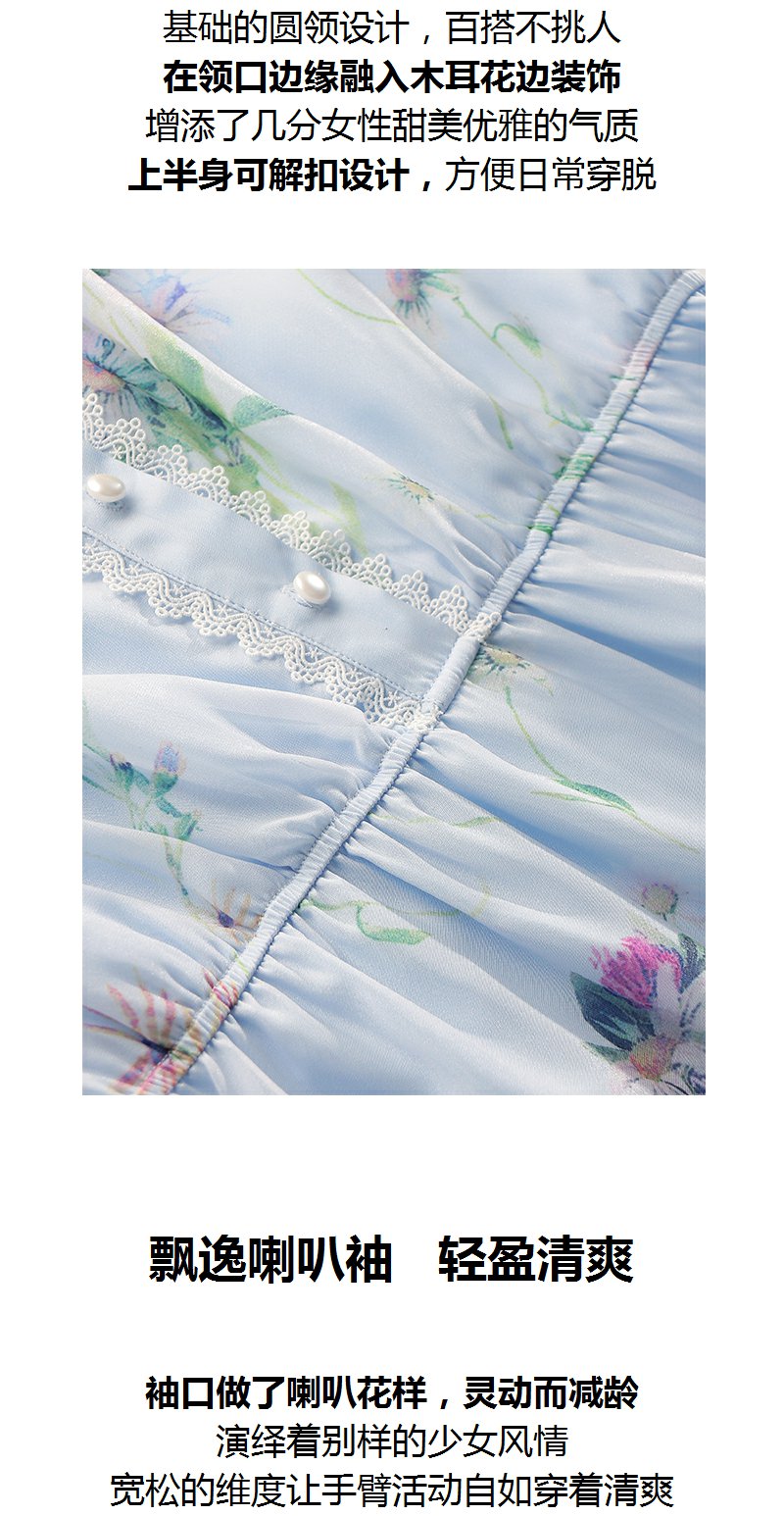 未风蓝色雪纺碎花连衣裙女夏2025年夏季新款女装气质法式收腰裙子