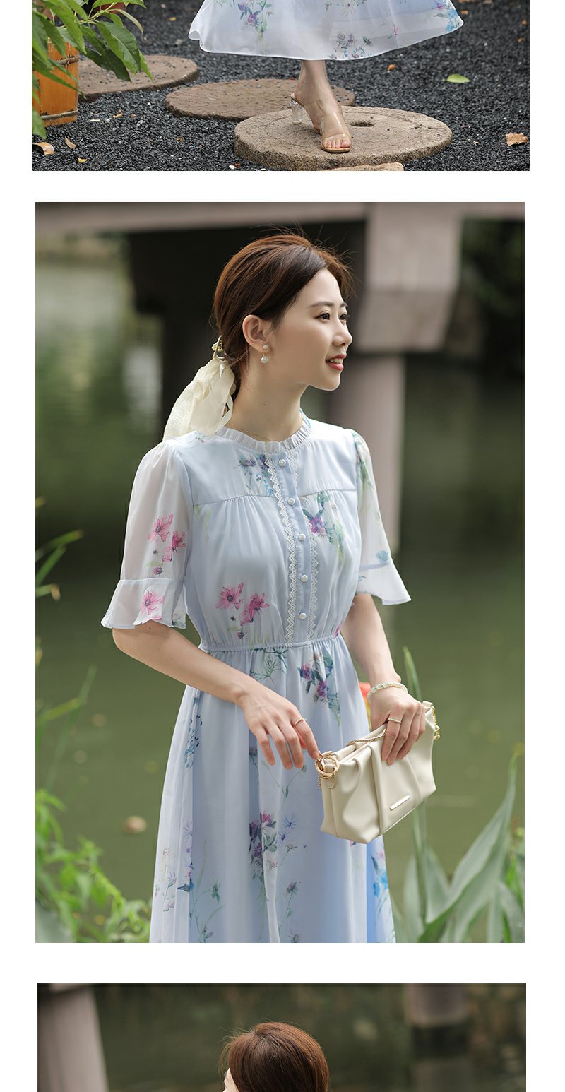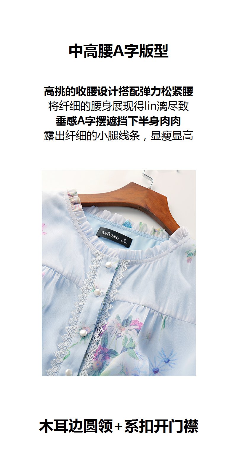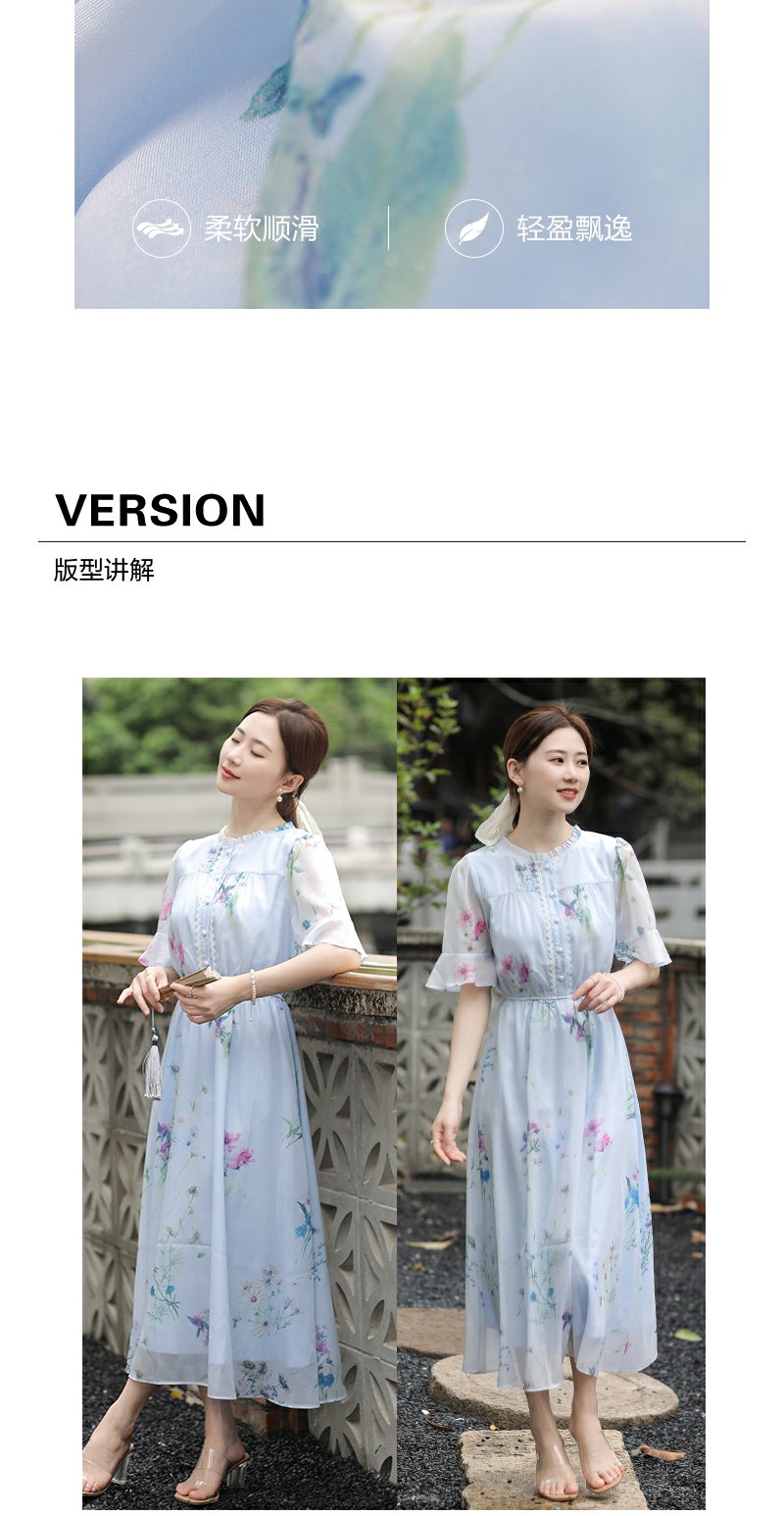 未风蓝色雪纺碎花连衣裙女夏2025年夏季新款女装气质法式收腰裙子
