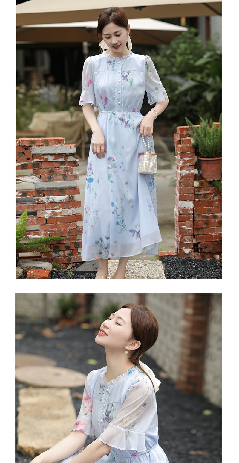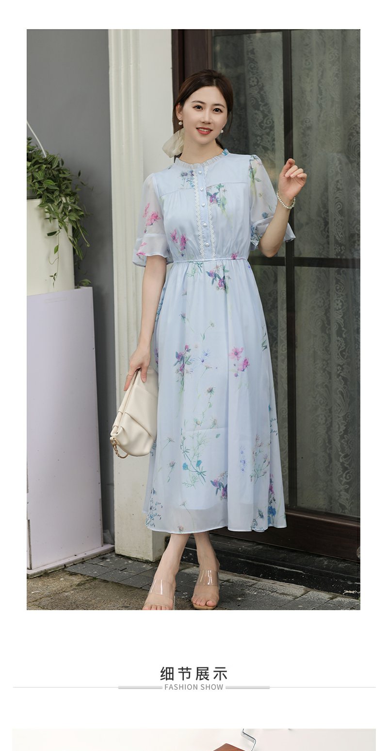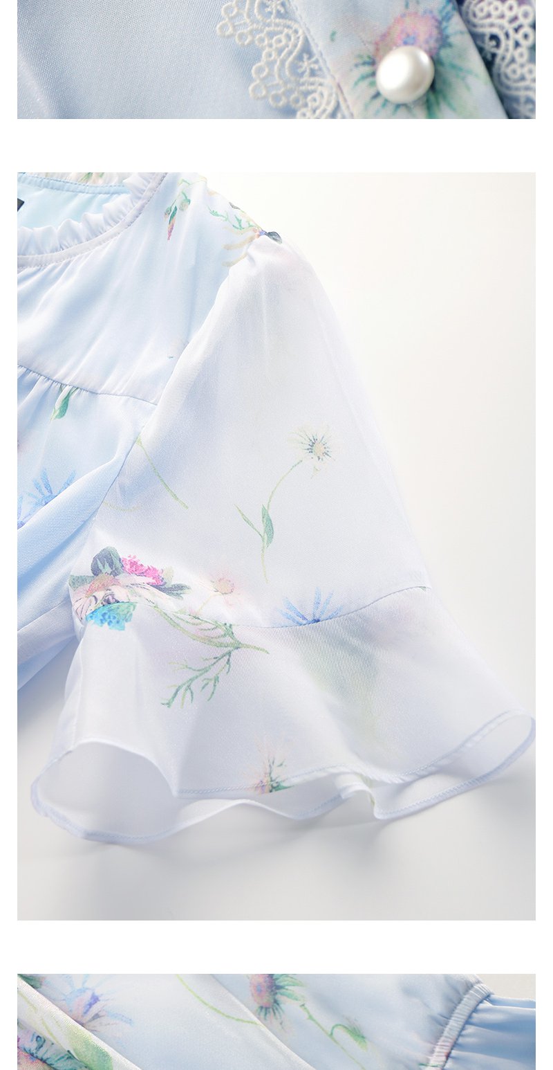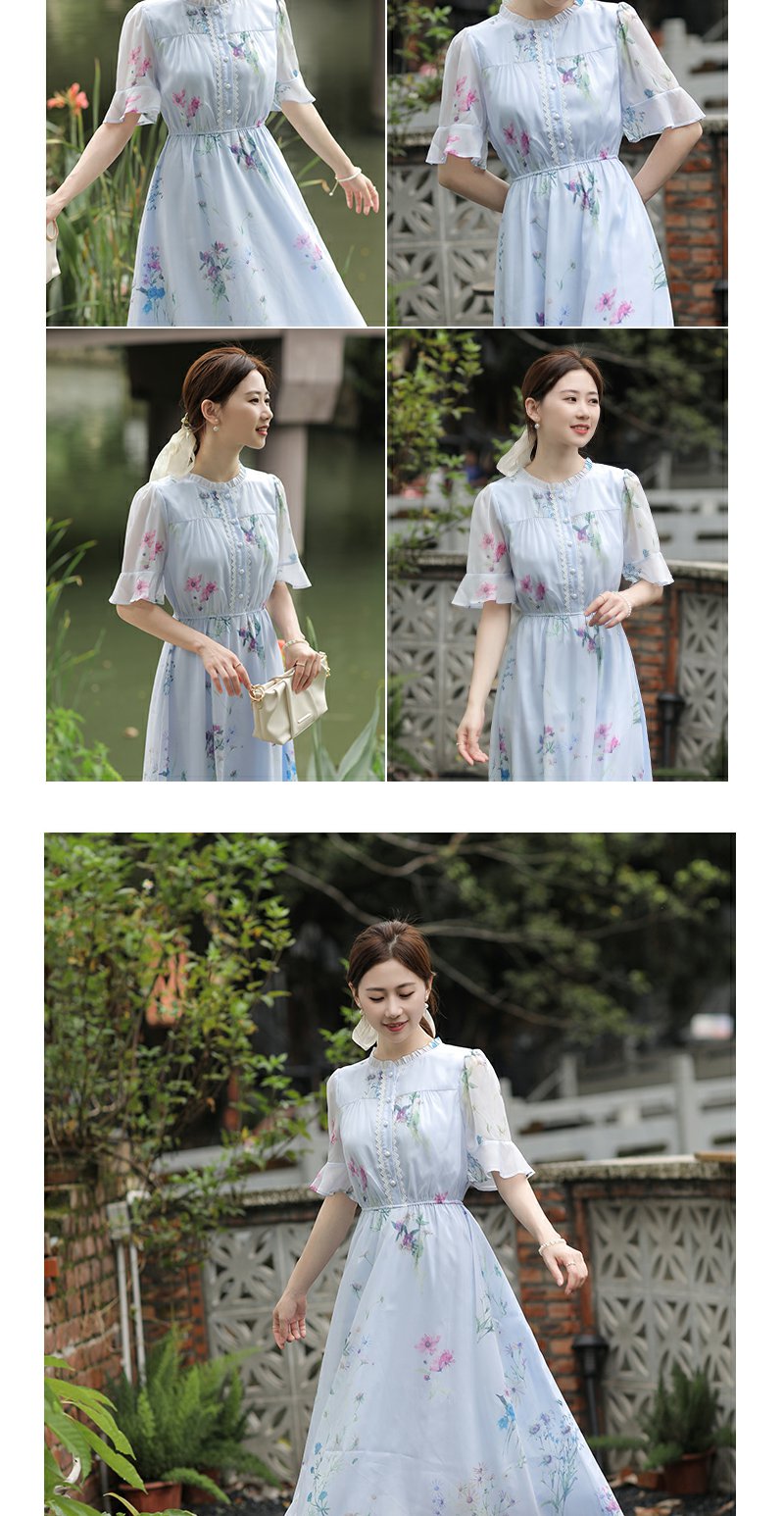 未风蓝色雪纺碎花连衣裙女夏2025年夏季新款女装气质法式收腰裙子