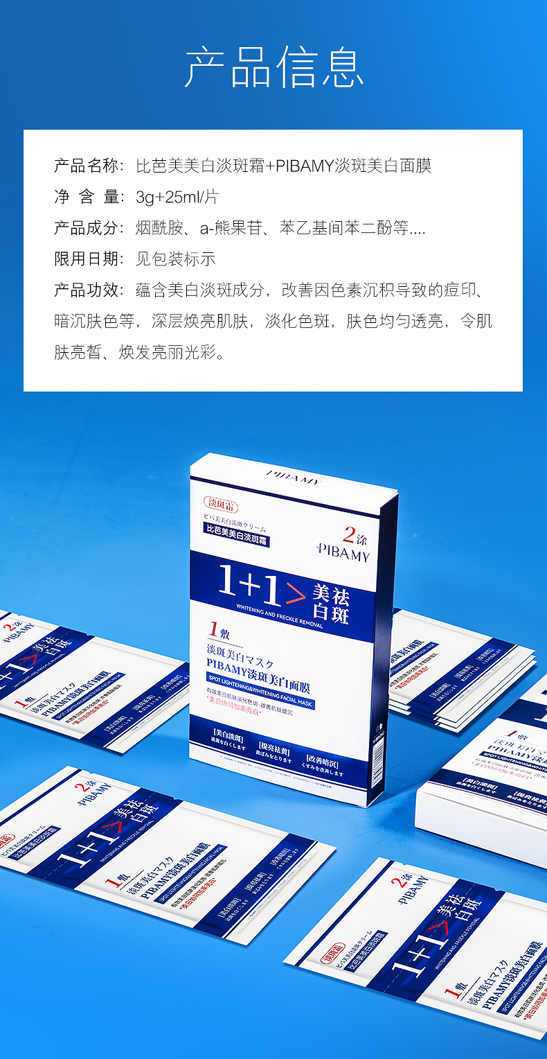 【买一送一】美白淡斑霜+淡斑美白面膜 1+1>美白祛斑 两用组合 3g+25ml/片 *5对/盒