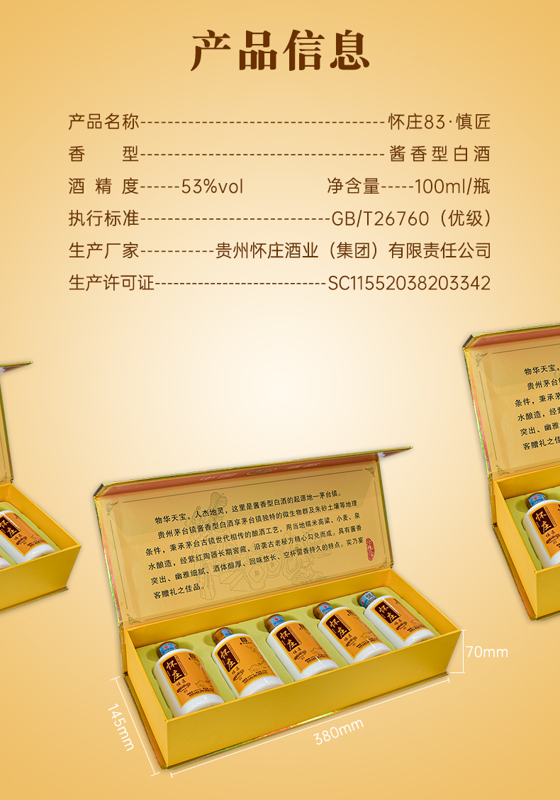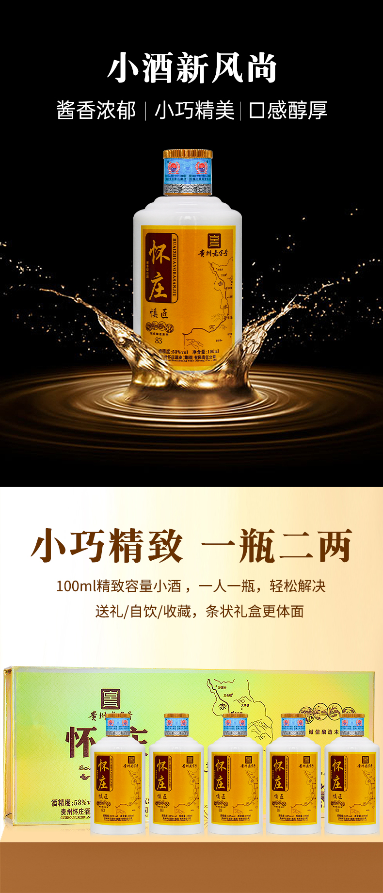 怀庄小酒53度酱香型白酒送礼收藏礼盒装 100ML*5礼盒装