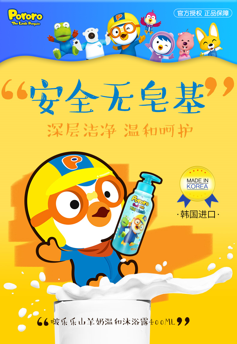 XDR 韩国Pororo啵乐乐山羊奶沐浴露400ml