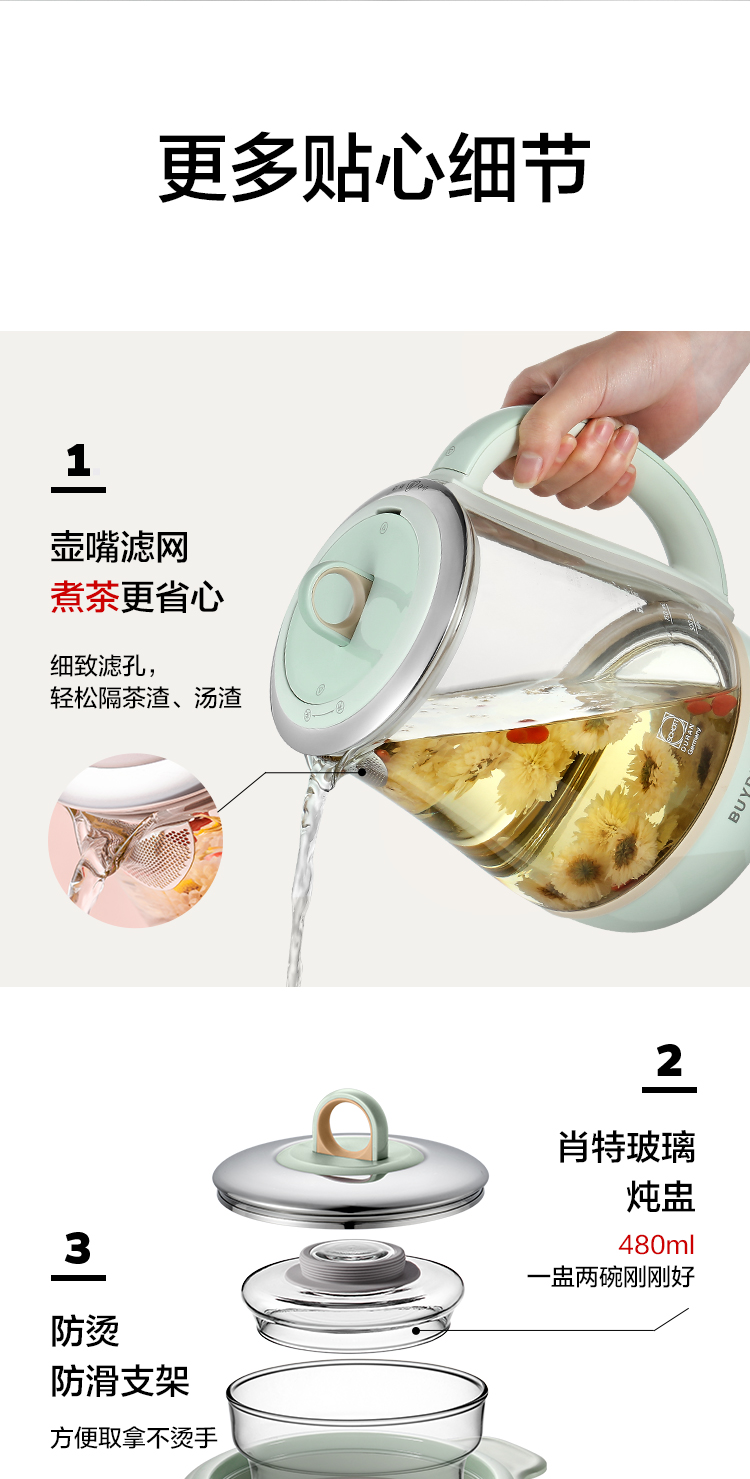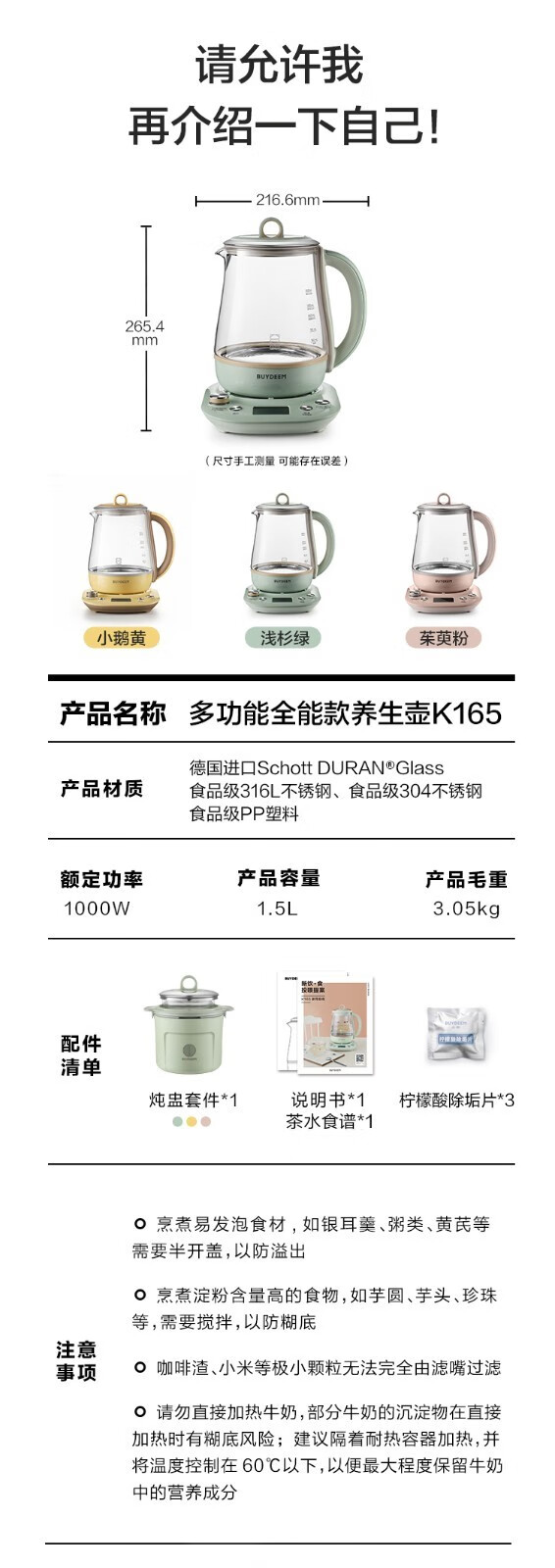【北鼎】高级轻奢养生壶K165 多功能家用全能煮茶壶1500ml 办公室养生煮茶器 预约调时 蒸炖煮全能款