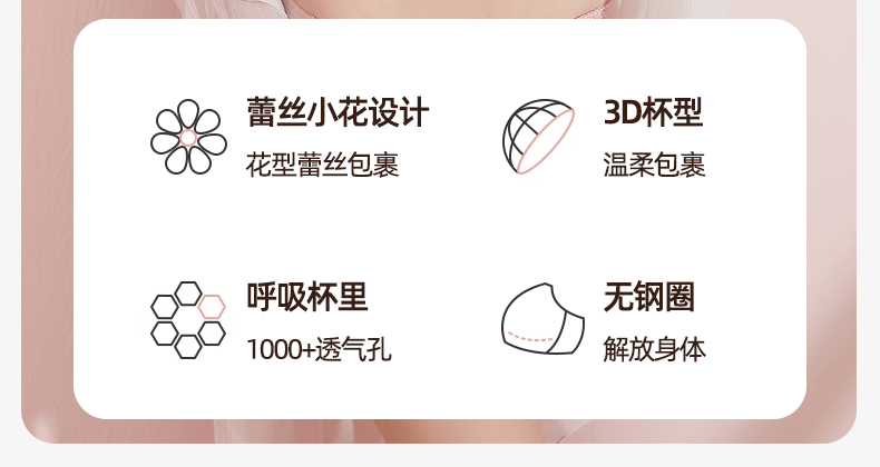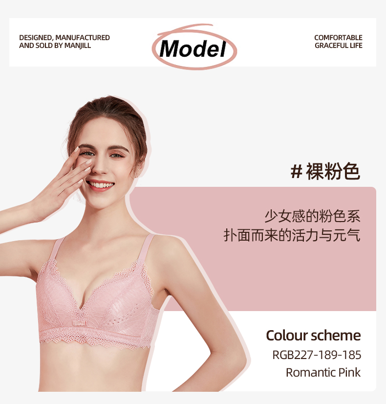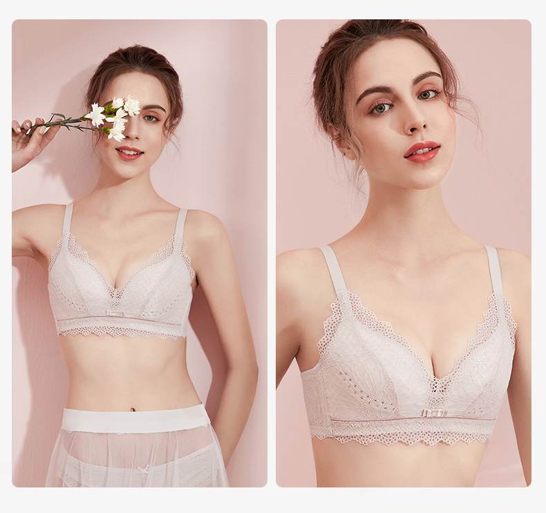 熳洁儿 内衣女蕾丝聚拢透气文胸轻薄透气洞洞杯无钢圈收副乳薄款ABC杯21261501