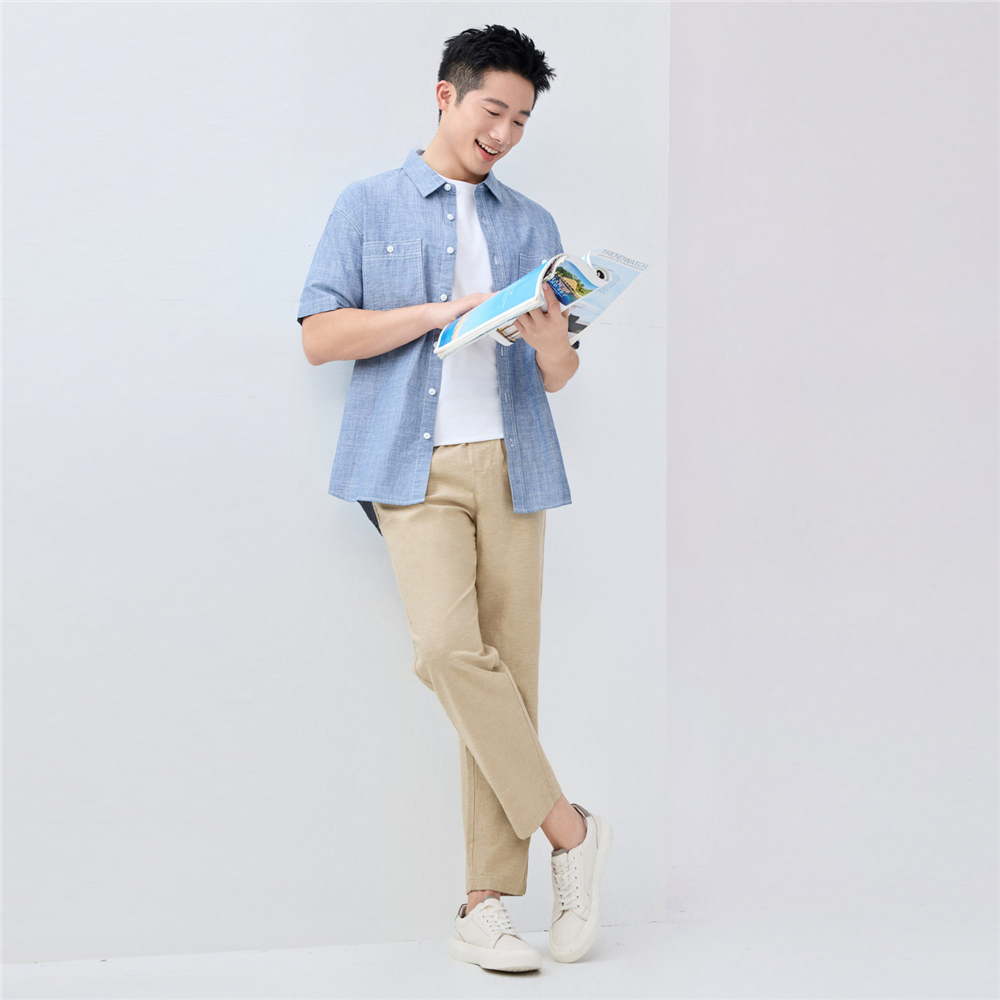 佐丹奴男装天然棉麻松紧腰梭织薄休闲裤01115205