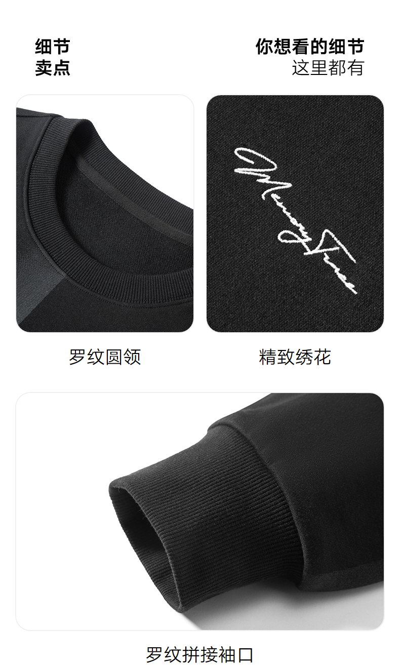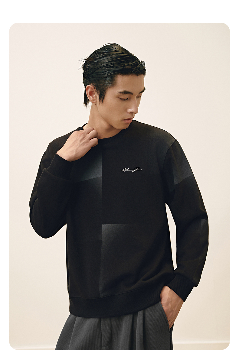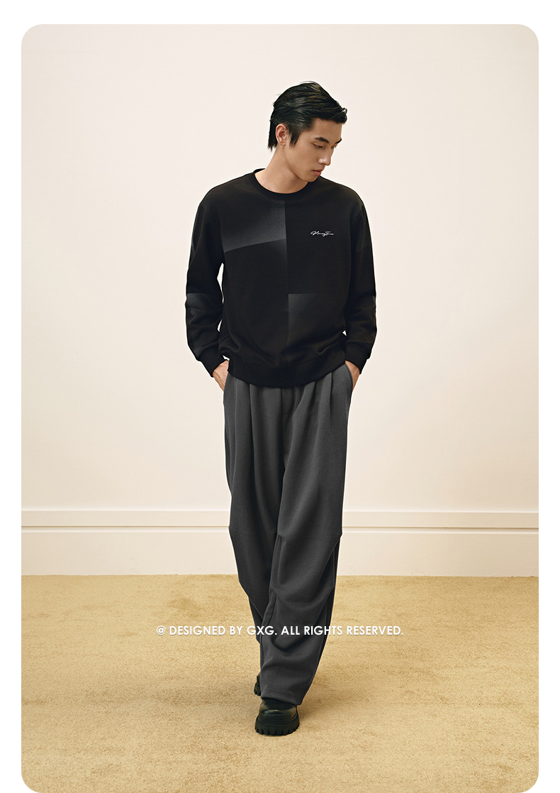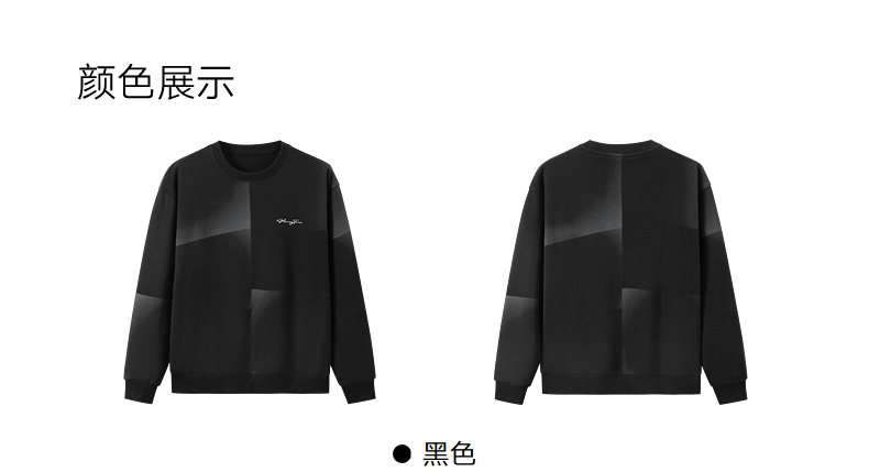 GXG男装黑色后背图案休闲通勤卫衣24冬热卖G24X314037