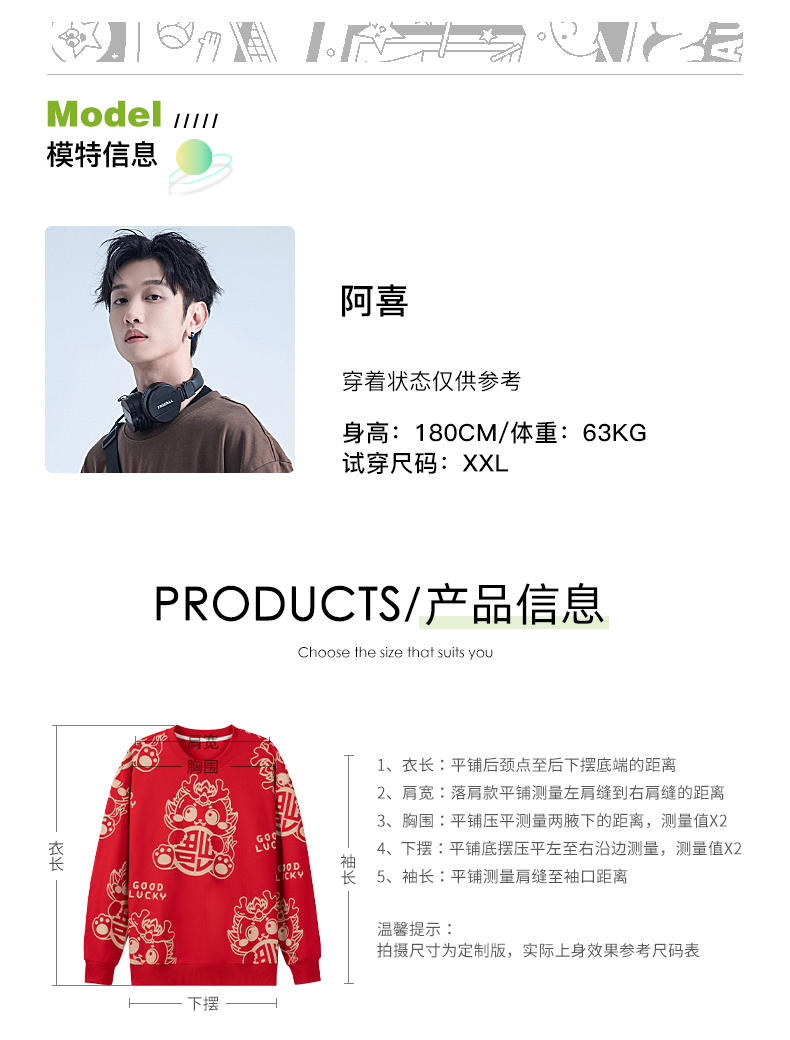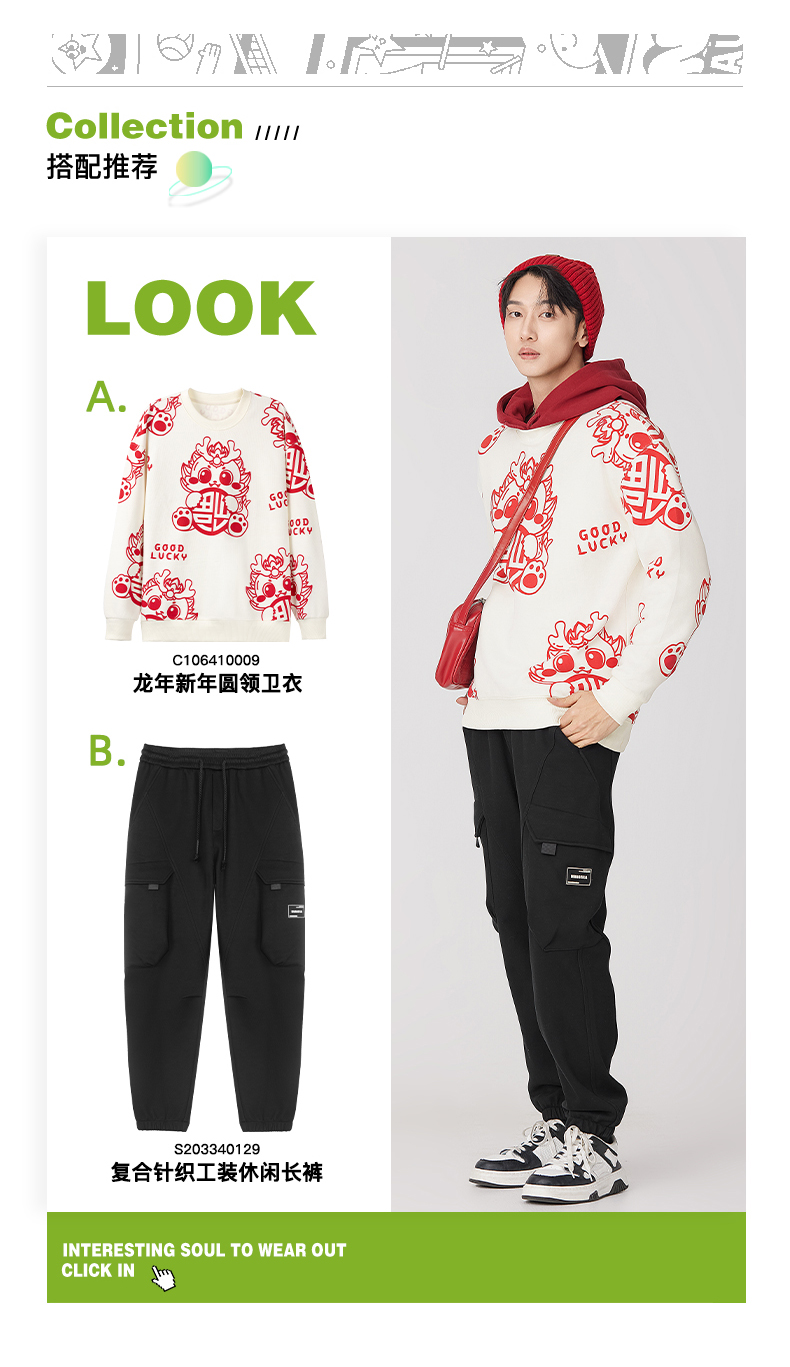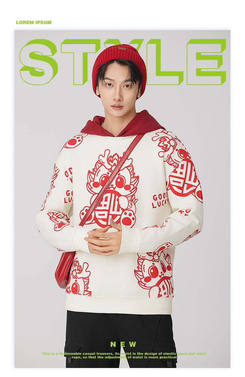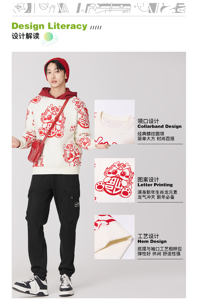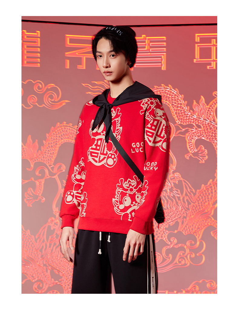【断码清仓】HX 秋冬季圆领卫衣趣味生肖龙元素时尚潮流新年必备/C106410009101/02
