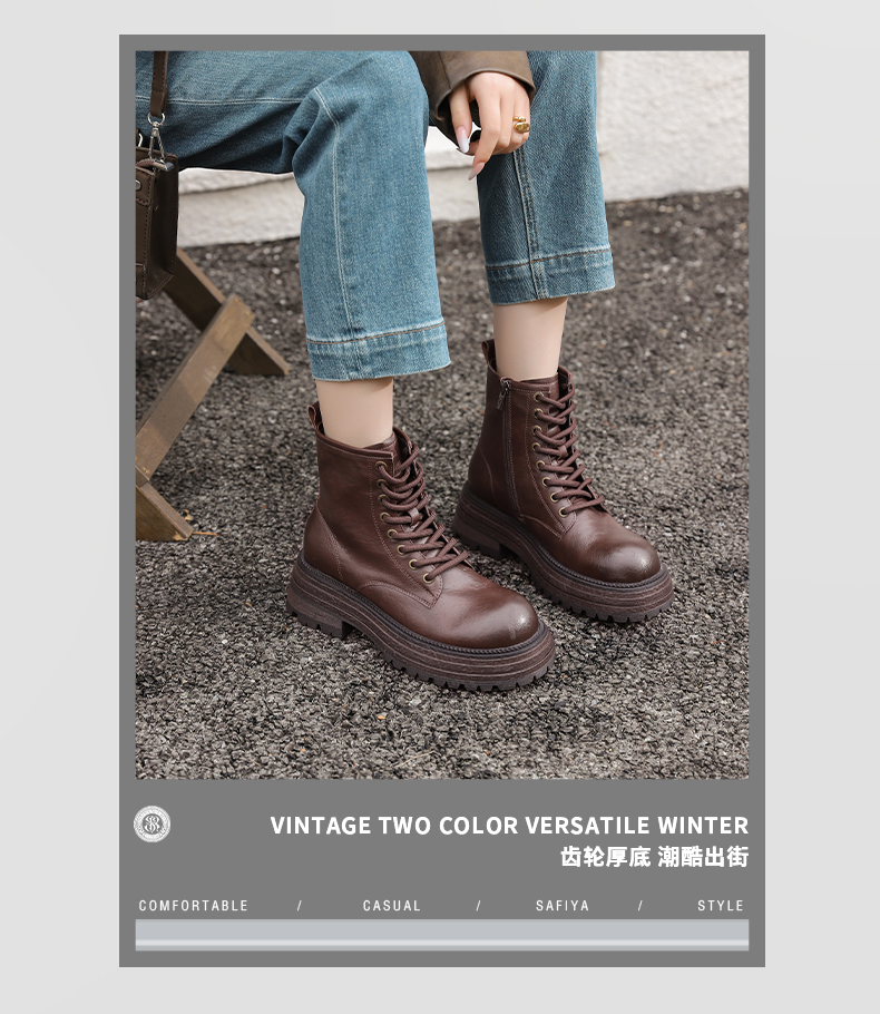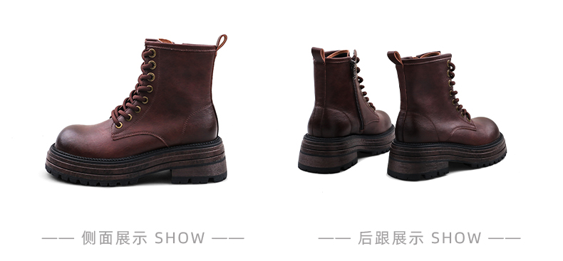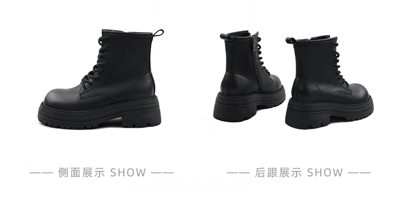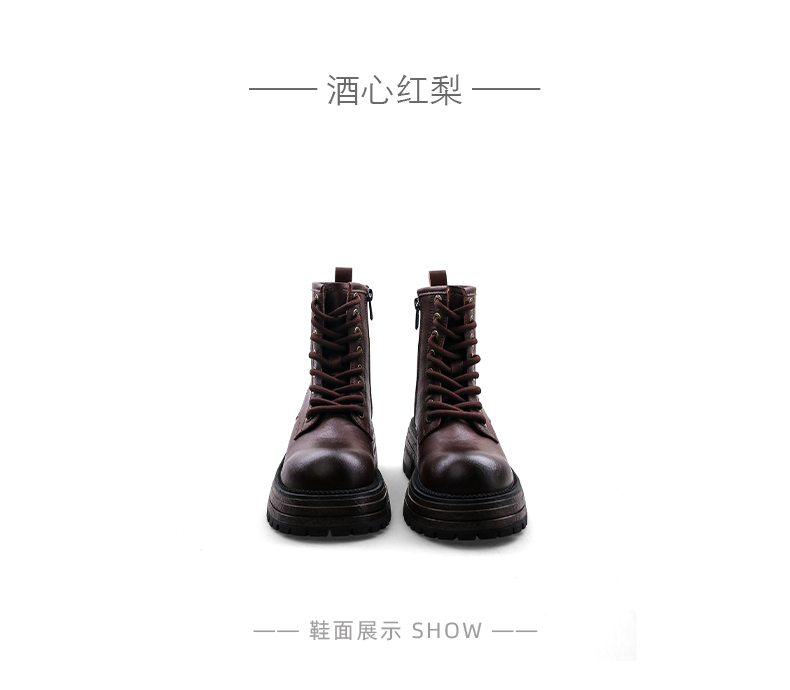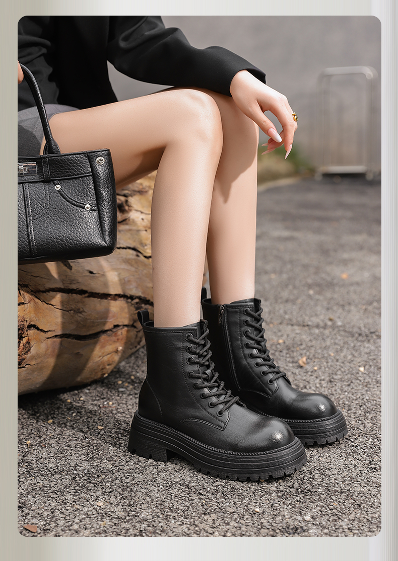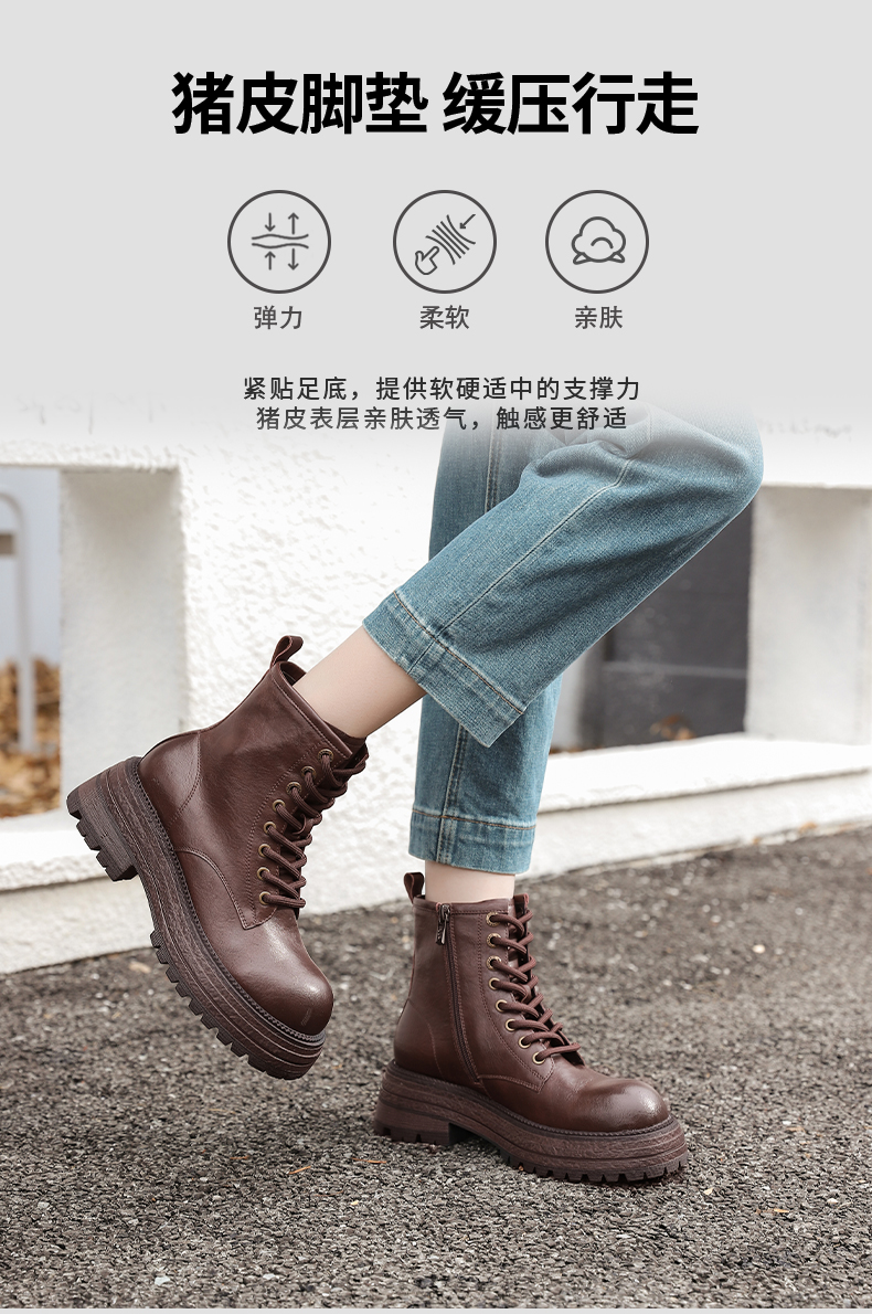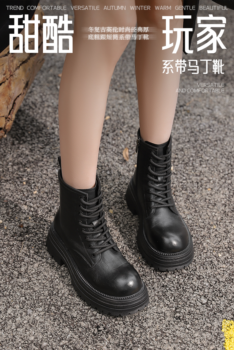 预售10天发|Safiya/索菲娅2024复古英伦时尚经典厚底粗跟短筒系带马丁靴加绒 SF44116411