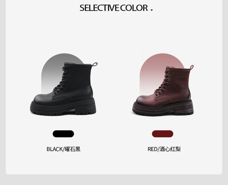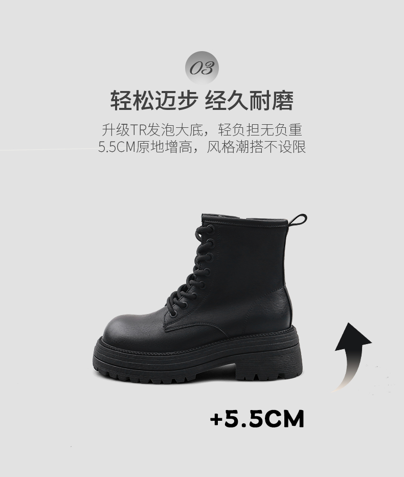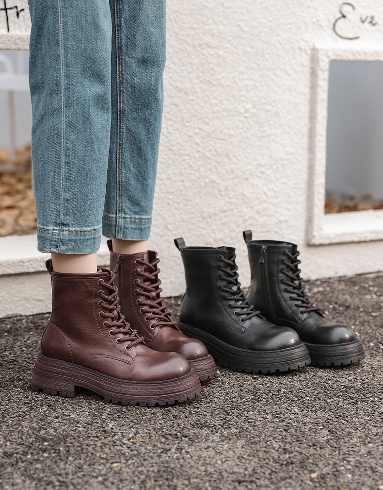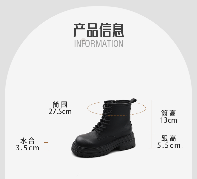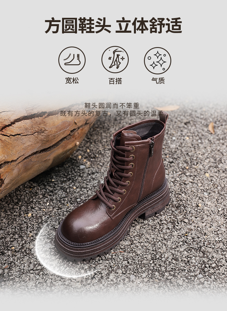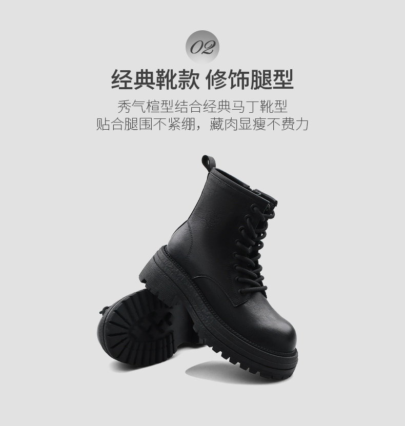 预售10天发|Safiya/索菲娅2024复古英伦时尚经典厚底粗跟短筒系带马丁靴加绒 SF44116411