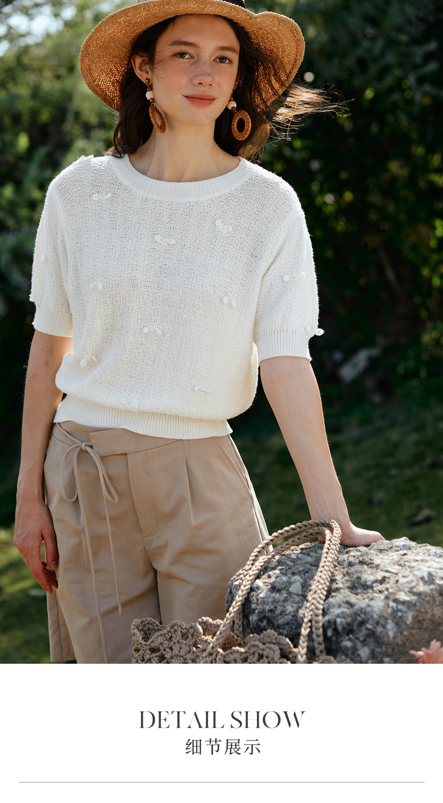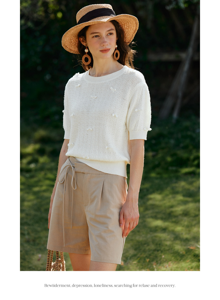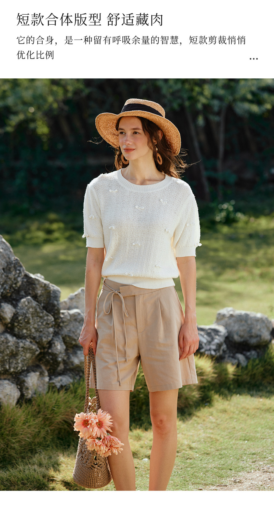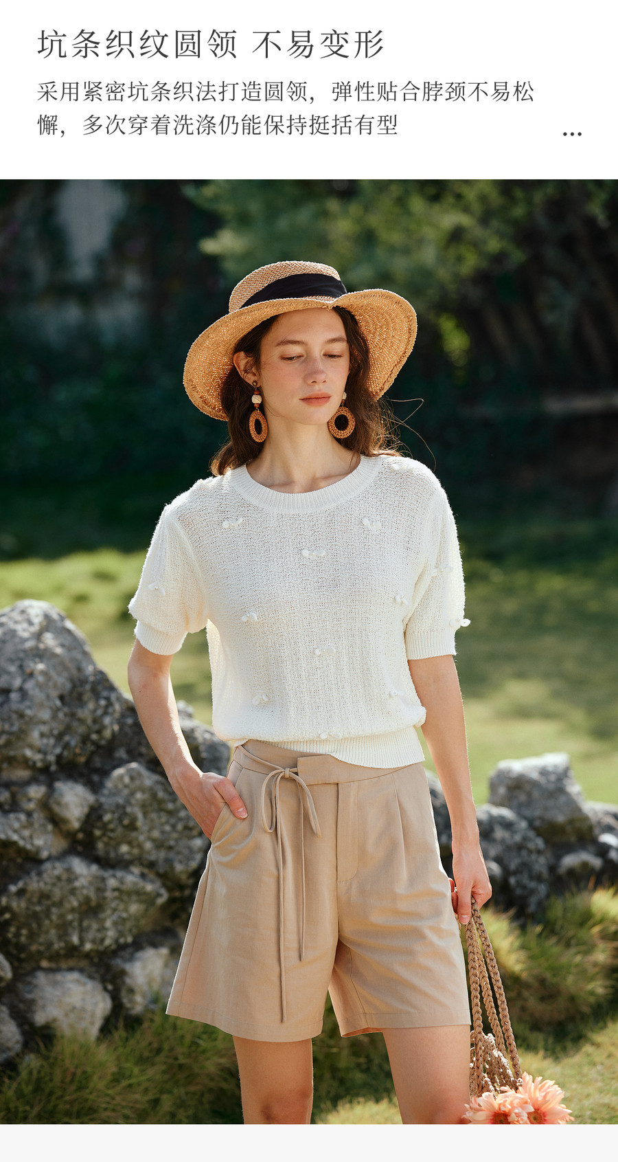 OLrain欧芮儿2026新款女夏季法式清雅减龄蝴蝶结圆领短袖针织衫