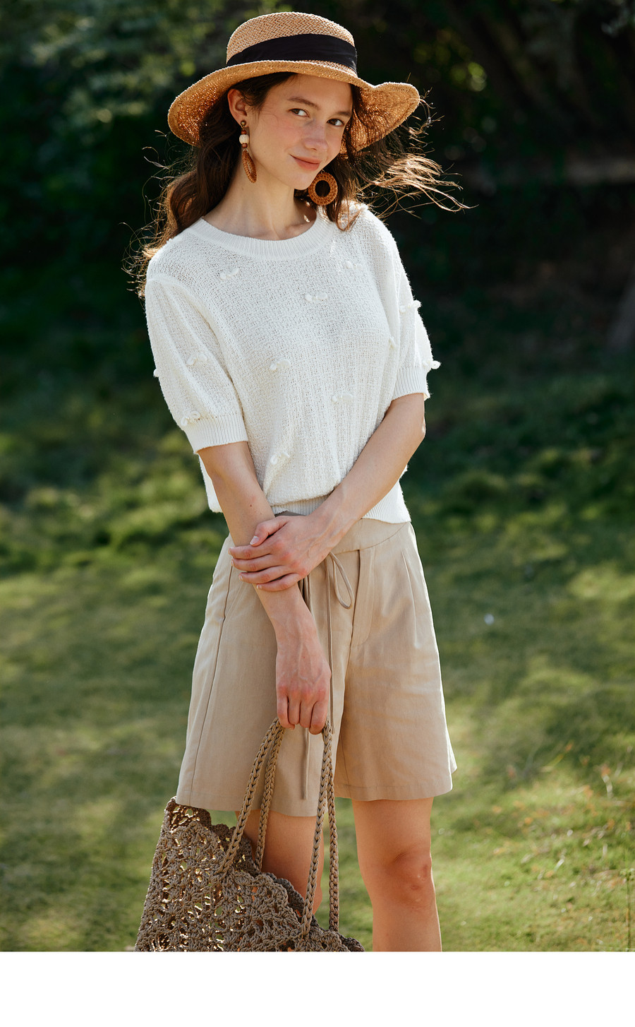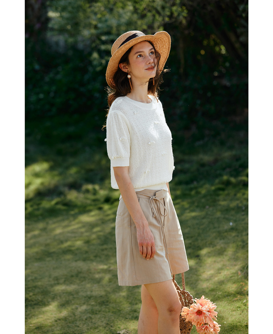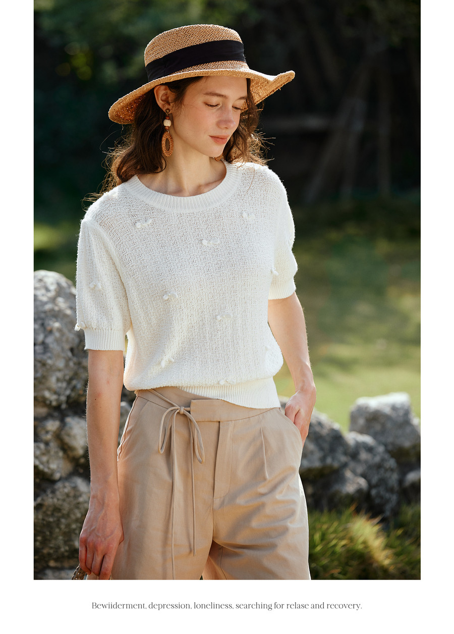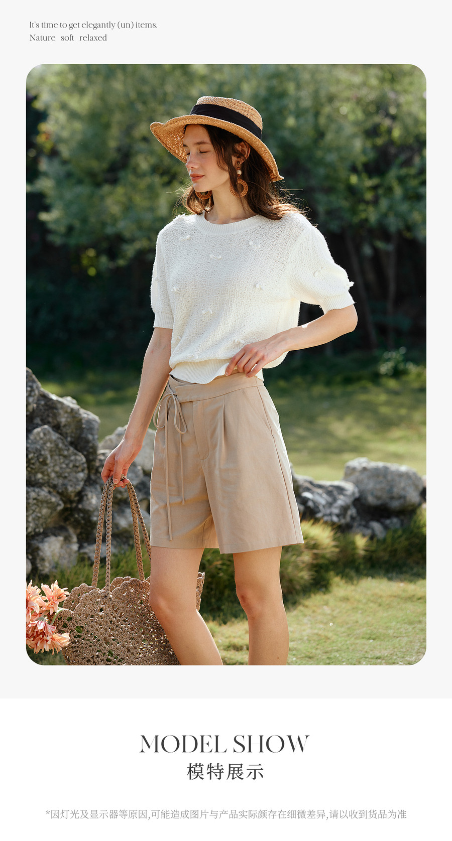 OLrain欧芮儿2026新款女夏季法式清雅减龄蝴蝶结圆领短袖针织衫