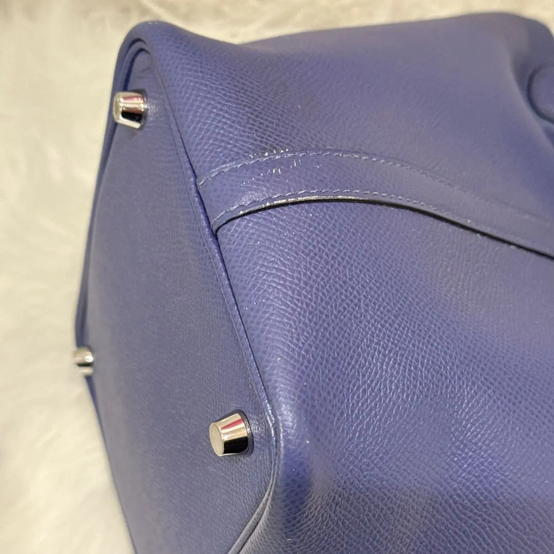 【商品详情】正品二手 爱马仕 菜篮子18 宝石蓝 银扣 手提包🍞95新 18*18 C刻 配件:钥匙 锁 说明书。边角轻微磨损。高级的颜色