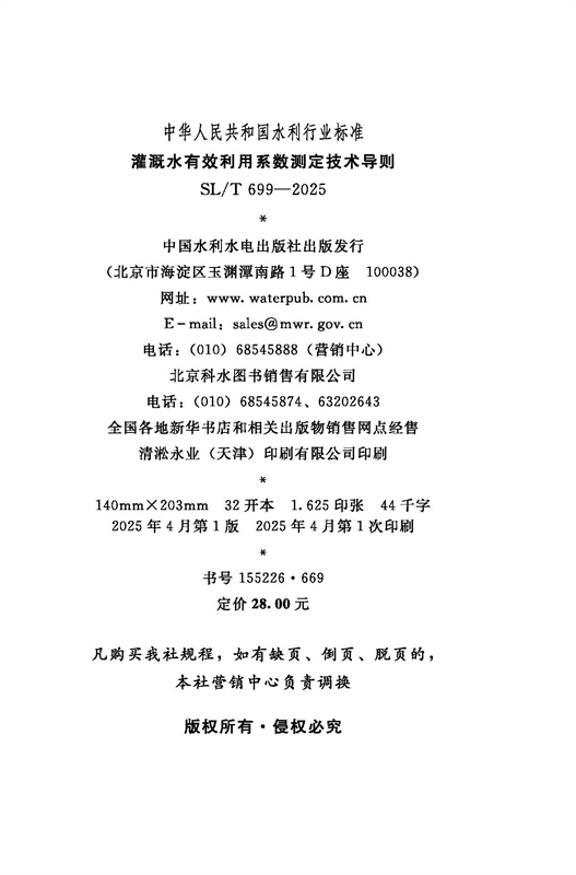SL/T699-2025灌溉水有效利用系数测定技术导则(中华人民共和国水利行业标准)