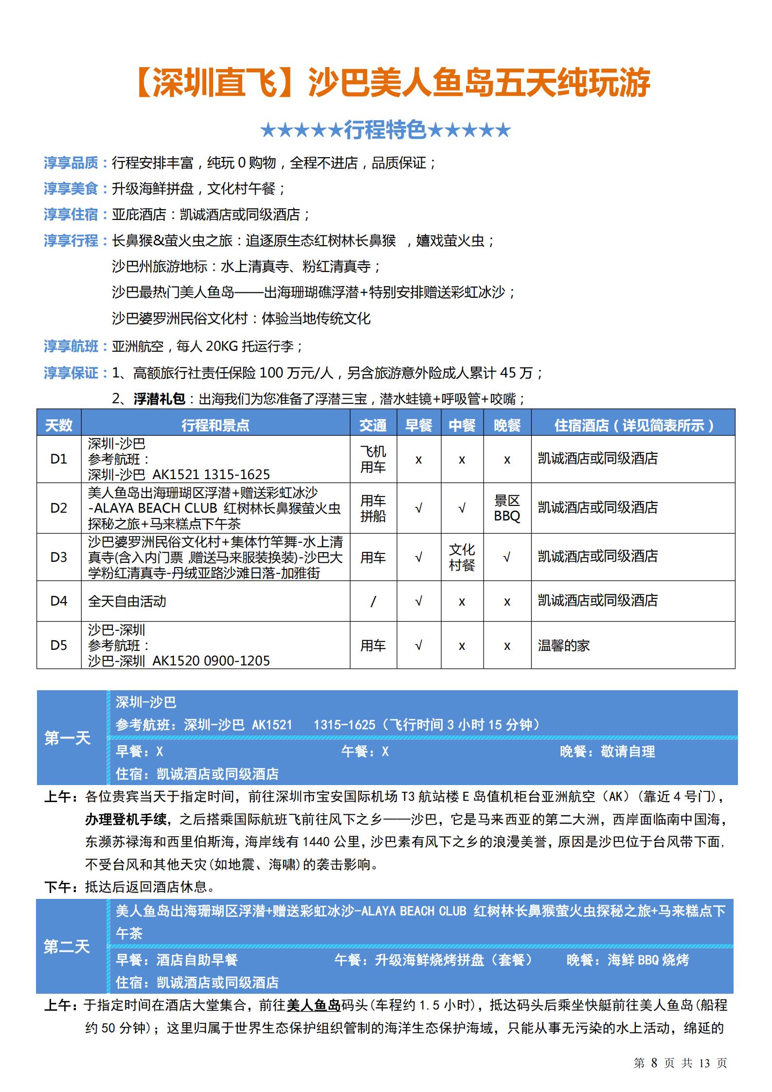 【五一】<马来西亚沙巴5天纯玩团>美人鱼岛出海珊瑚区浮潜、红树林长鼻猴萤火虫探秘之旅、沙巴婆罗洲民俗文化村+集体竹竿舞、水上清真寺(含入内门票,赠送马来服装换装)、沙巴大学粉红清真寺、丹绒亚路沙滩日落