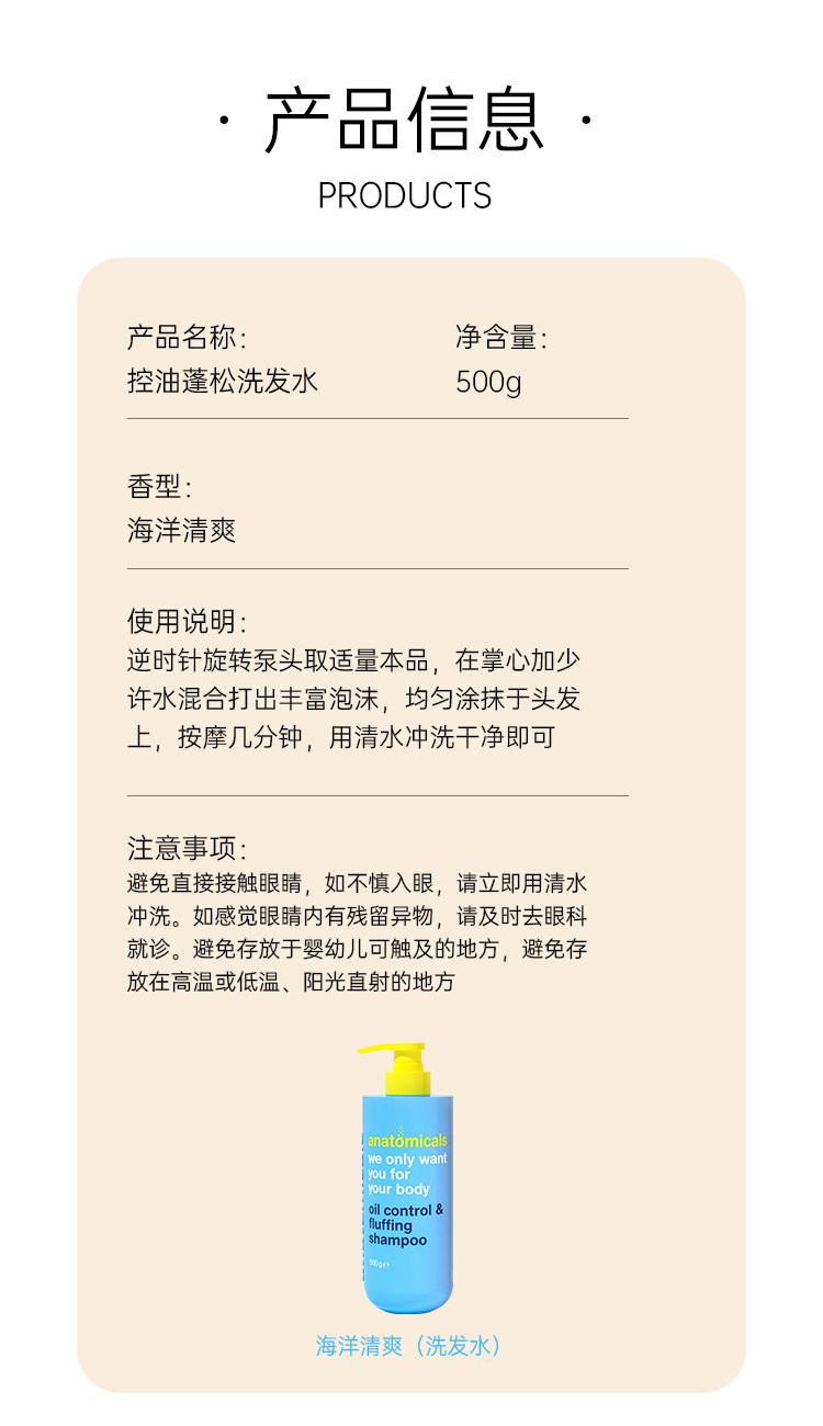 安娜魅纳 控油蓬松洗发水300g(海洋清爽/全澄热恋)