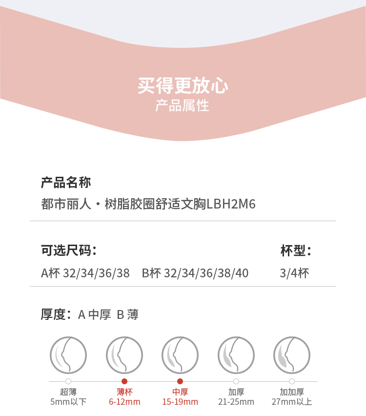 都市丽人自然舒适内衣A:中厚B:薄蕾丝树脂胶圈常规文胸LBH2M6