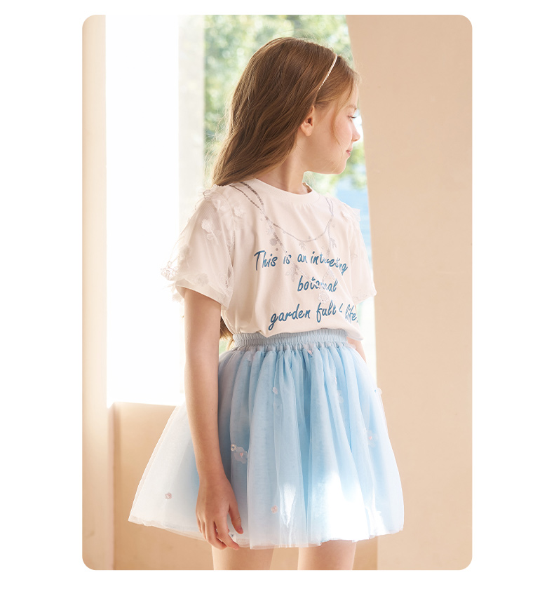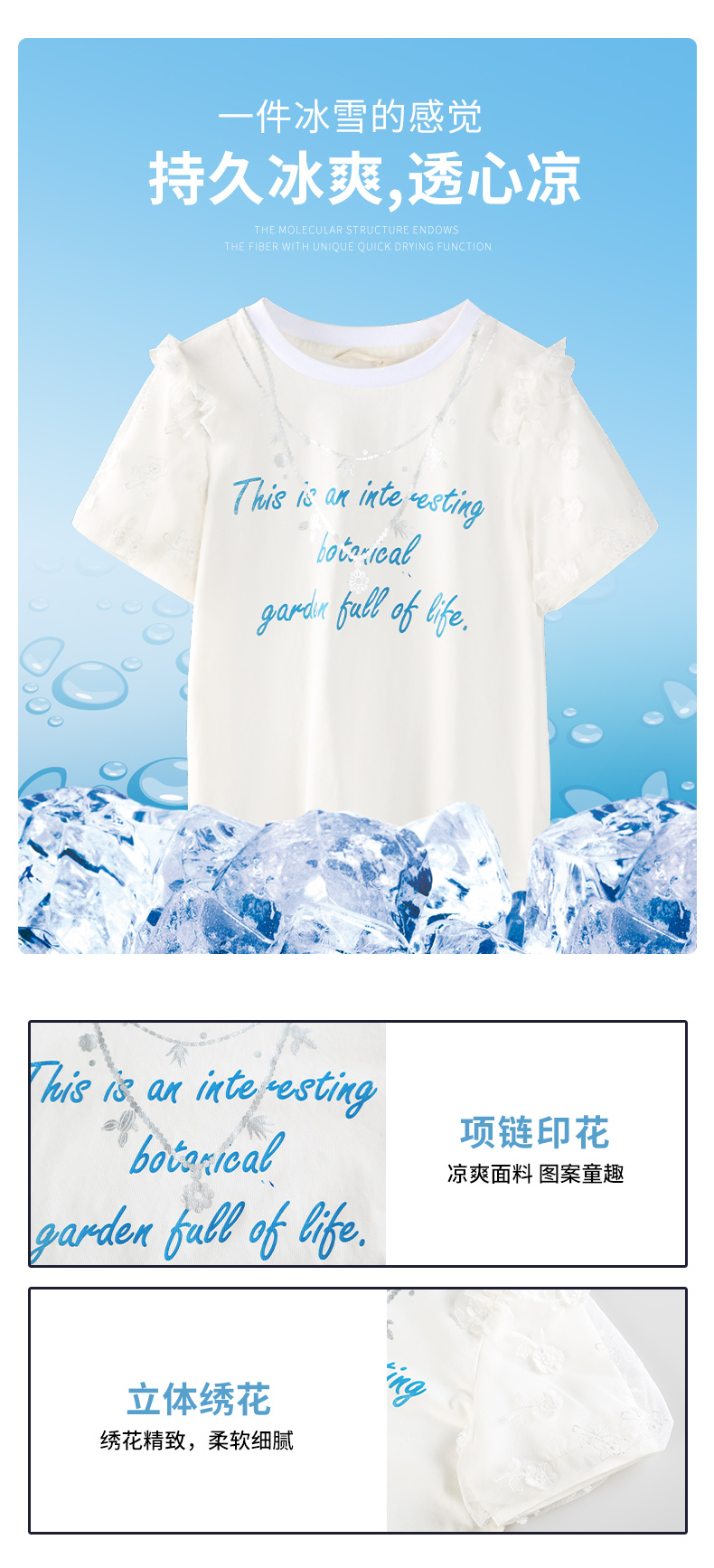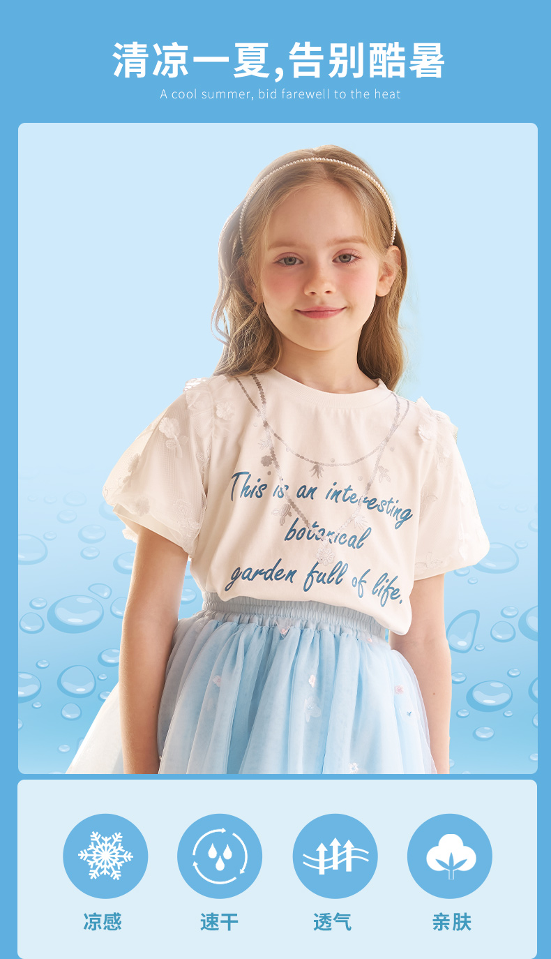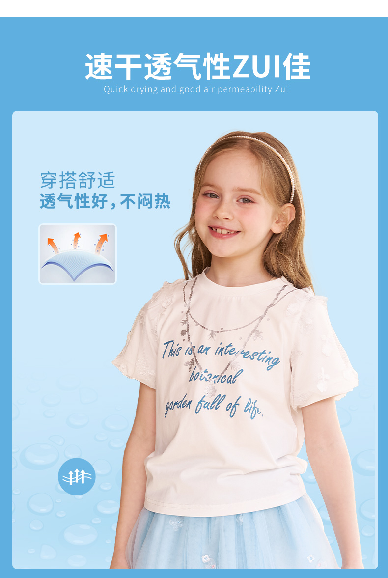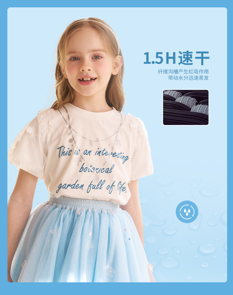 mettekids女童短袖t恤夏季儿童洋气凉感童装中大童透气速干上衣