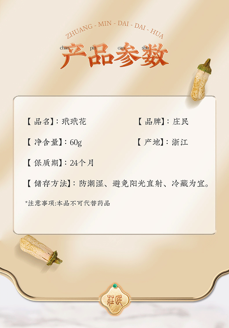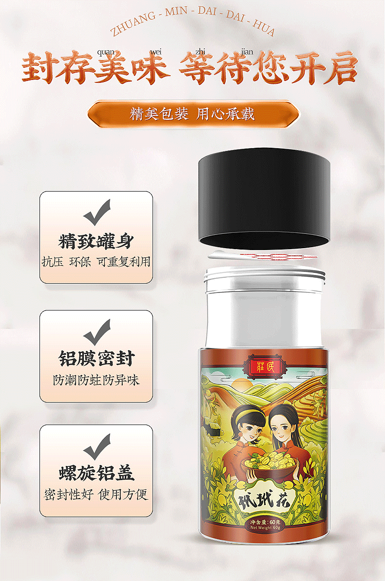 庄民 玳玳花茶 代代花 回青橙 茶叶花草茶泡水 正宗精选好货60g/罐